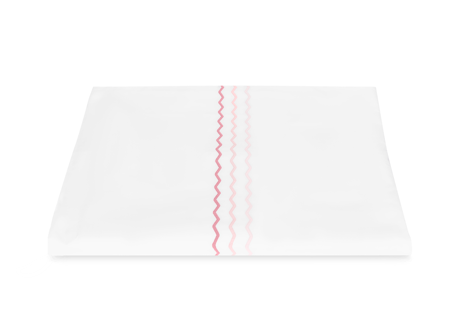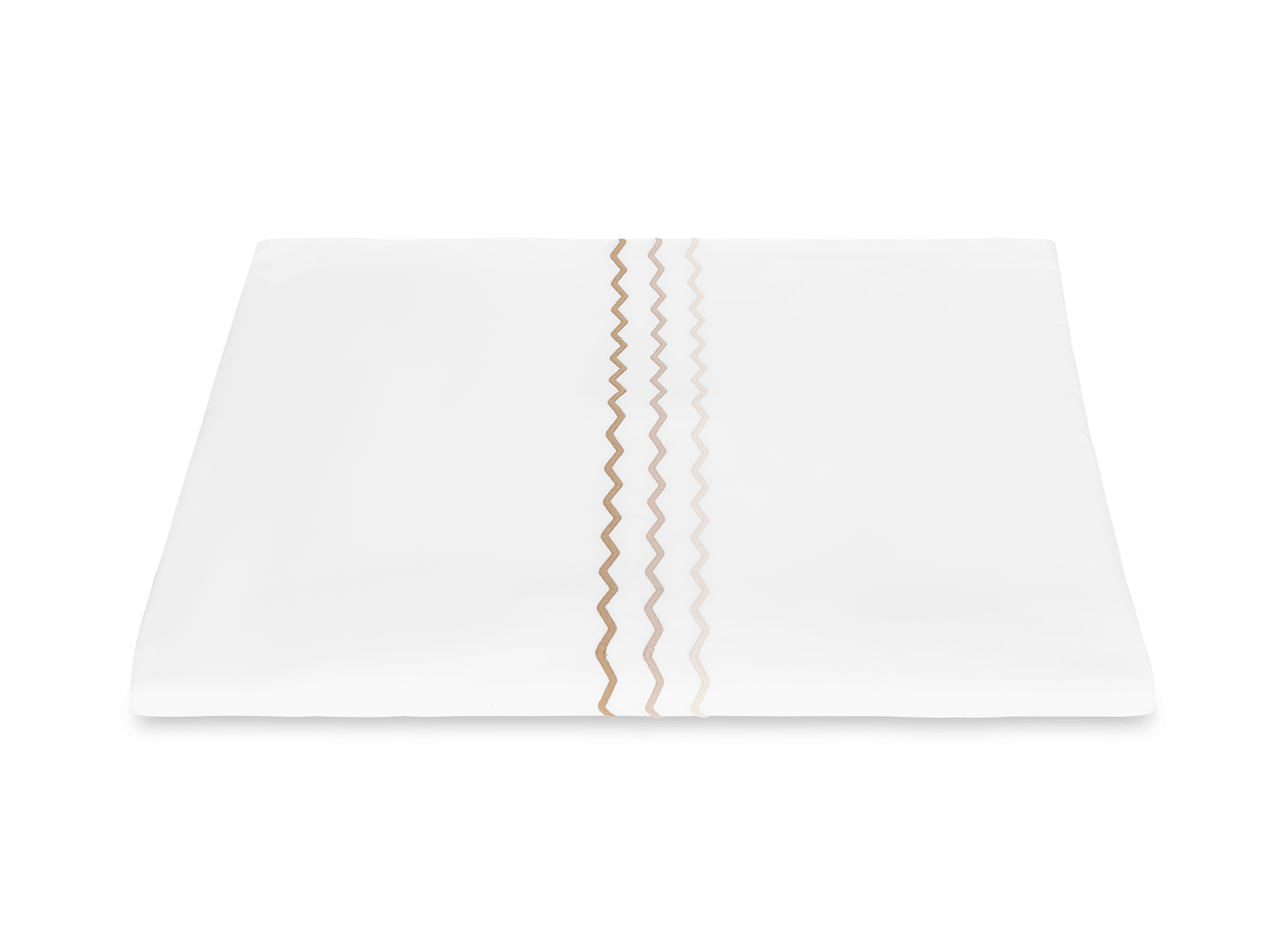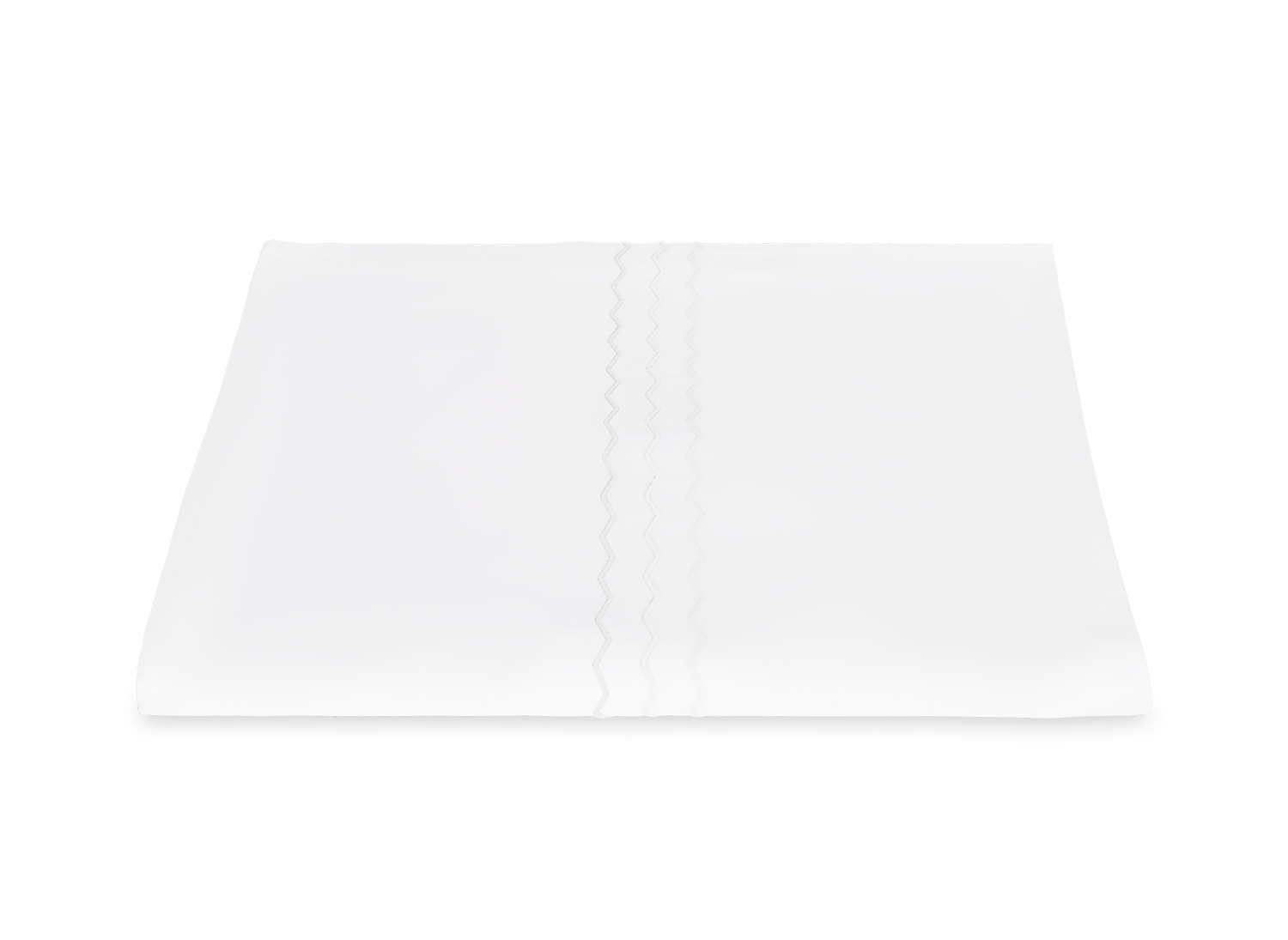- Duvet covers have three rows of embroidery in a "U" shape on top of bed, 2" flange, inside corner ties, and zipper closure
