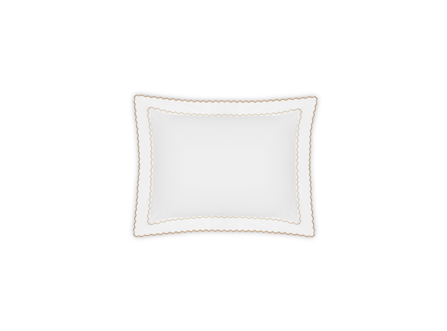 • Shams have two rows of embroidery in the darkest threads, trimmed along the edge on 2" flanges, with envelope closure