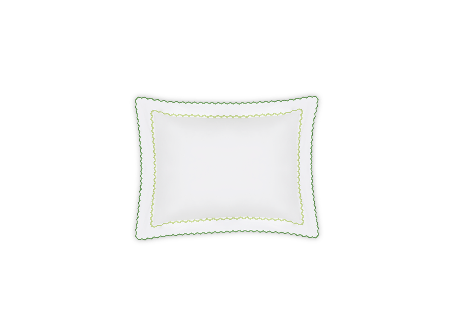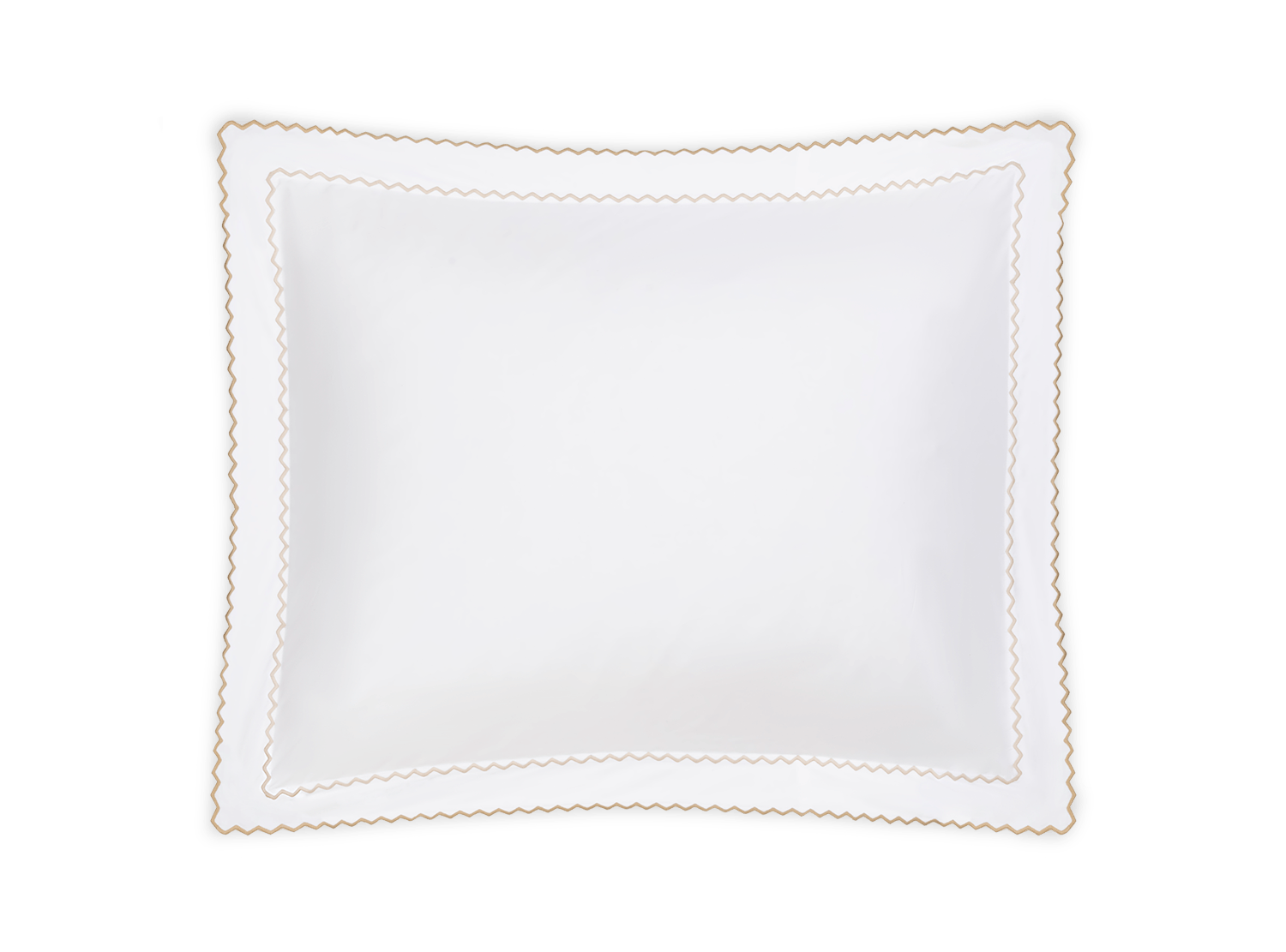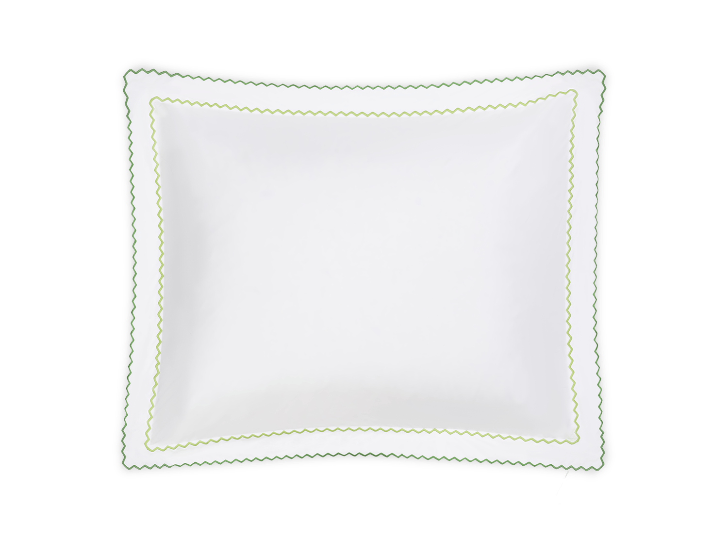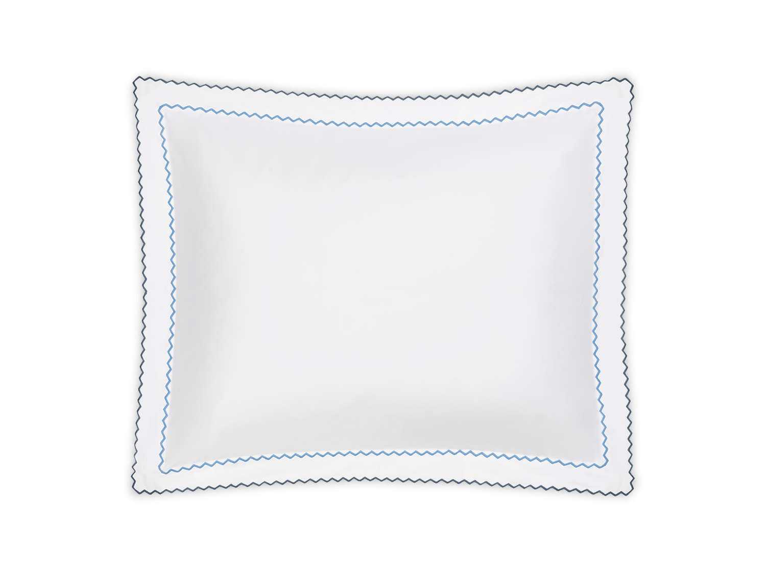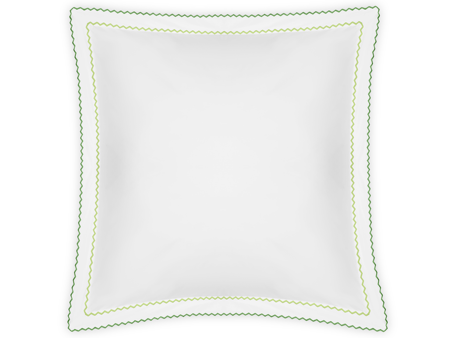 Axel’s playful zigzag embroidery brings spirited energy to the modern bed