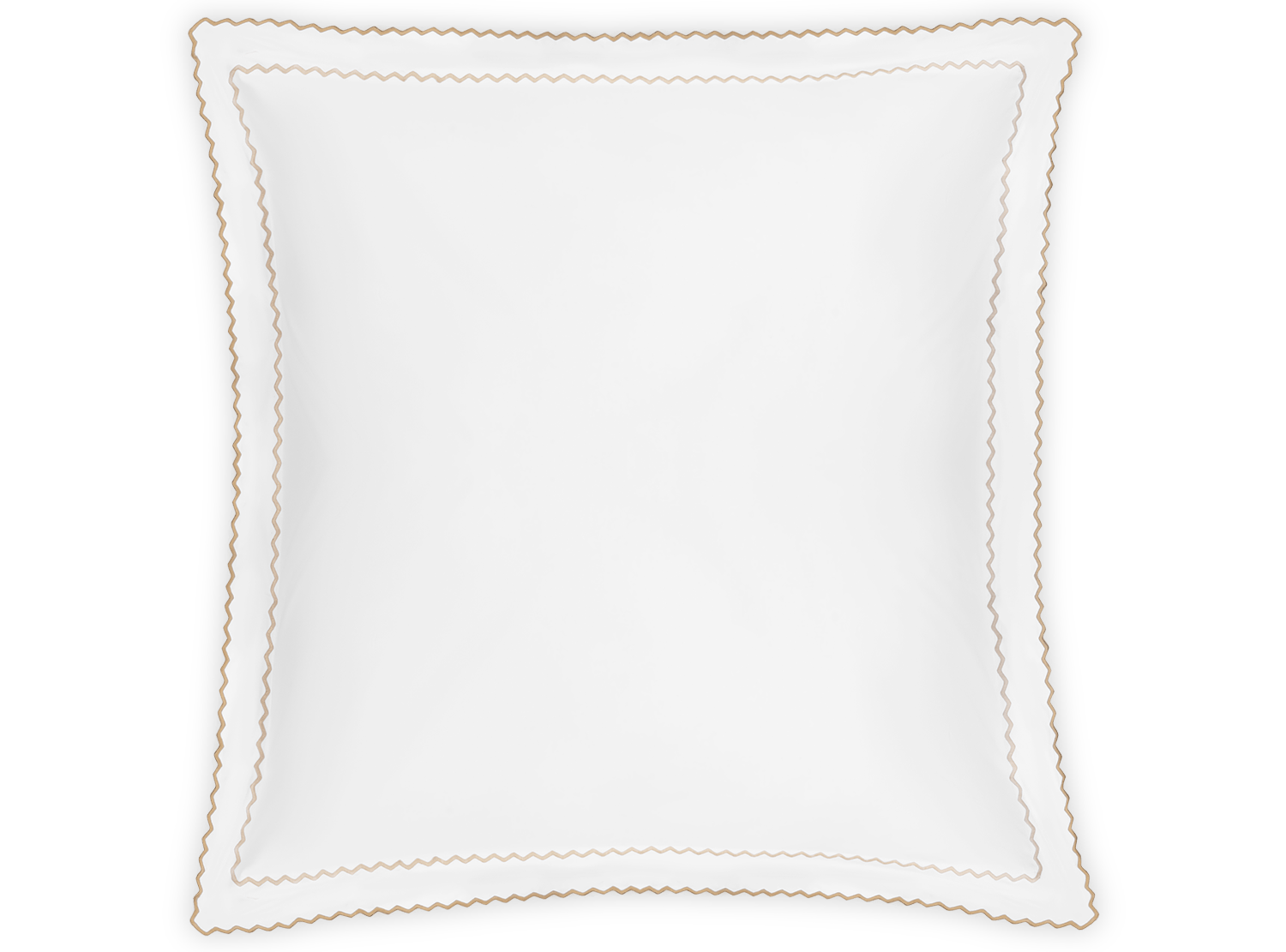 • Duvet covers have three rows of embroidery in a "U" shape on top of bed, 2" flange, inside corner ties, and zipper closure