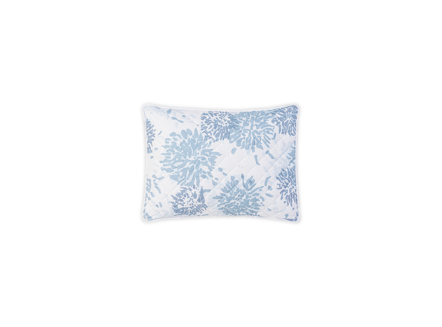 This iconic Matouk Tillett floral printed on Luca percale features graceful, painterly lines that bring quiet romance to the bed. 500 thread count Egyptian cotton percale woven and printed in Italy is quilted in a 2" diamond pattern.