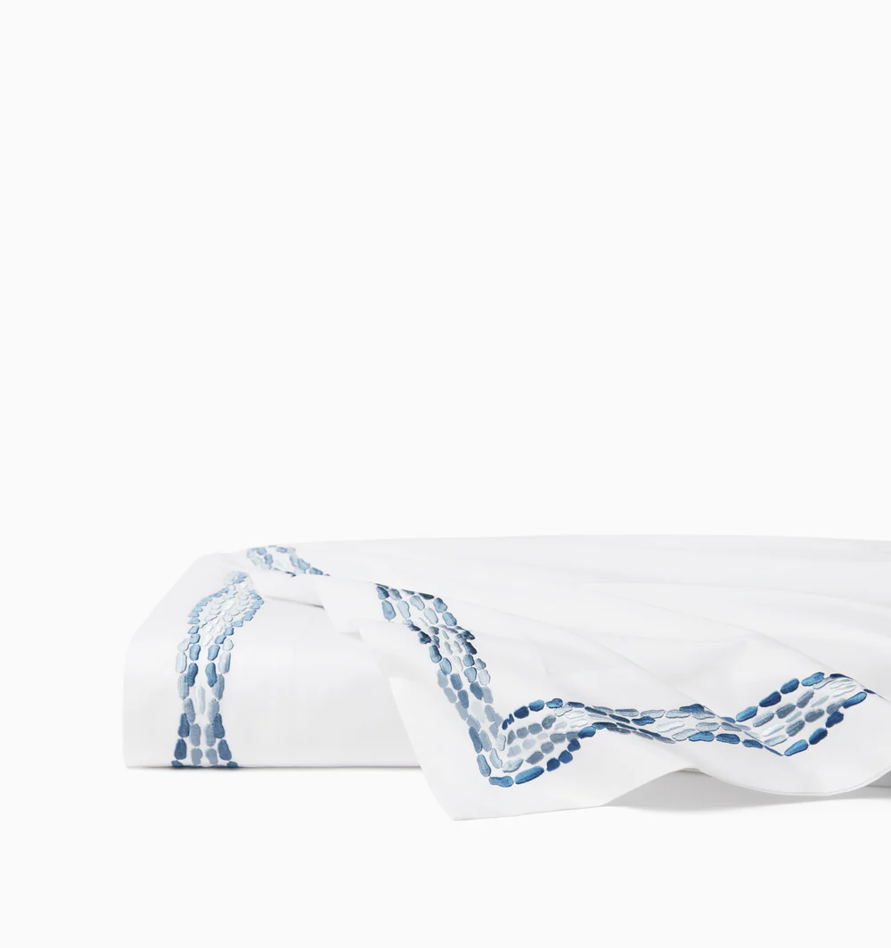 Cobblestones by SFERRA x Scalamandré. Originally designed in 1960 and inspired by the Greek historical city of Mystras, this iconic Cobblestones motif reflects Scalamandré’s commitment to timeless elegance. Once rendered in single-color printed cotton, Cobblestones has now been reimagined with a fresh, transitional sensibility for today’s design aesthetics. This updated version marries the pattern’s rich Byzantine roots with a contemporary softness: a watercolor wash effect brings depth and nuance to the print design, while the embroidered elements of this Italian-crafted bedding collection lend added dimension and tactile luxury. Cobblestones offers the perfect balance of classical inspiration and modern refinement, inviting a piece of Greece’s storied heritage into your home.