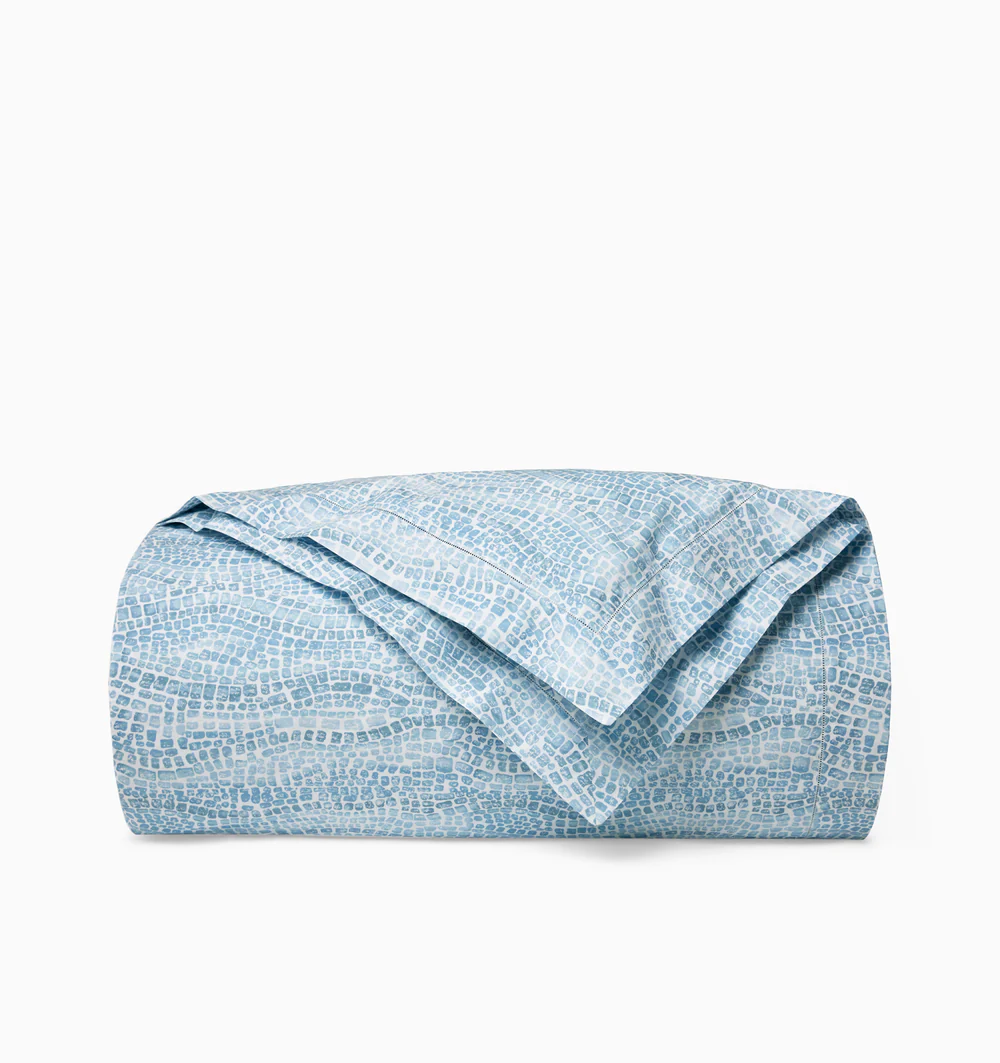 Cobblestones by SFERRA x Scalamandré. Originally designed in 1960 and inspired by the Greek historical city of Mystras, this iconic Cobblestones motif reflects Scalamandré’s commitment to timeless elegance. Once rendered in single-color printed cotton, Cobblestones has now been reimagined with a fresh, transitional sensibility for today’s design aesthetics. This updated version marries the pattern’s rich Byzantine roots with a contemporary softness: a watercolor wash effect brings depth and nuance to the print design, while the embroidered elements of this Italian-crafted bedding collection lend added dimension and tactile luxury. Cobblestones offers the perfect balance of classical inspiration and modern refinement, inviting a piece of Greece’s storied heritage into your home.