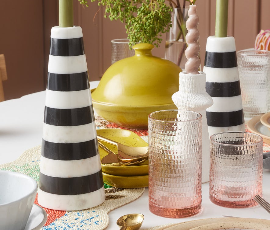 - Highball: 3"D x 5.5"H, holds 18 oz.