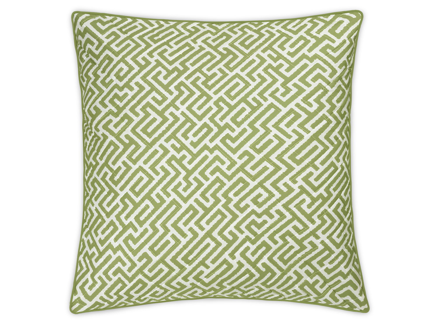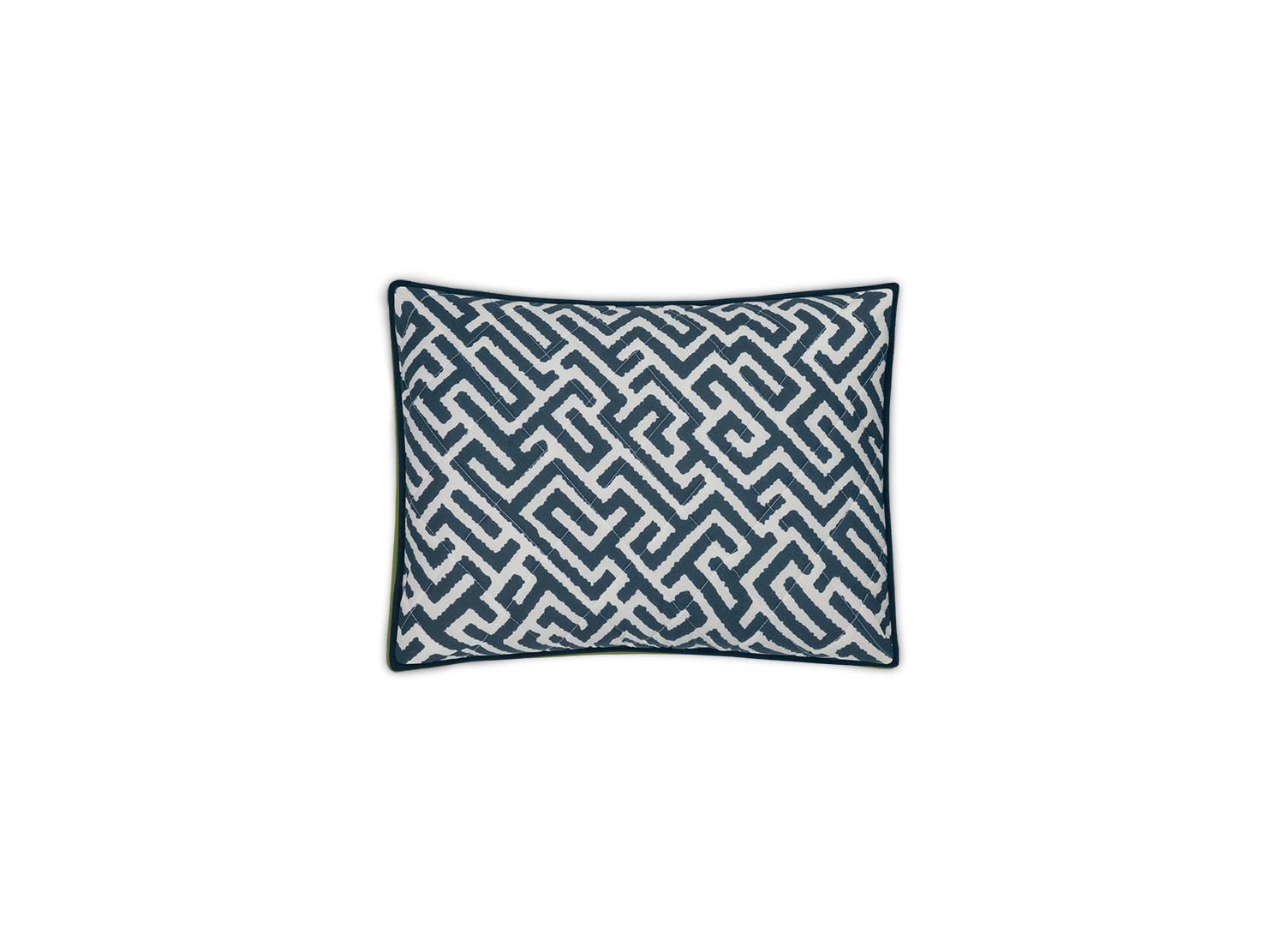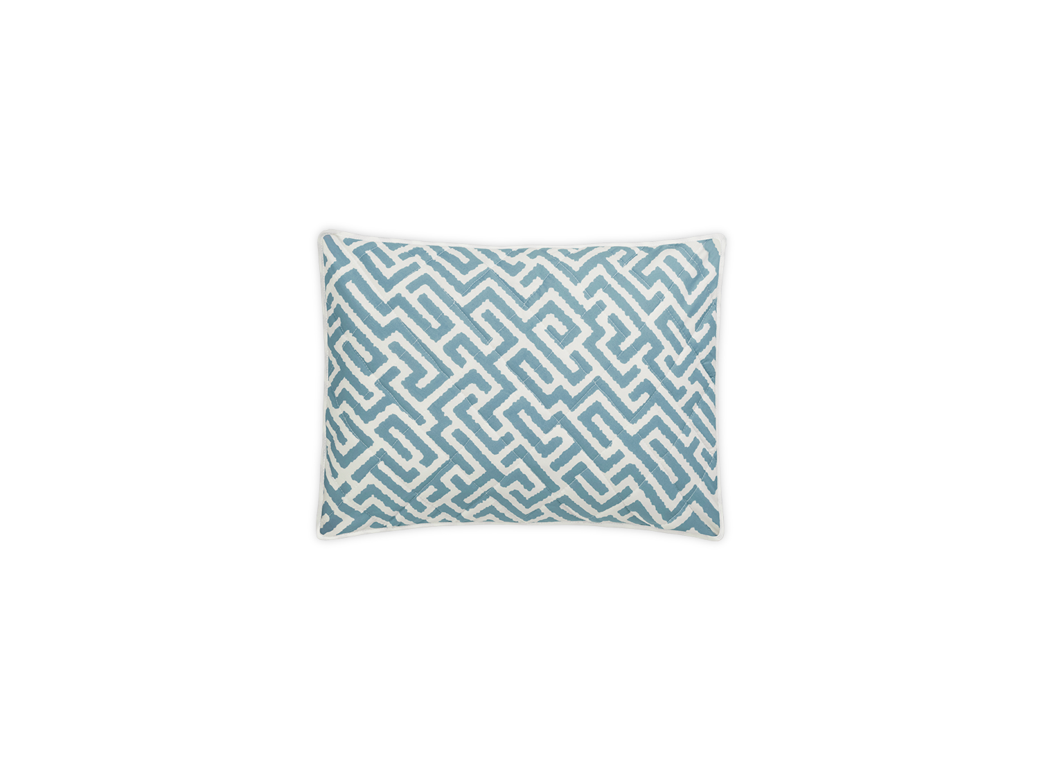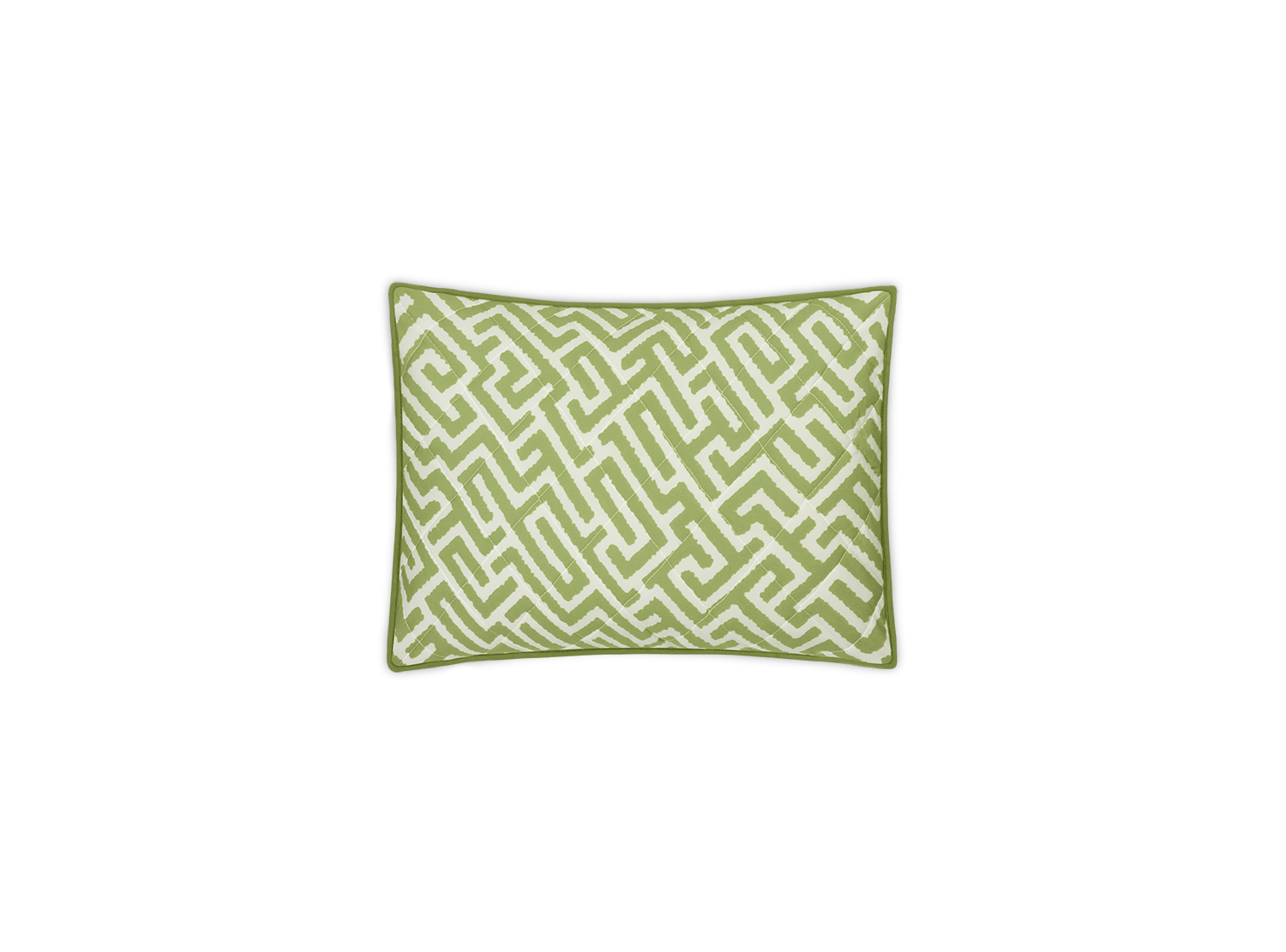 Gabriel is a Matouk Schumacher print featuring a striking geometric motif and complementary piped edge, quilted in a 3" diamond pattern. Reminiscent of a finely woven tapestry, its design introduces dynamic movement and dimension to the bed—boldly graphic yet elegantly refined.