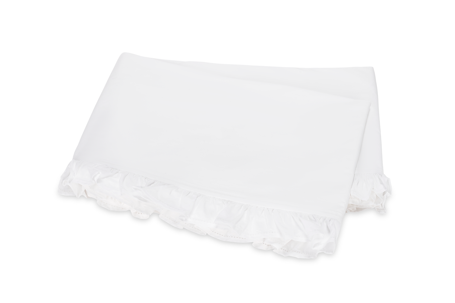 - Flat sheets and pillowcases are finished with a hemstitched ruffle
