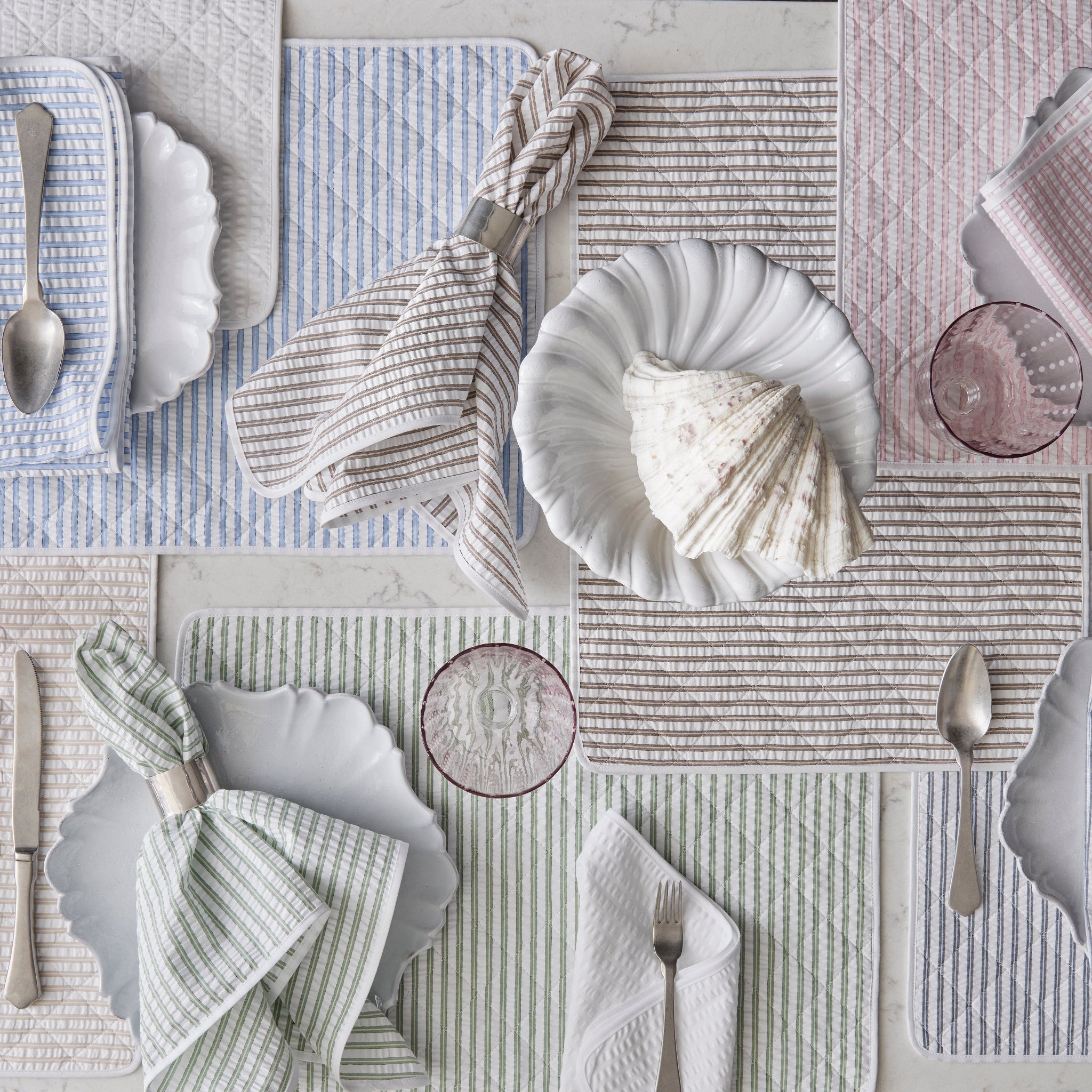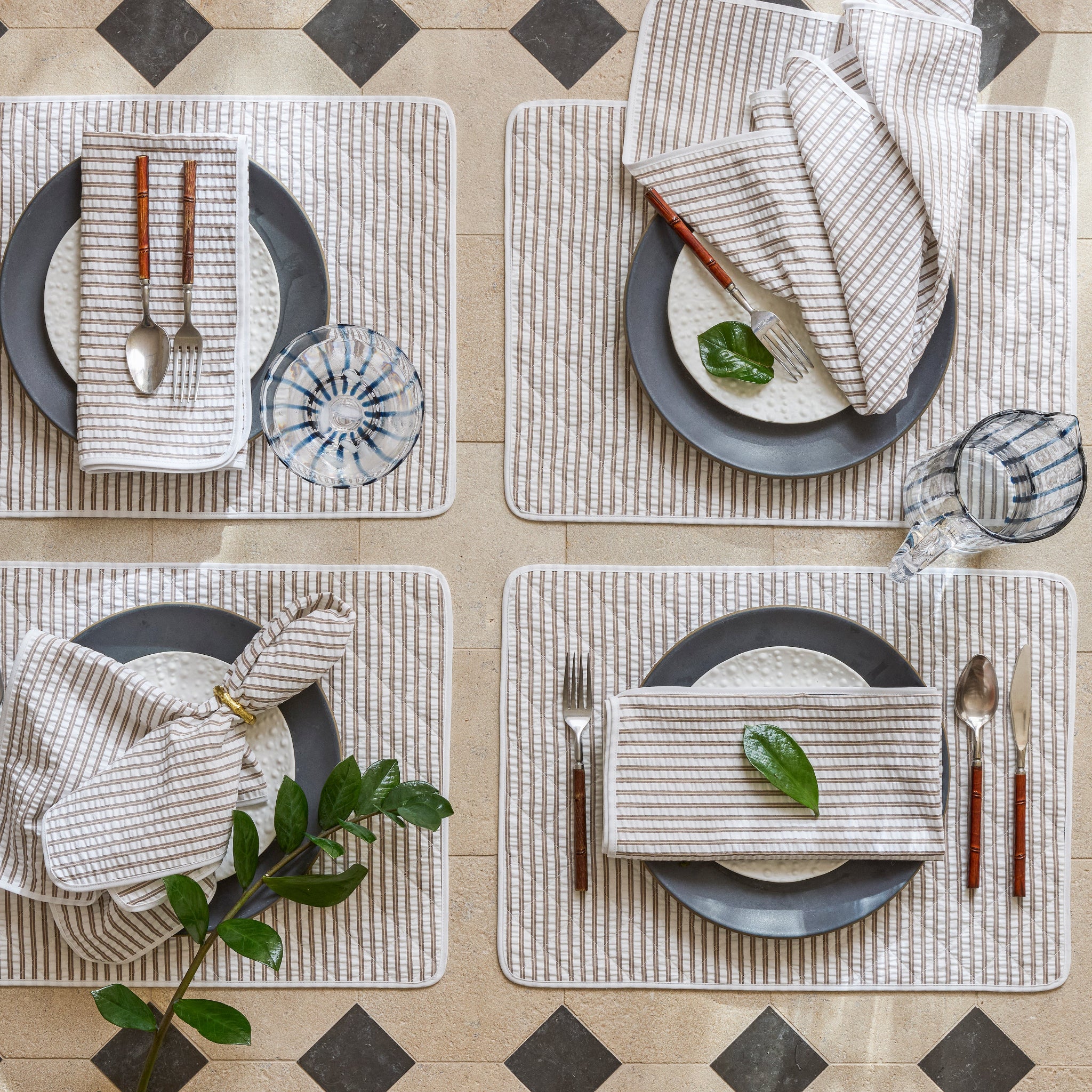 Matteo exudes a tailored, menswear-inspired aesthetic with its parallel striped lines and straight taped edge. Offered in a range of classic and new colors, it brings a refined, versatile touch to everyday table style.