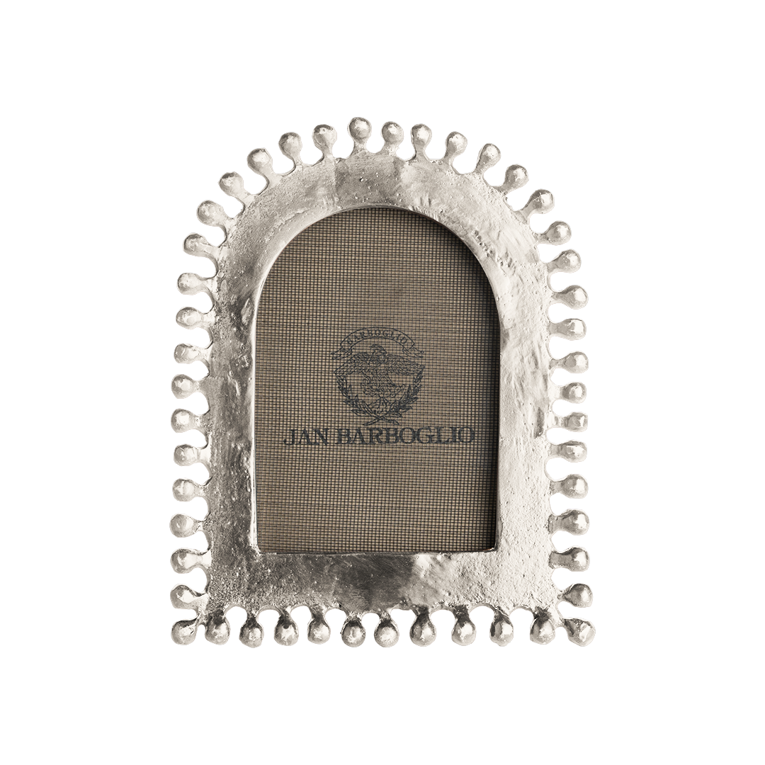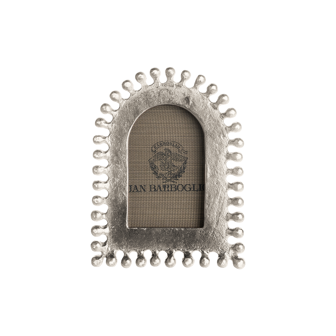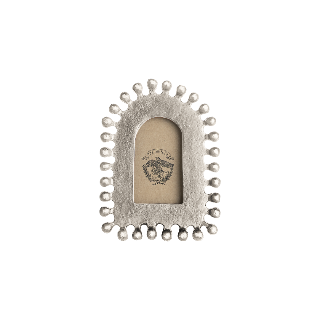 Cast iron arched vertical picture frame available in three sizes and choice of natural or nickel finish to be grouped or alone. Stand on a surface or hang on a wall, the choice is yours.