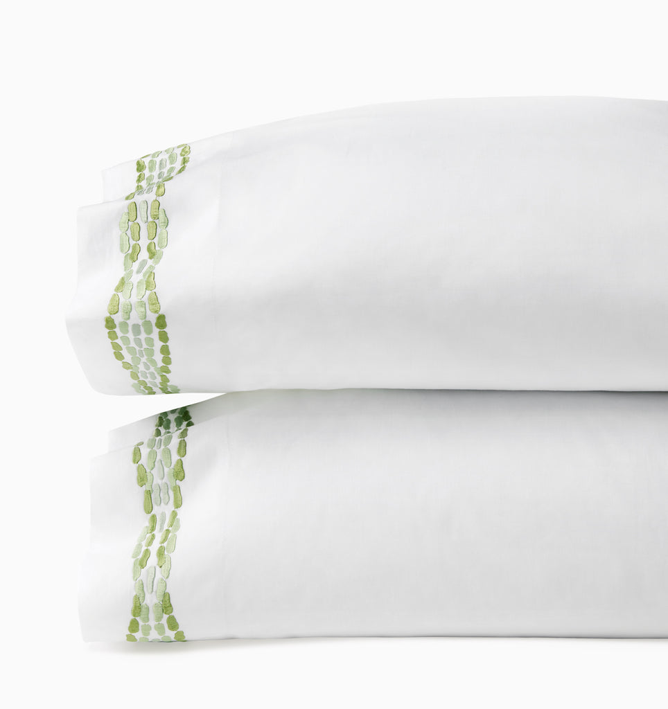 - White percale sheeting with elaborate embroidery detail, finished with classic hemstitch.