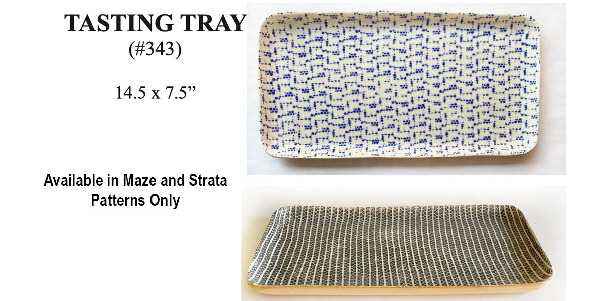 - Tasting Tray: 14.5" x 7.5", maze and strata patterns only