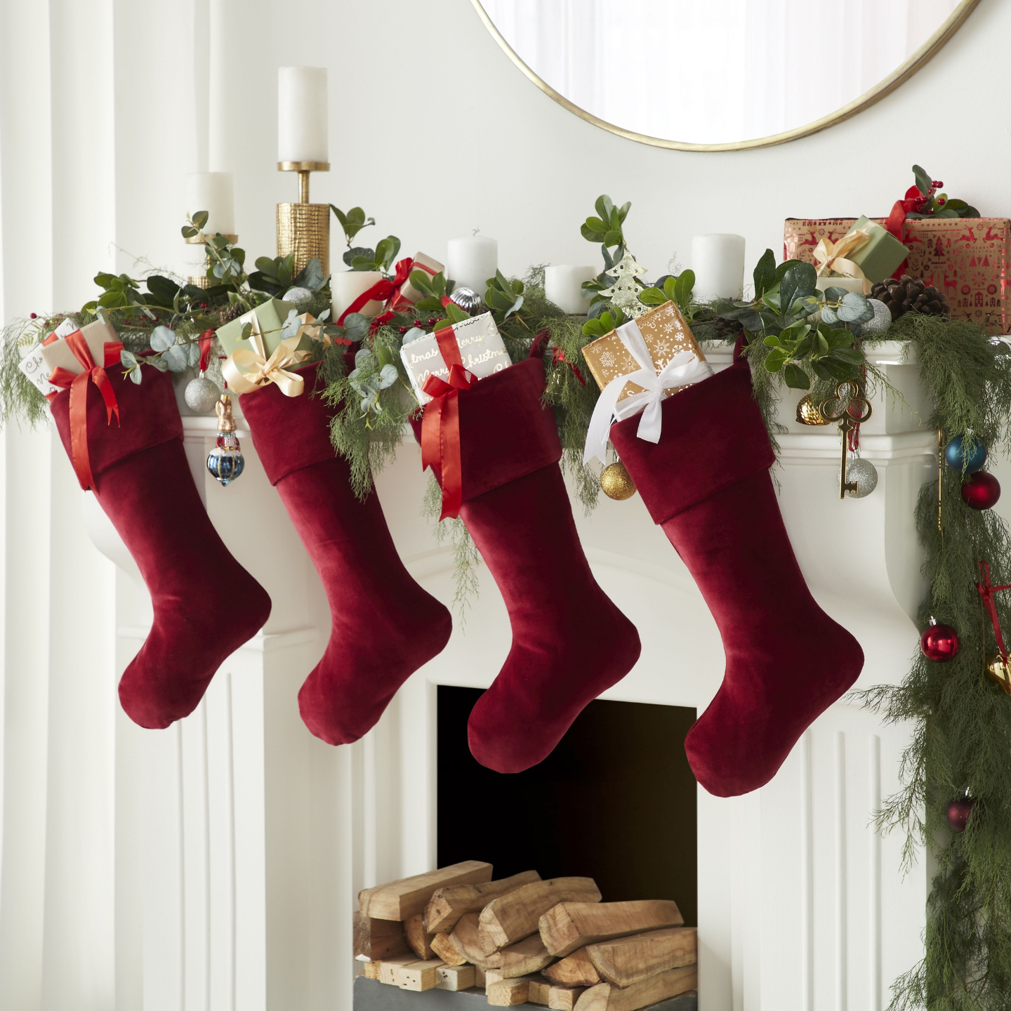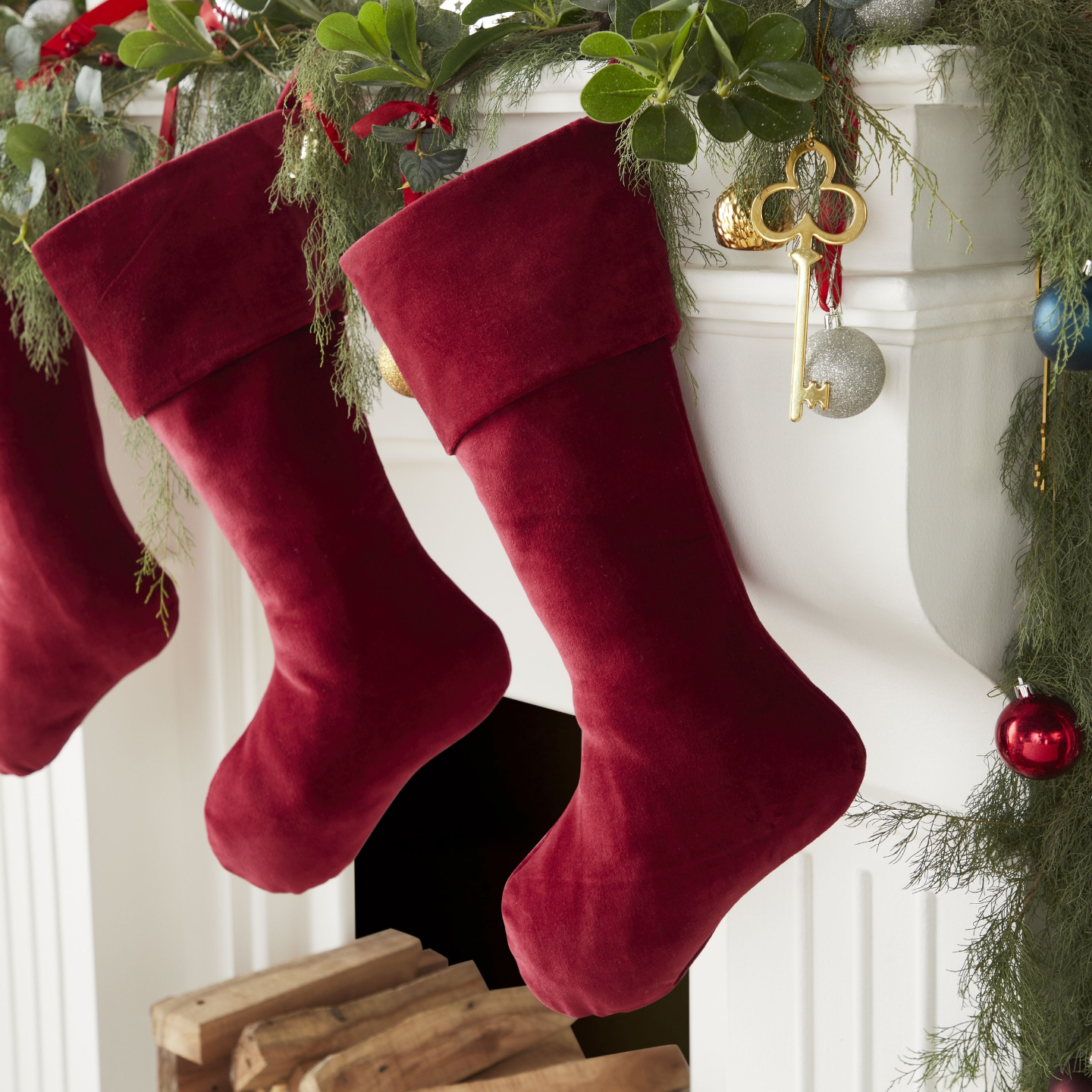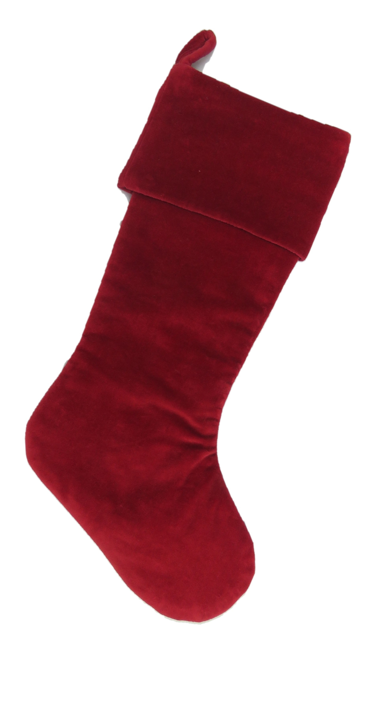 Timeless red velvet stocking. Perfect for every member of the family. Pair with our classic red velvet tree skirt for Christmas decor that never goes out of style.