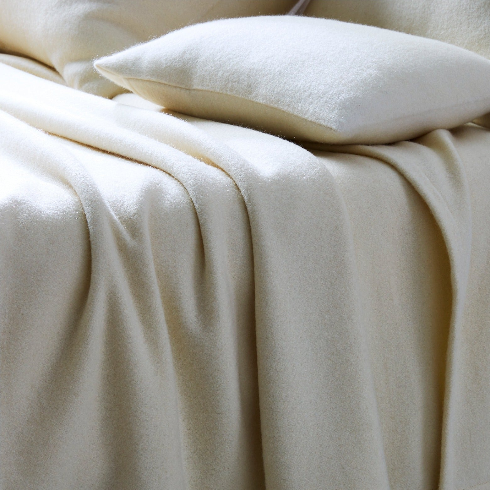 Supremely comfortable and soft cashmere blanket sized for bed and complementing shams
