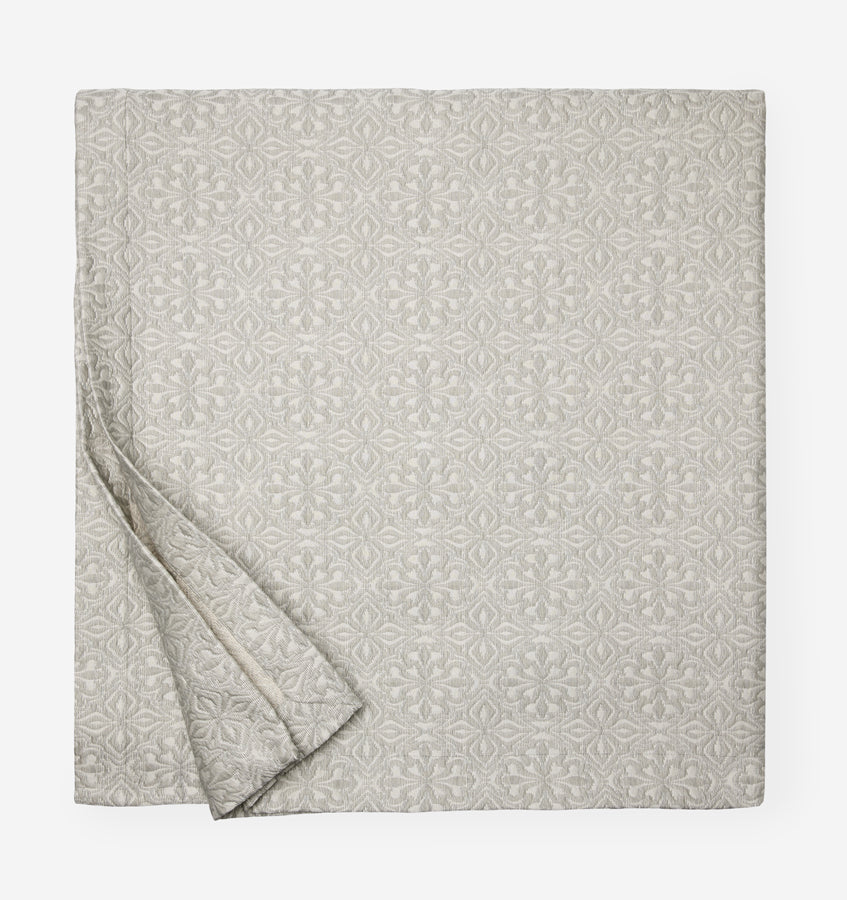 - Intricate tile motif pattern yarn dyed and woven into soft and radiant lightweight fabric for coverlets and shams