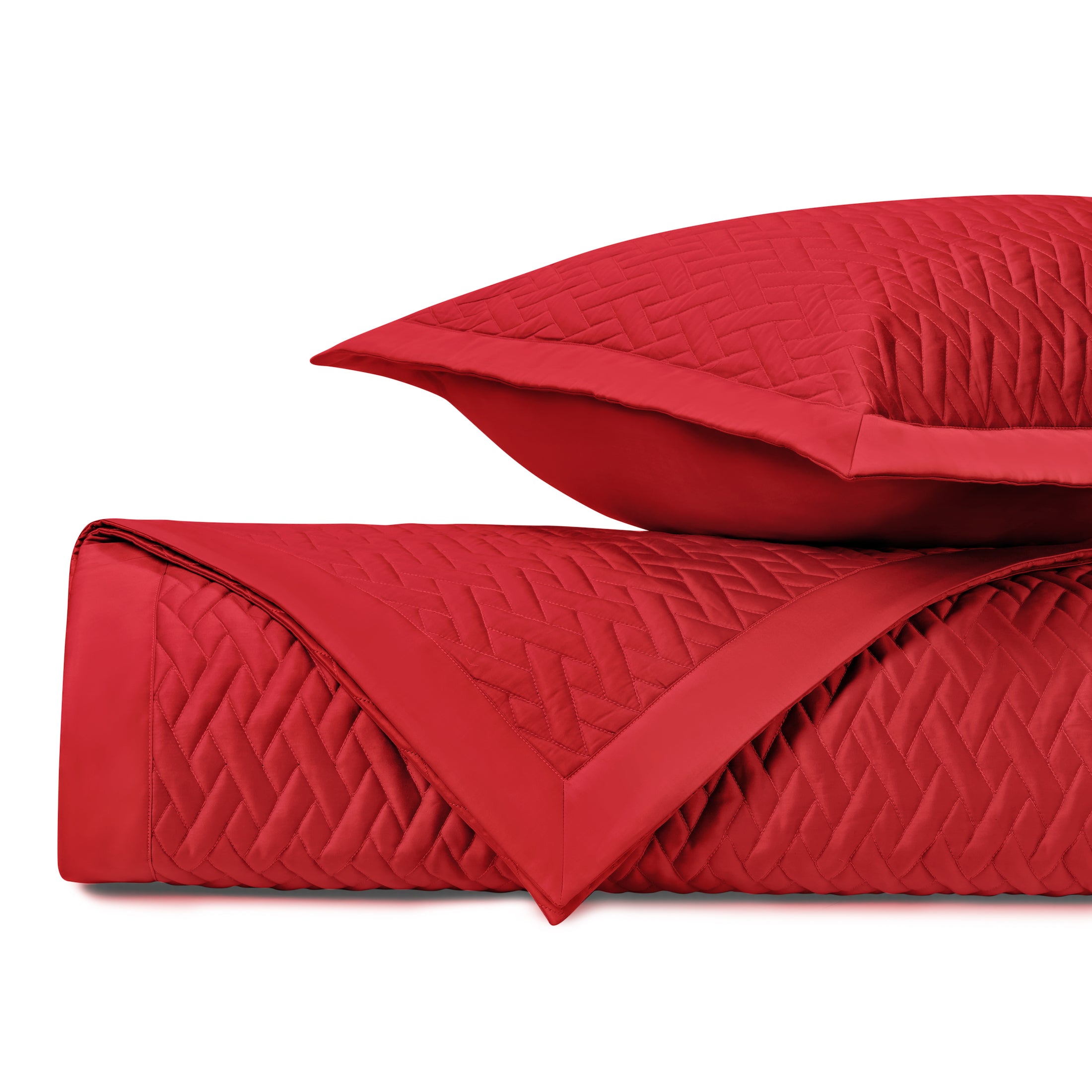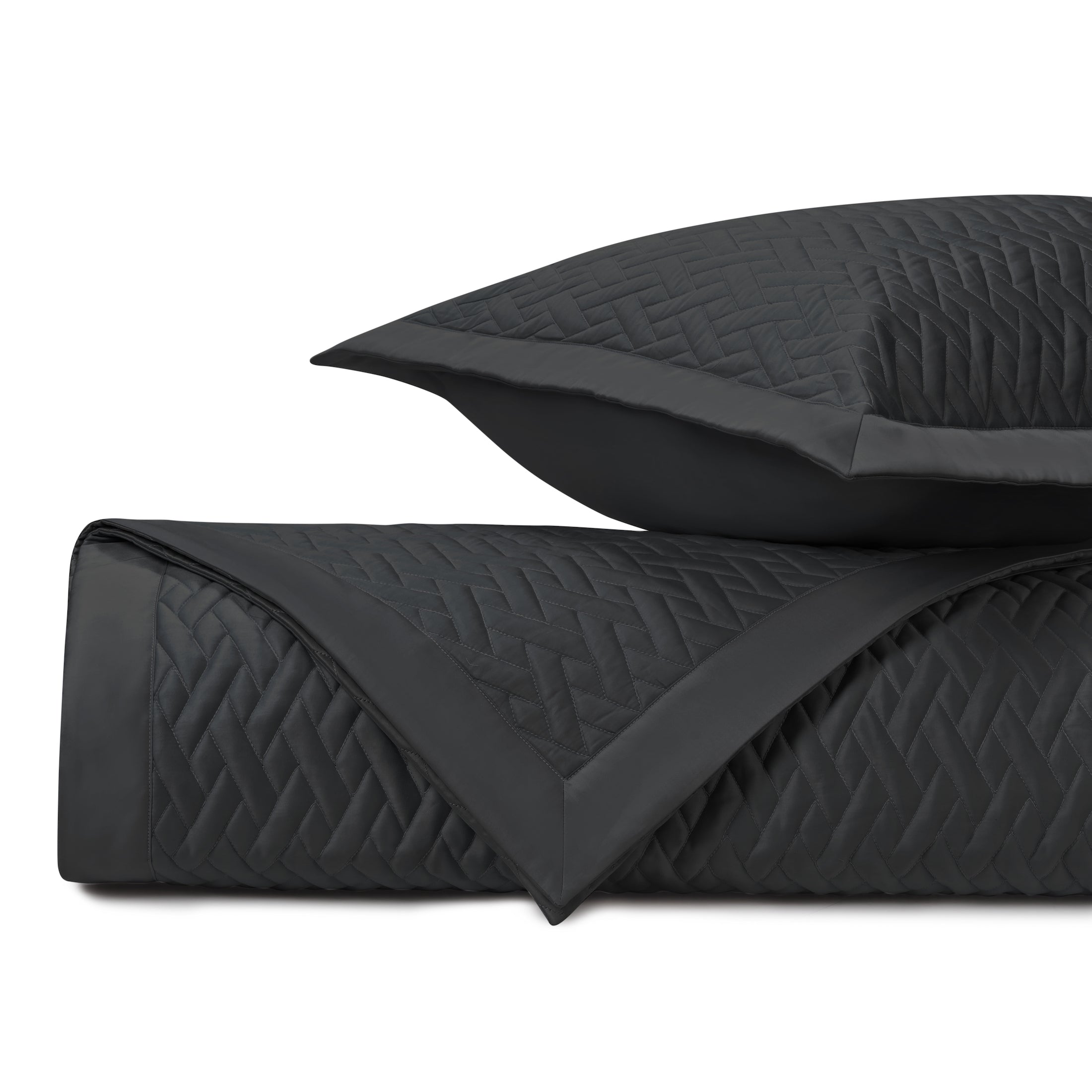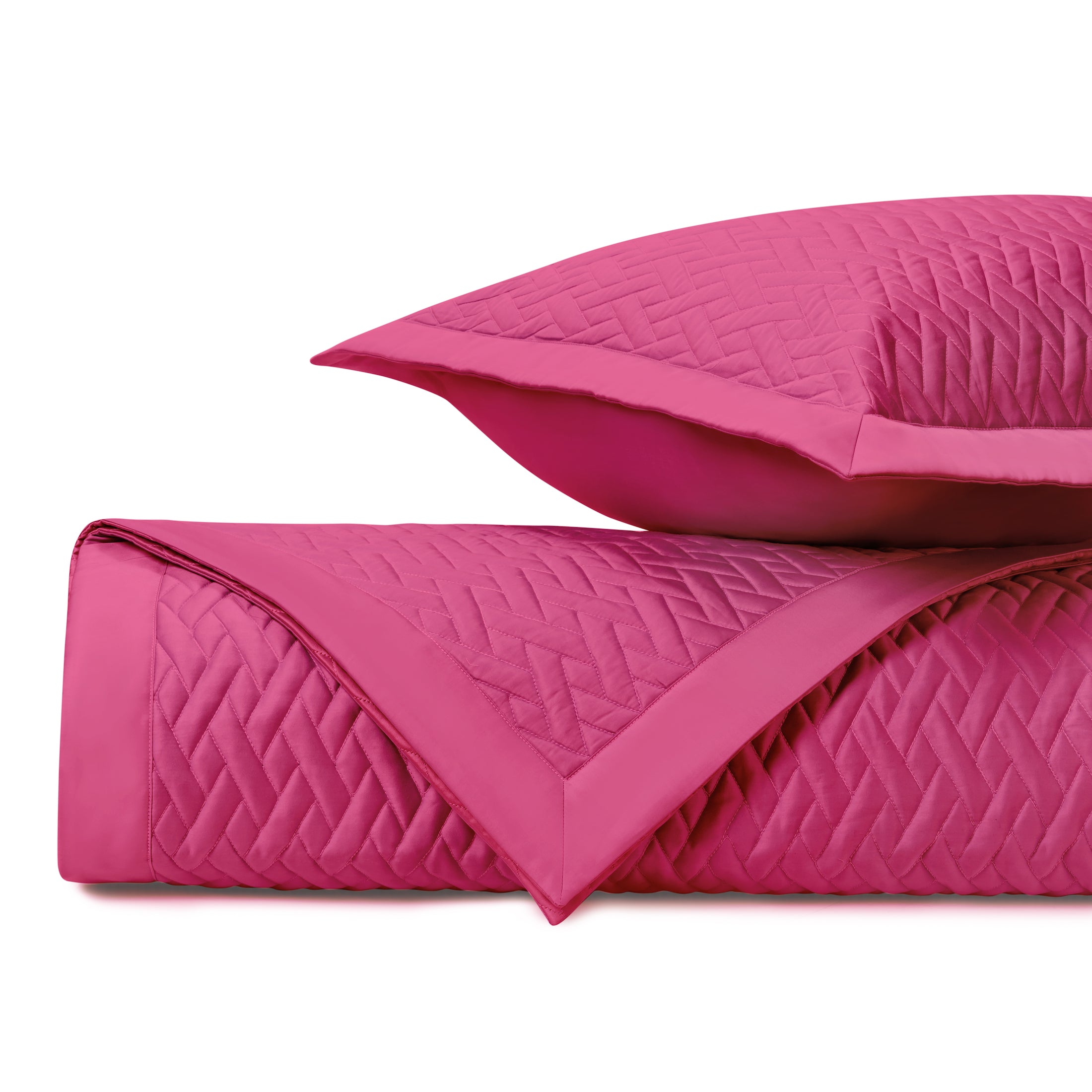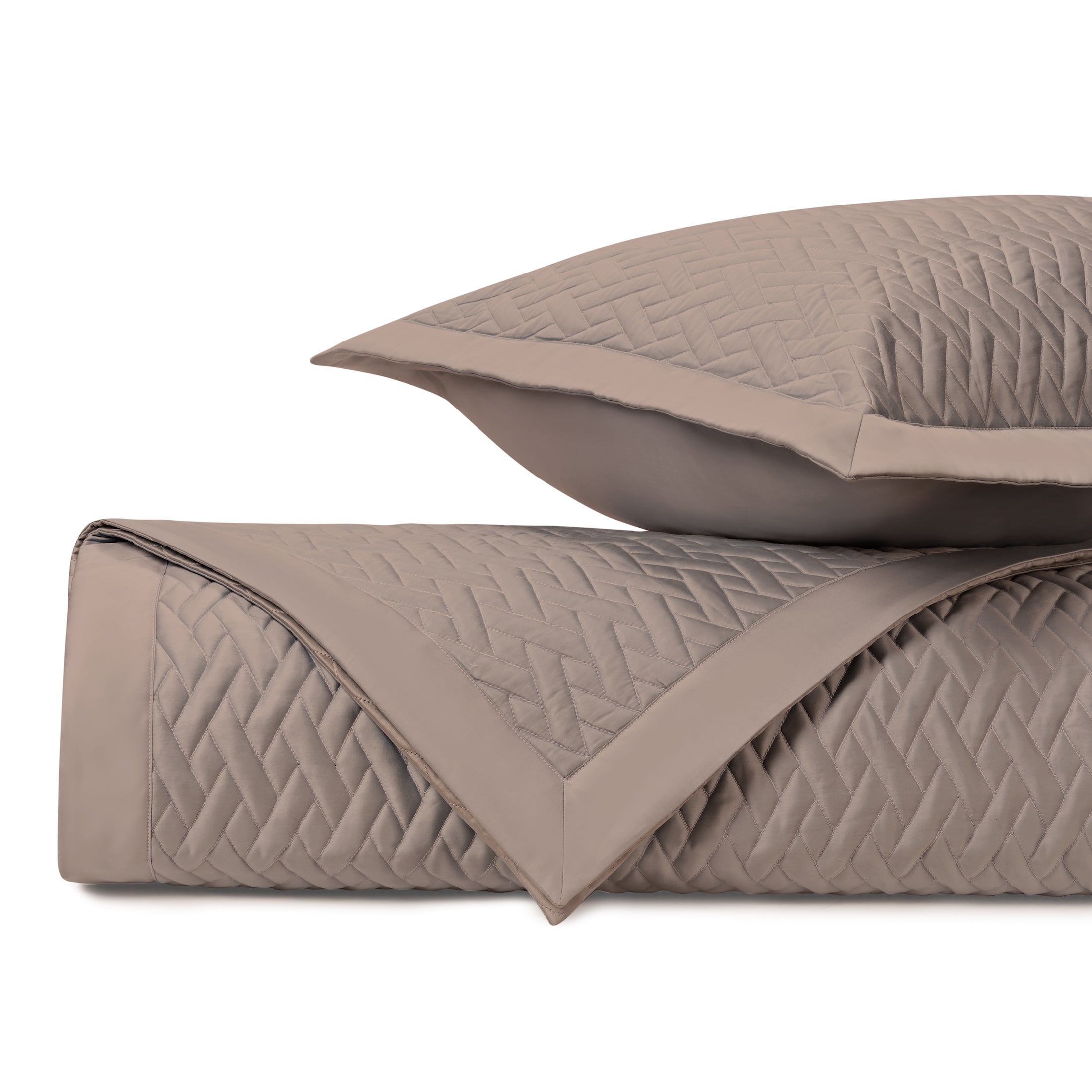 Viscaya coverlet and shams feature a quilted weave design with small diamond centers on 100% Egyptian cotton. The pattern adds texture and dimension, and the sateen fabric gives a subtle sheen. Each piece is made to order in the USA, so customization of size, color, and details are always an option.