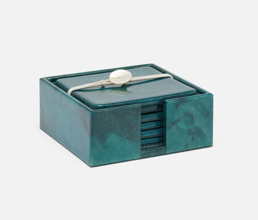 - Coasters: 5"L x 5"W x 2"H, boxed set of 6