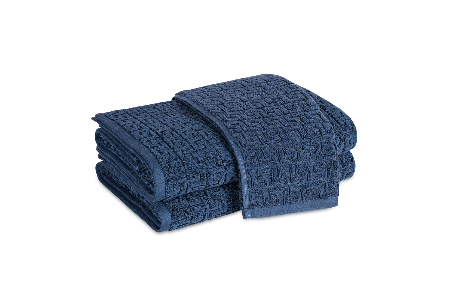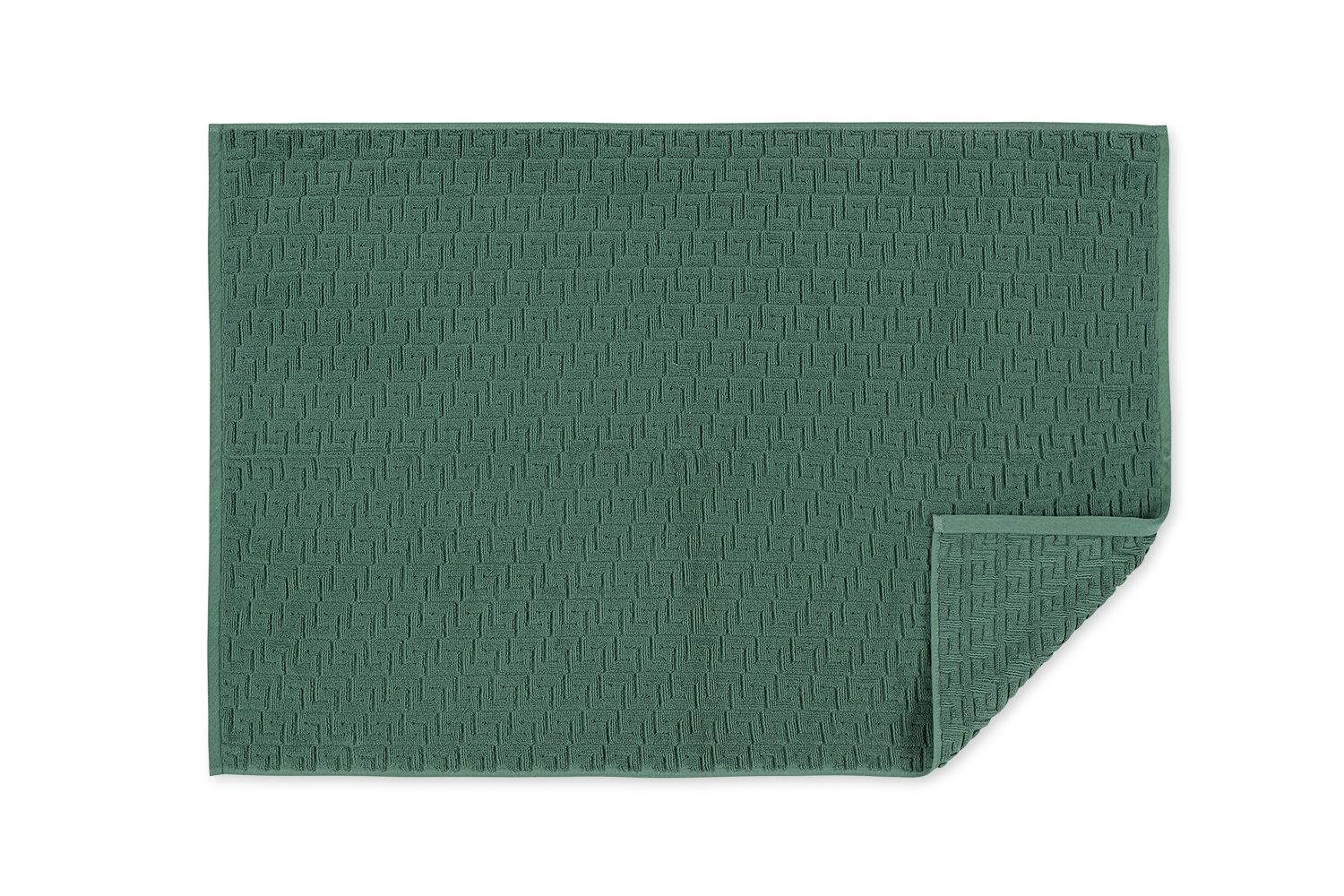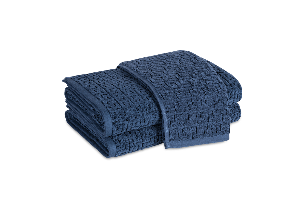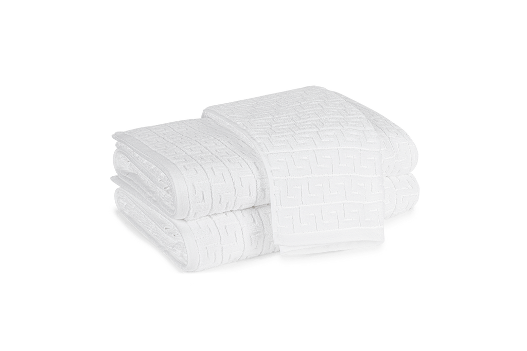 Elegant and absorbent. A timeless Greek key pattern is featured on the sculpted Athena Bath Towels and Tub Mat from Matouk. Inspired by a Schumacher fabric, these towels are available in beautiful saturated colors that add classic elegance to the bathroom.