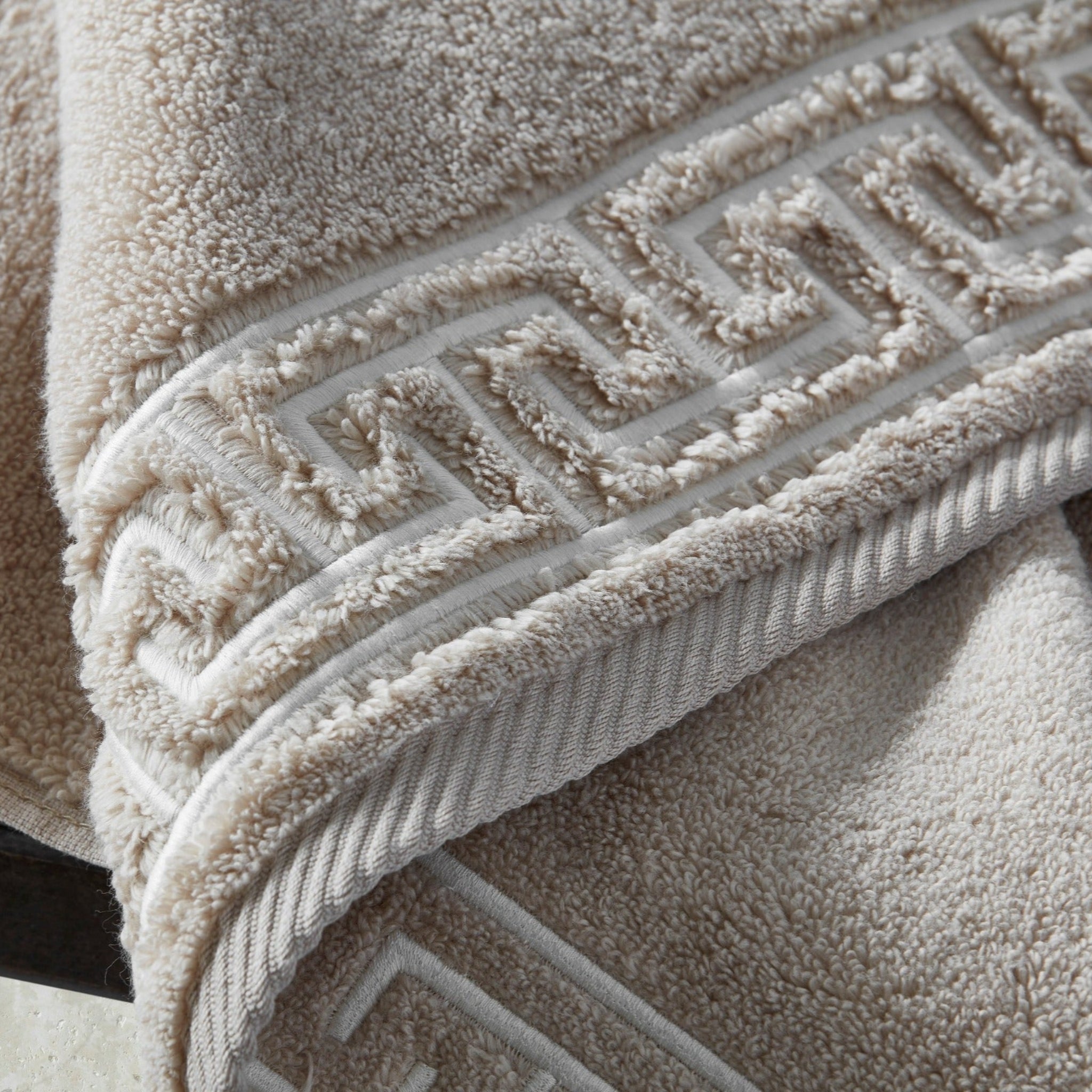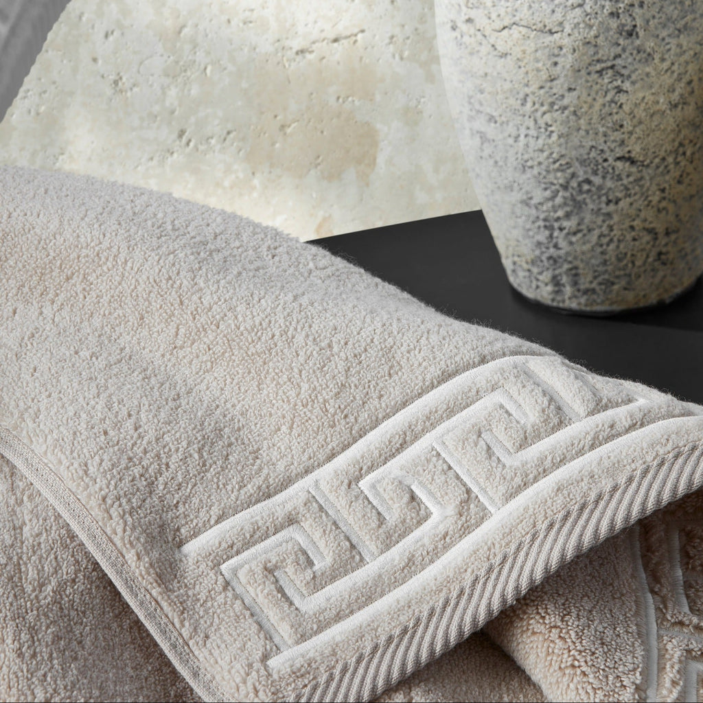 Adelphi's signature geometric frame embroidery is stitched onto Matouk's ultra-soft and plush Milagro towel. Sitting at the crossroads of classic and contemporary, Adelphi is a stocked bath embroidery available on a solid colored base and the first to grace Milagro – making it all the more special.