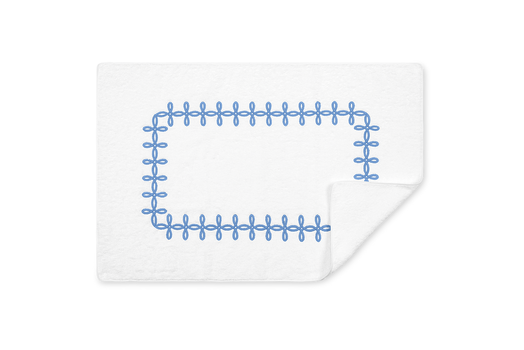 • Cairo terry towels with white embroidered graceful knots in classic colors.