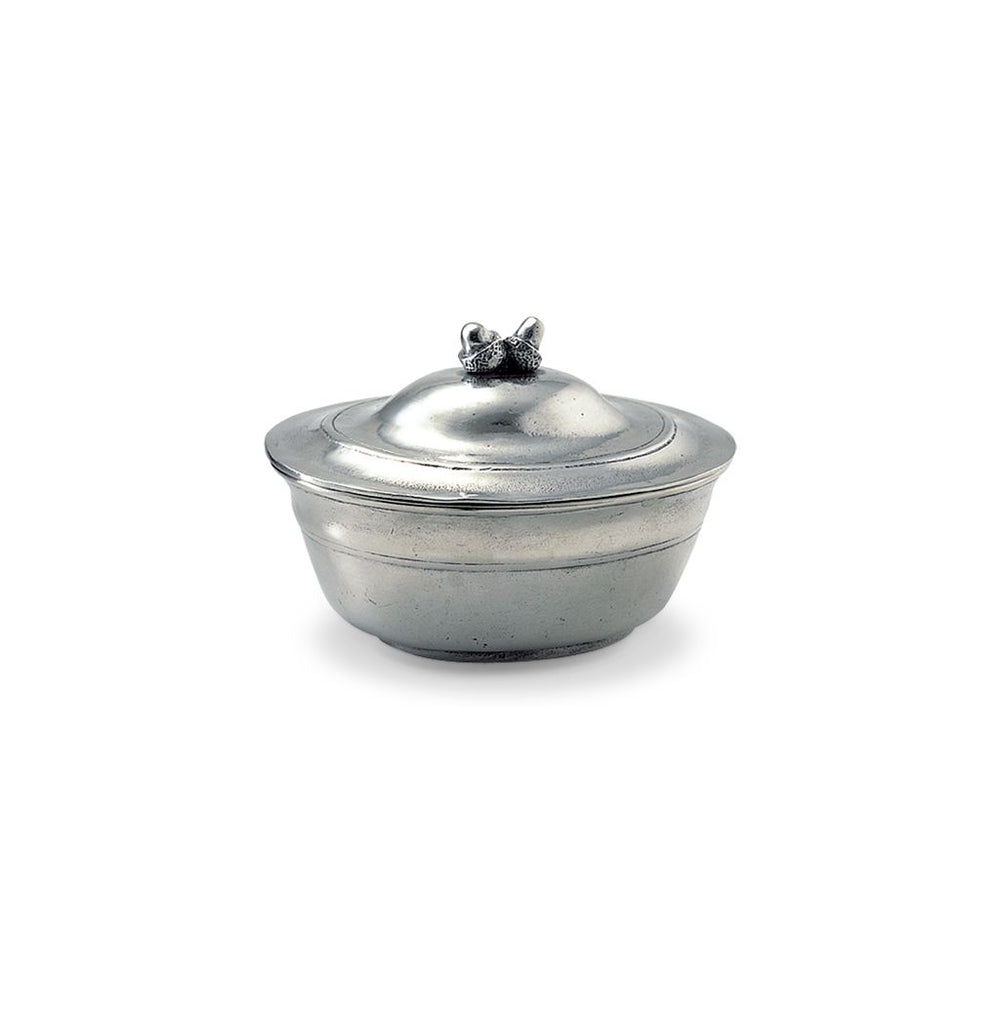 Care: Pewter tarnishes very slowly and requires almost no maintenance. To clean your pewter hand wash in warm water with a liquid dish soap. Be sure to dry the pewter completely, as water allowed to dry on pewter may cause spots. Any spots that appear can be easily removed by polishing or by gently rubbing the area in small circular motions with very fine "0000" steel wool.