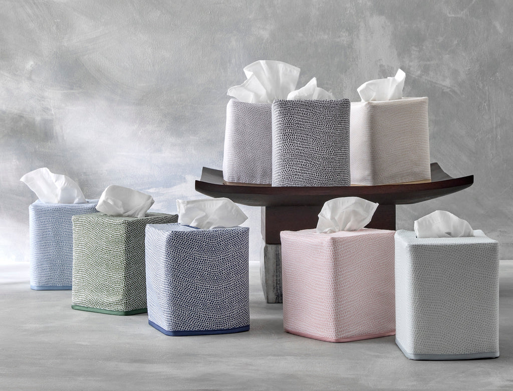 - Tissue box cover with printed painterly brushstrokes in a classic harlequin pattern create a modern geometric design that is finished with a taped edge