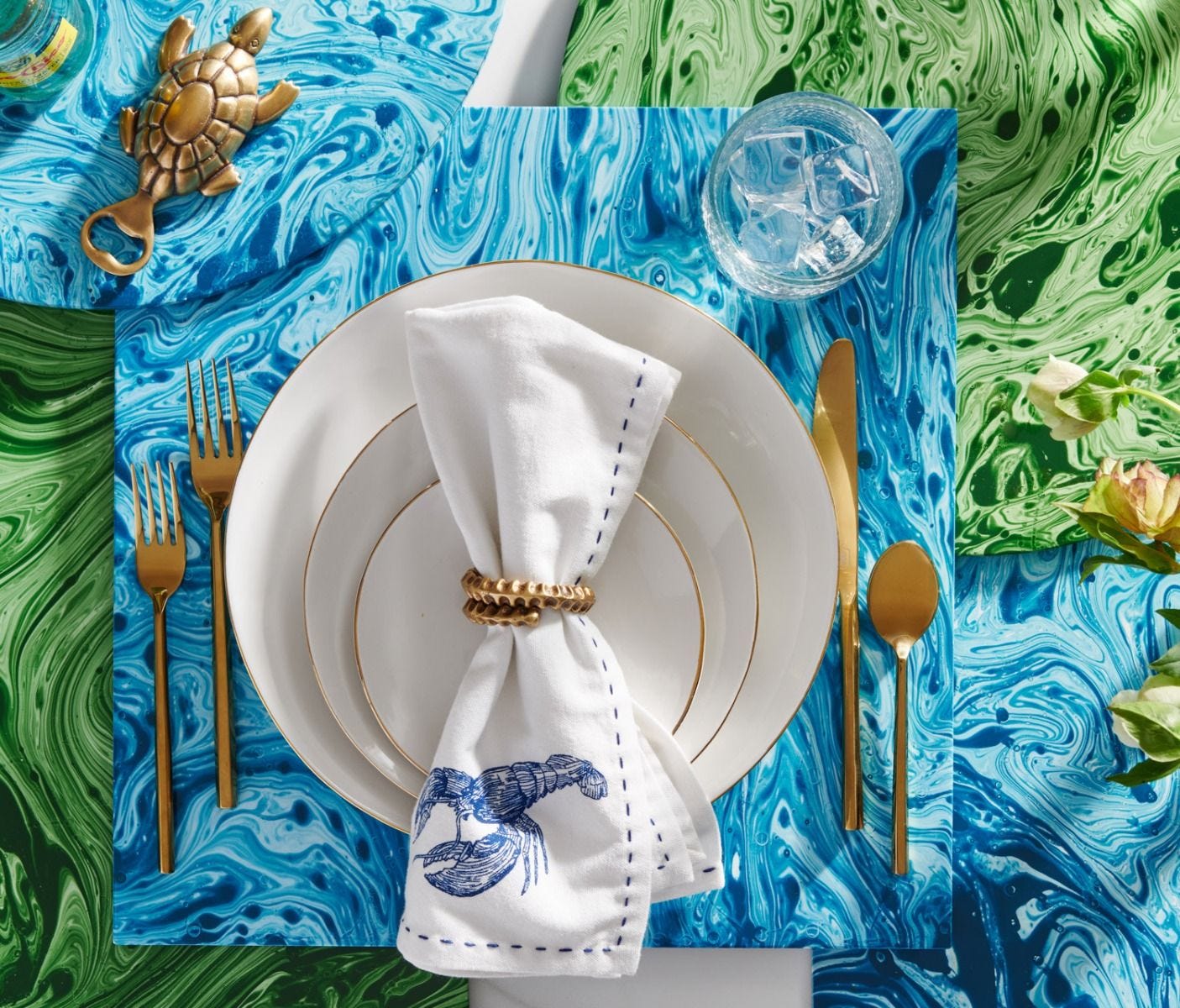• Crisp white cotton with navy blue lobster stamped in bottom right corner