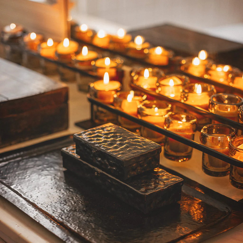 Never leave a lit flame unattended, or allow the candle to burn too low, as the glass can become hot and break. We suggest placing salt or sand underneath the candle or tea light to protect the glass and also to assist in the removal of wax.