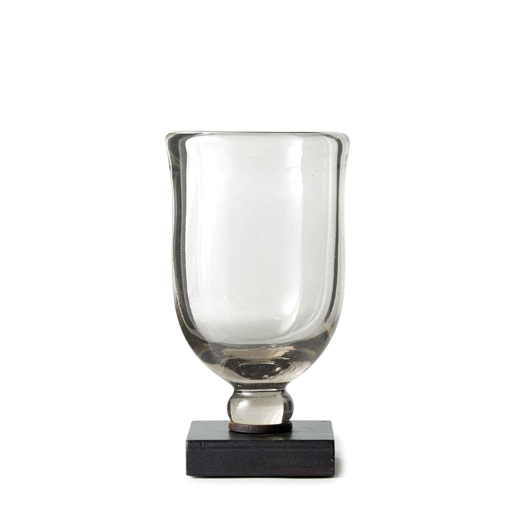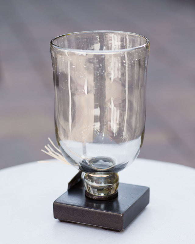 Care: Hand wash glass vessel. Clean iron with soft dry cloth.