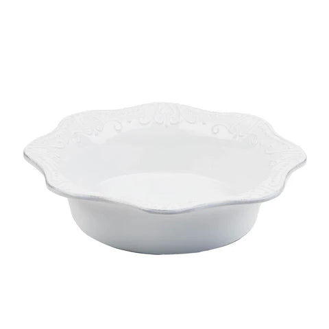 Introducing The Isabella Collection. With an elegant swirl design mixed with pearls, this stoneware collection is classic, timeless, and affordable for everyday use. Perfectly pairs with crystal and silver for special occasions. Available in three colors, including Ivory, Ice Blue, and Pure White.