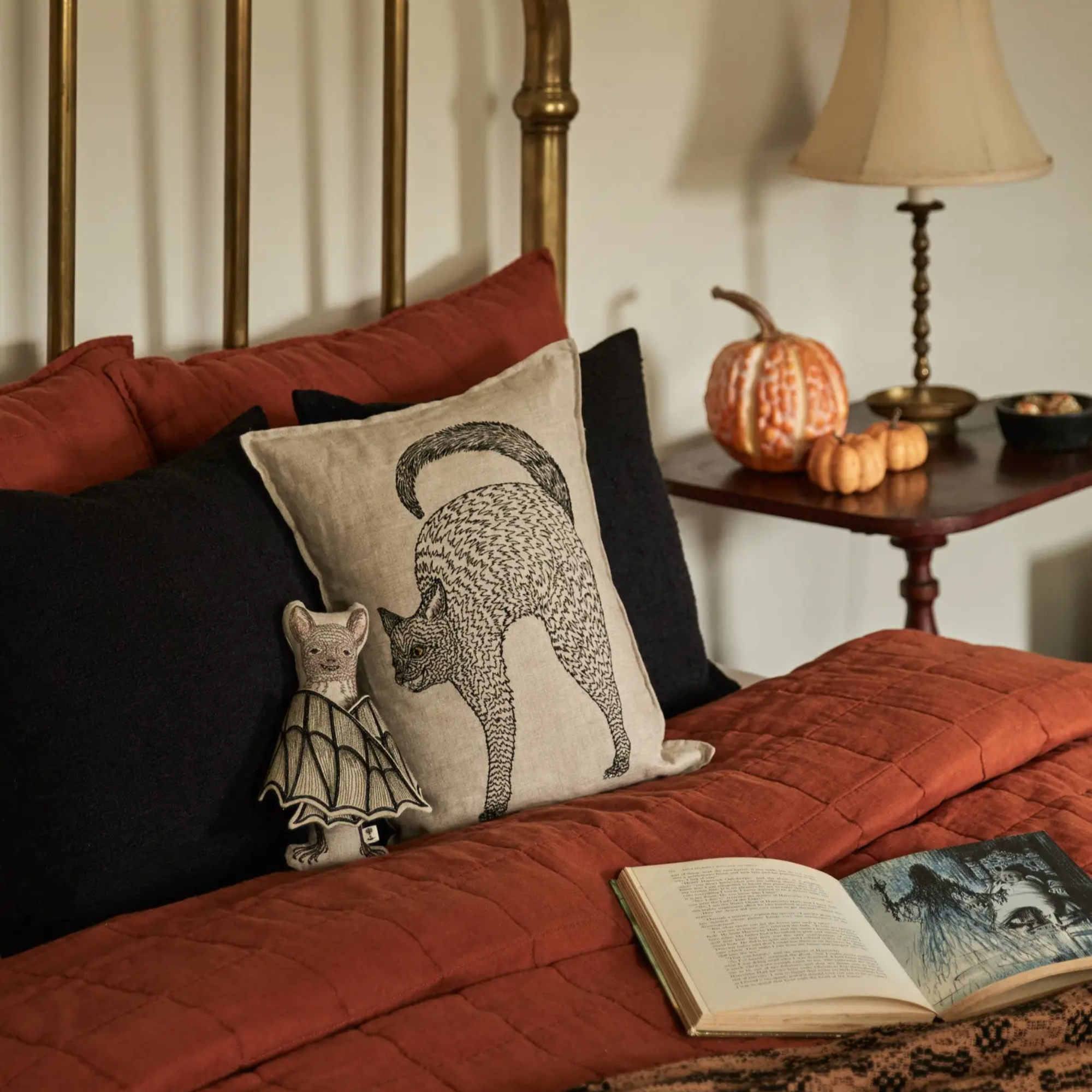 Bat smiles with excitement as he hides a great surprise behind his fabric wings. As he gets ready to take flight, Bat spreads his wings and reveals the beautiful wingspan of a butterfly! Is this Bat’s Halloween costume? He flies off into the night before we can find out. Display the bat wings open or closed. A magnet is sewn inside the wings to keep the fabric together when the wings are shut. Embroidered front and back.