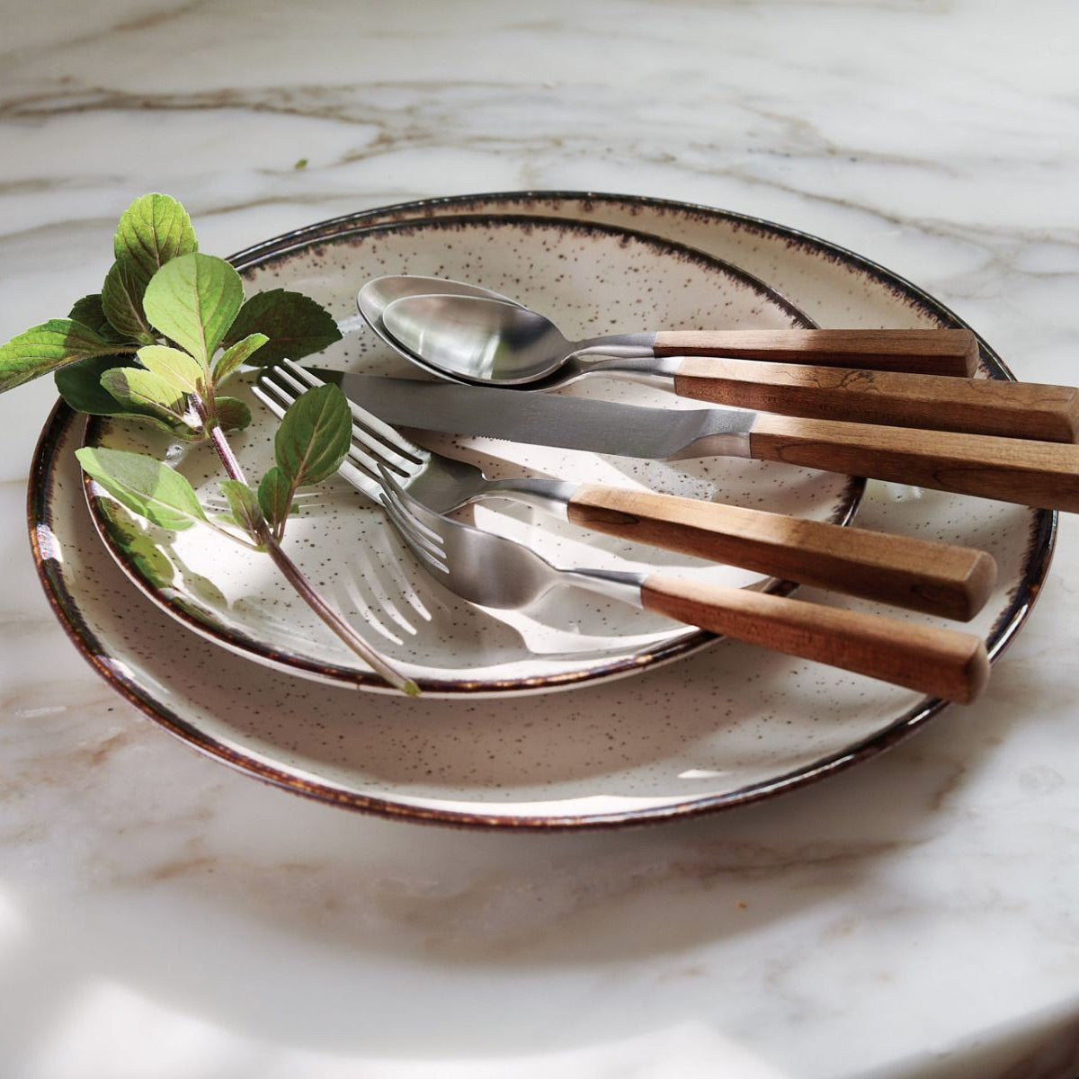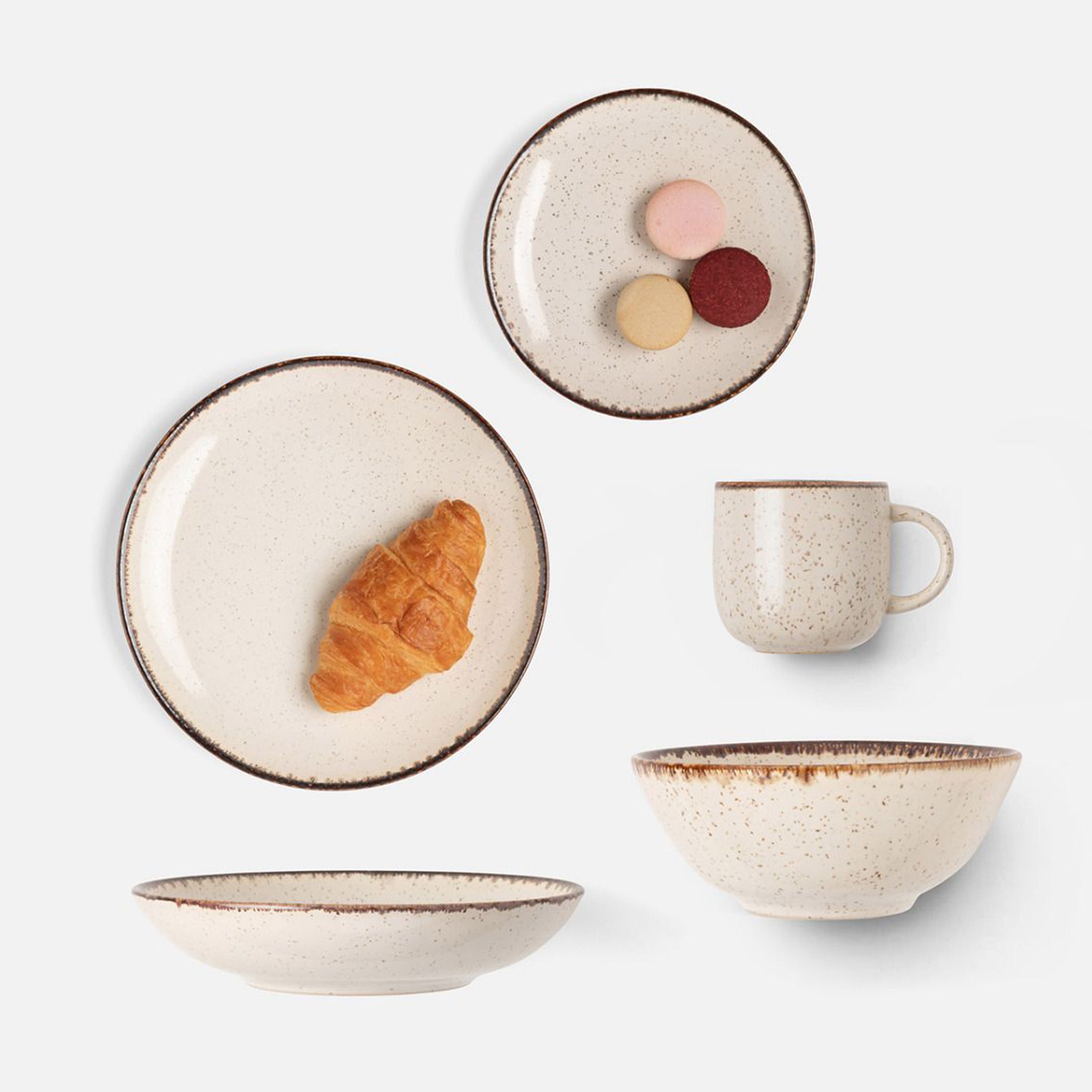 • Speckled ivory finish dinnerware with contrasting rim detail