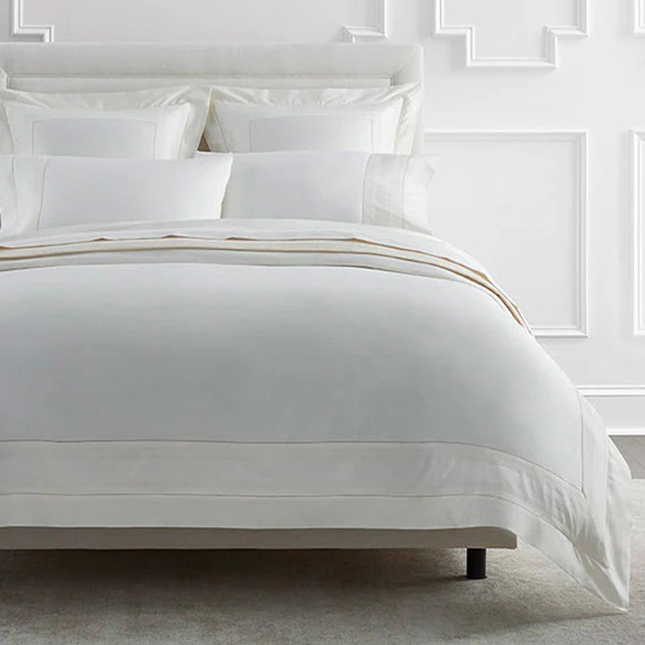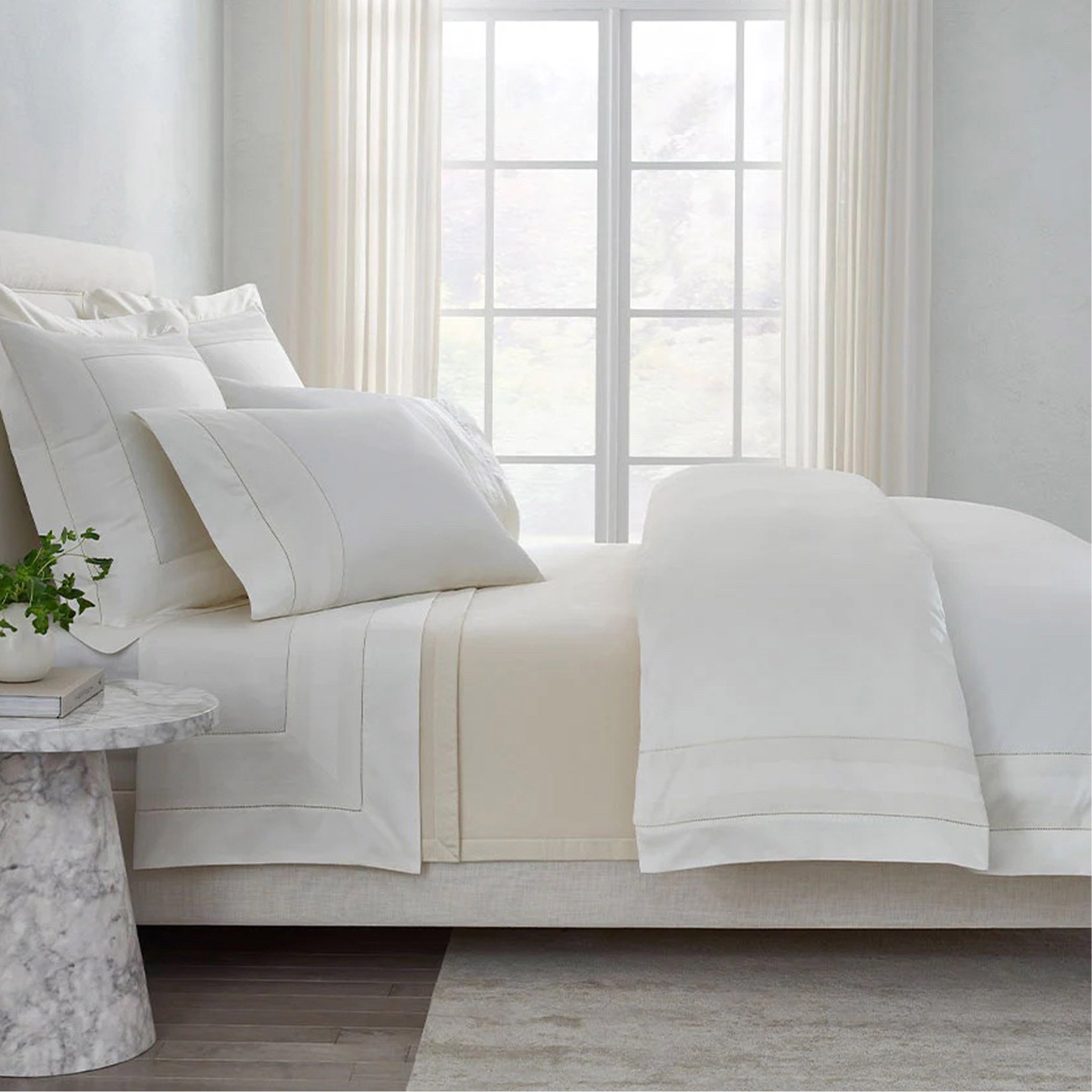 • Duvet covers have sateen jacquard inset on U-shape on 3" flange.