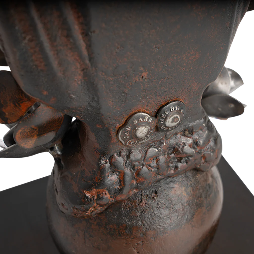 Beautifully cast iron virgin on a balin base with an iron floral aura