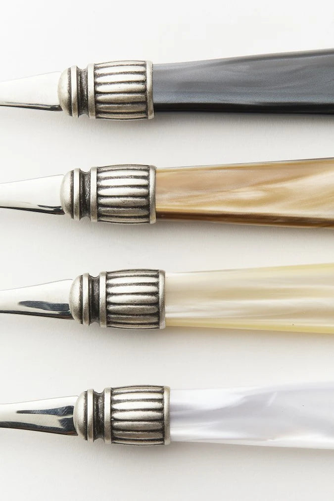 Accentuate your dinnerware and tabletop accessories with a functional and beautiful flatware set. Quality flatware is well worth the investment, for a lifetime of use. Shop our selection of luxury designers to elevate the ambiance of your table setting, with your new flatware. Fine steak knives make a bold statement while being functional, and make a beautiful wedding or men's gift. Who said functional can't be pretty?