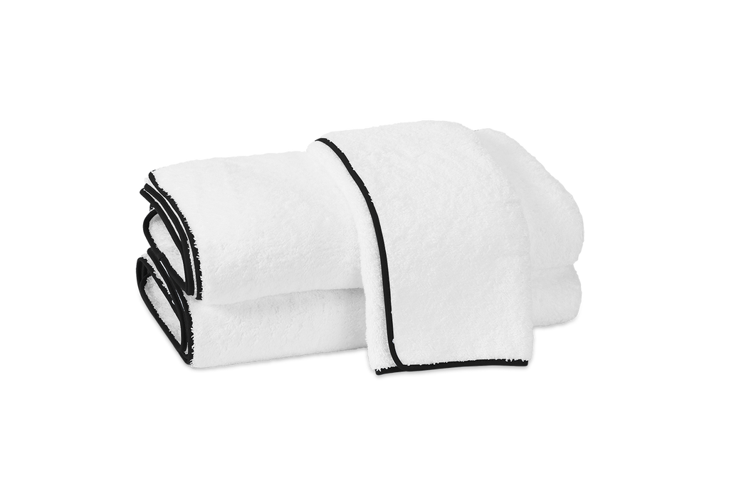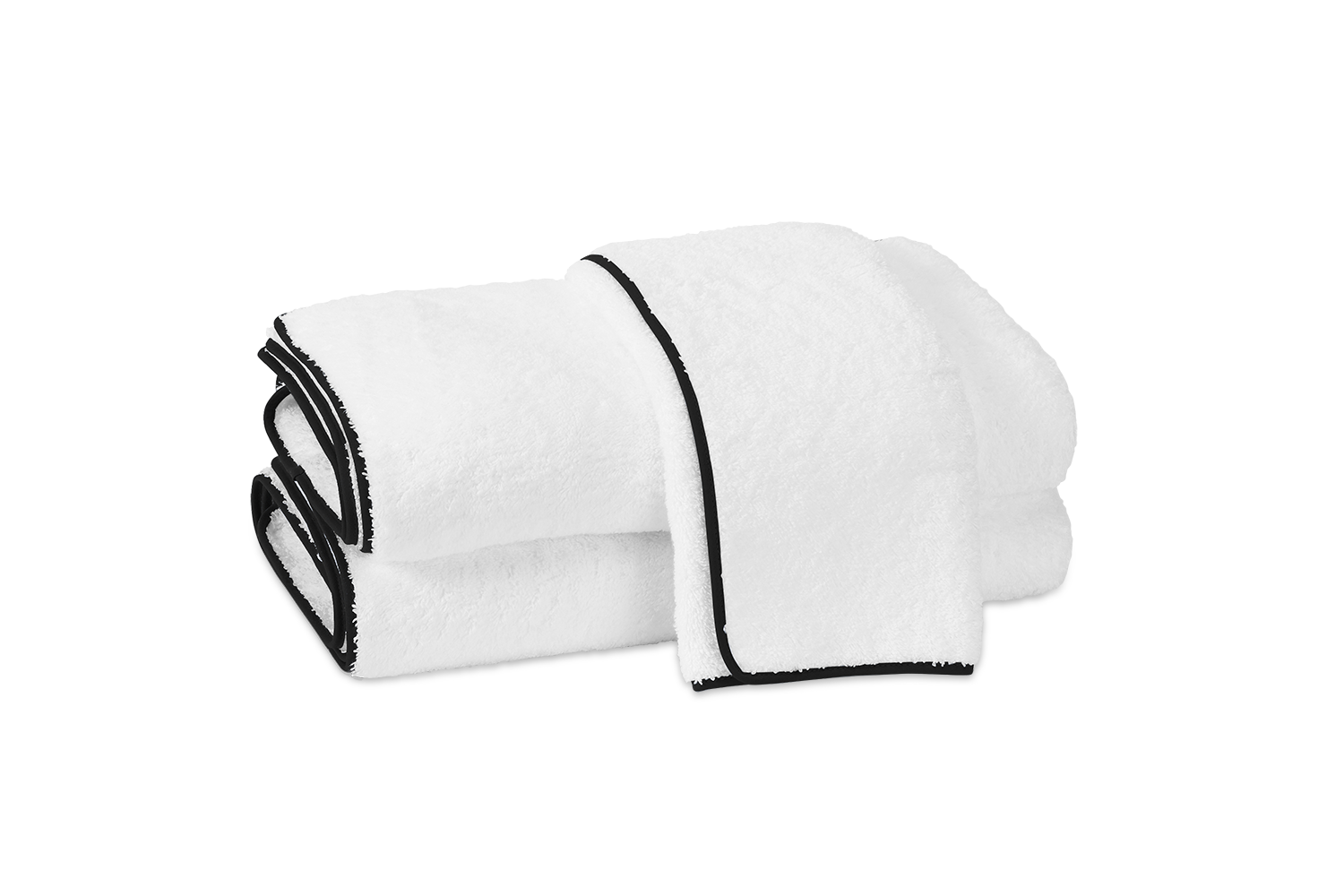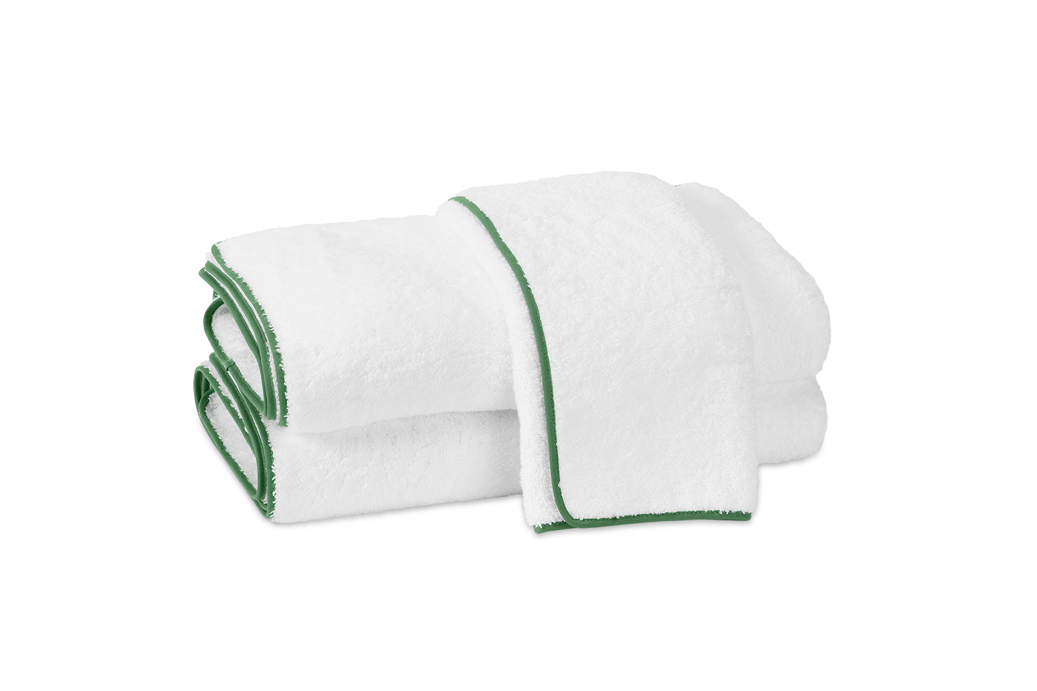 • Long-staple cotton terry bath towels and tub mats with complementing colorful straight edge piping