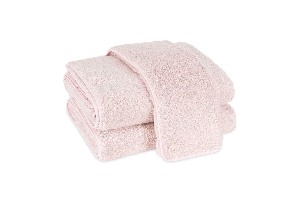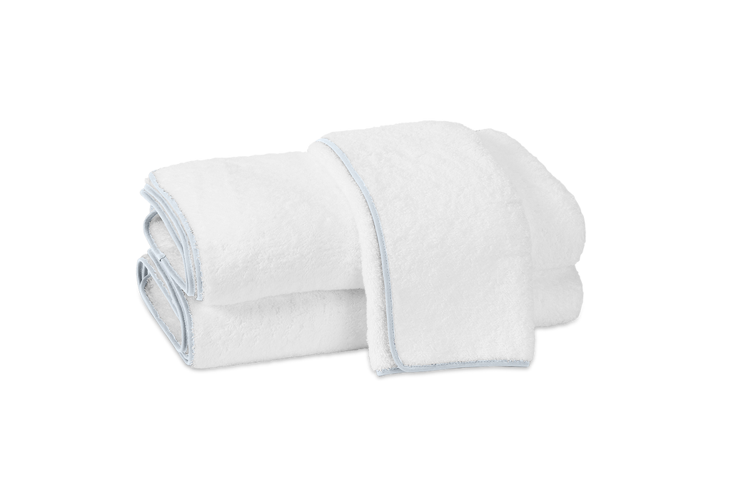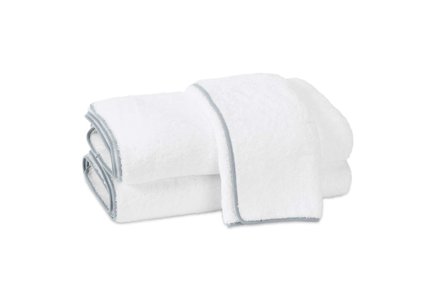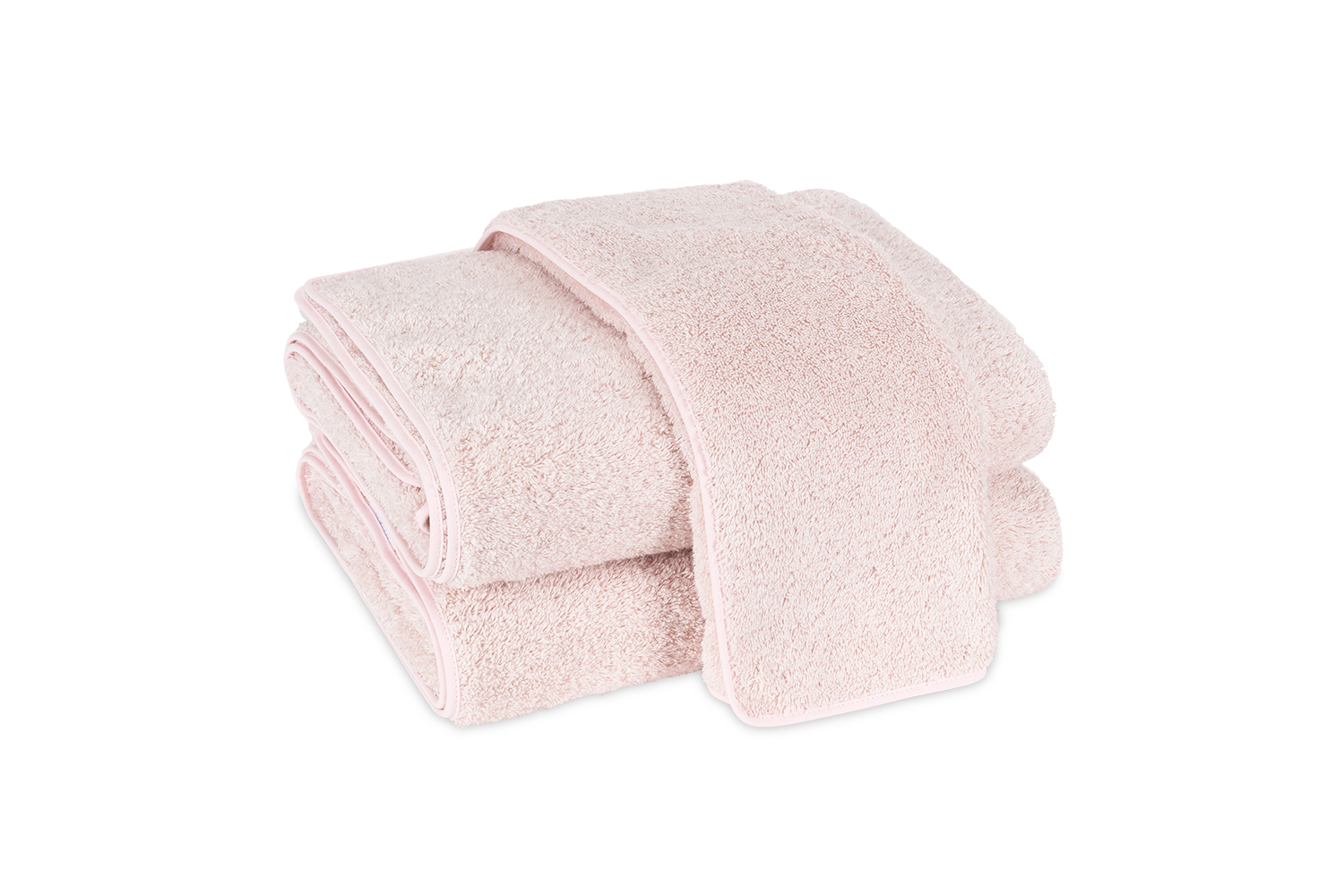 • Long-staple cotton terry bath towels and tub mats with complementing colorful straight edge piping
