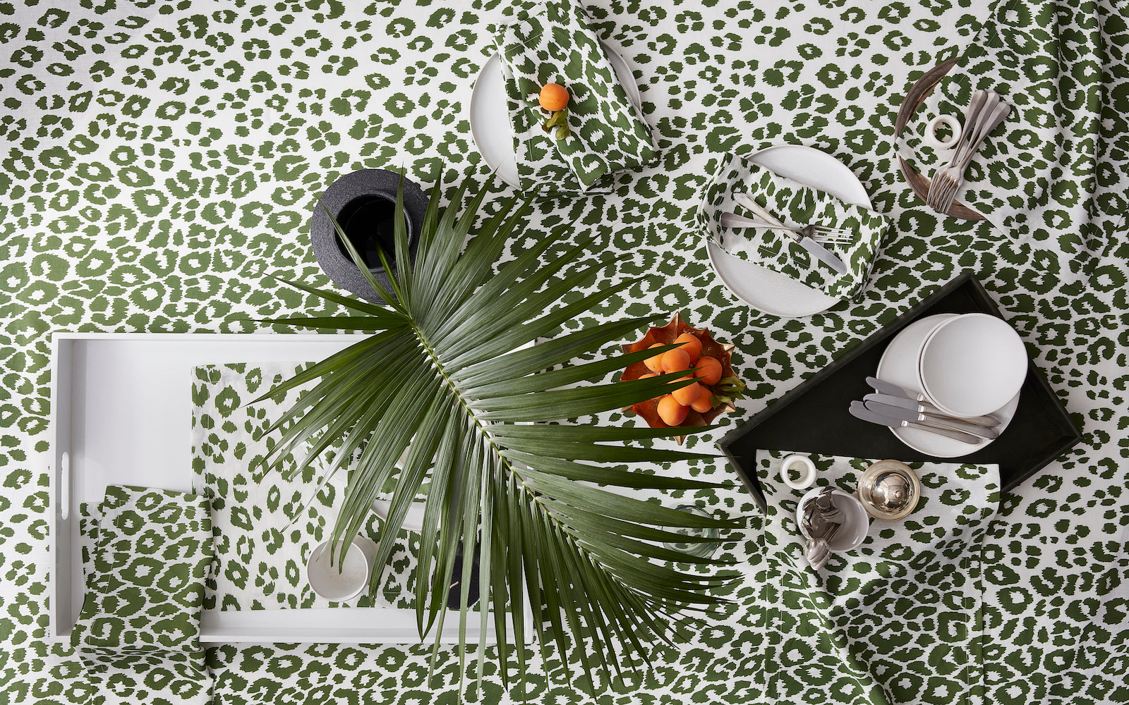 • Schumacher's chic Iconic Leopard print on Matouk's pure printed linen