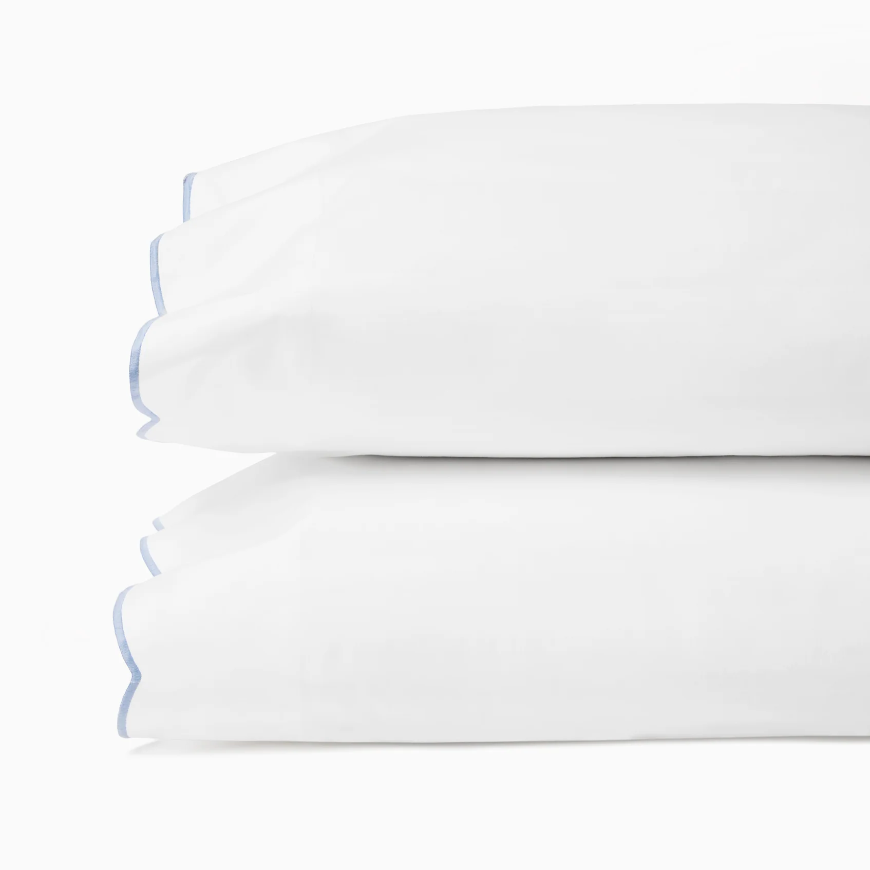 Limana brings a touch of playfulness to the crisp elegance of Italian percale. Inspired by the delicate scalloped edges of heirloom linens, its embroidered border curves gently around the bed, adding softness without fuss. Made from long-staple cotton, Limana feels both nostalgic and fresh; a quiet gesture of design that turns everyday bedding into something a little more special.