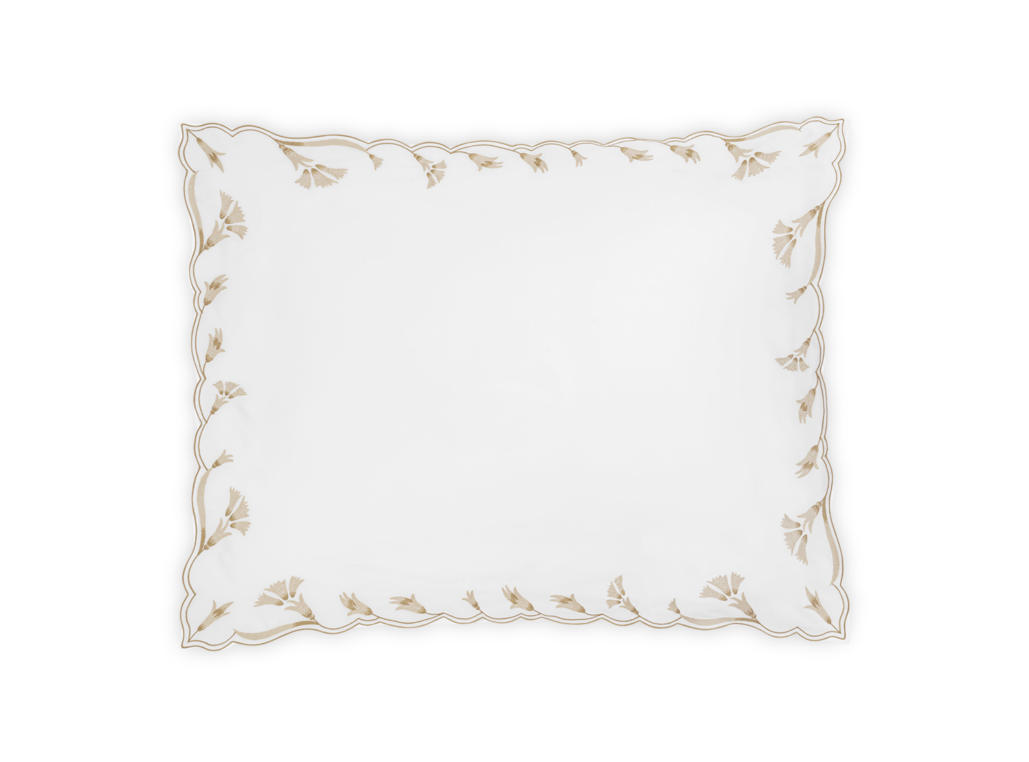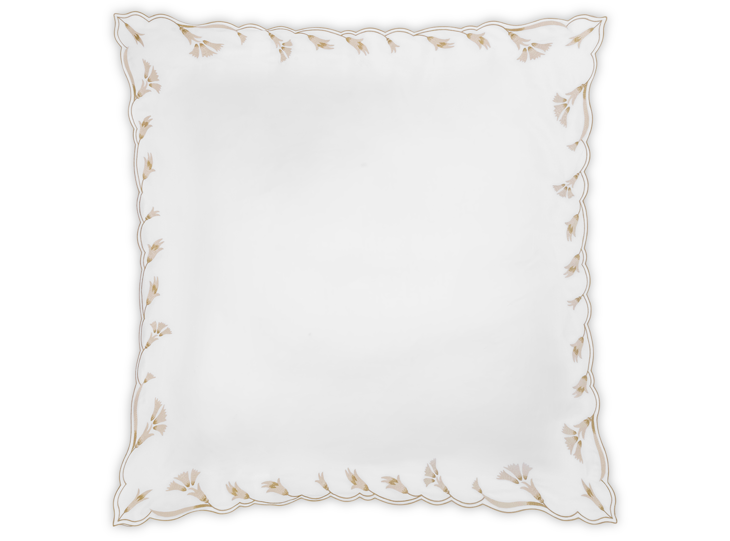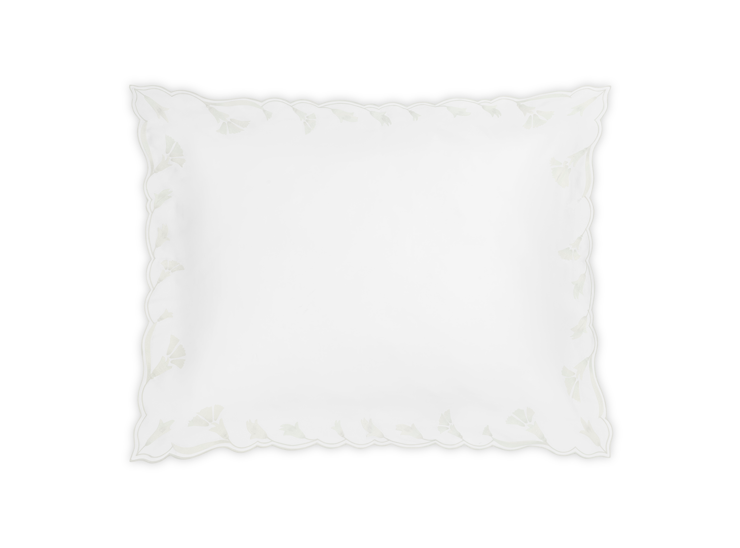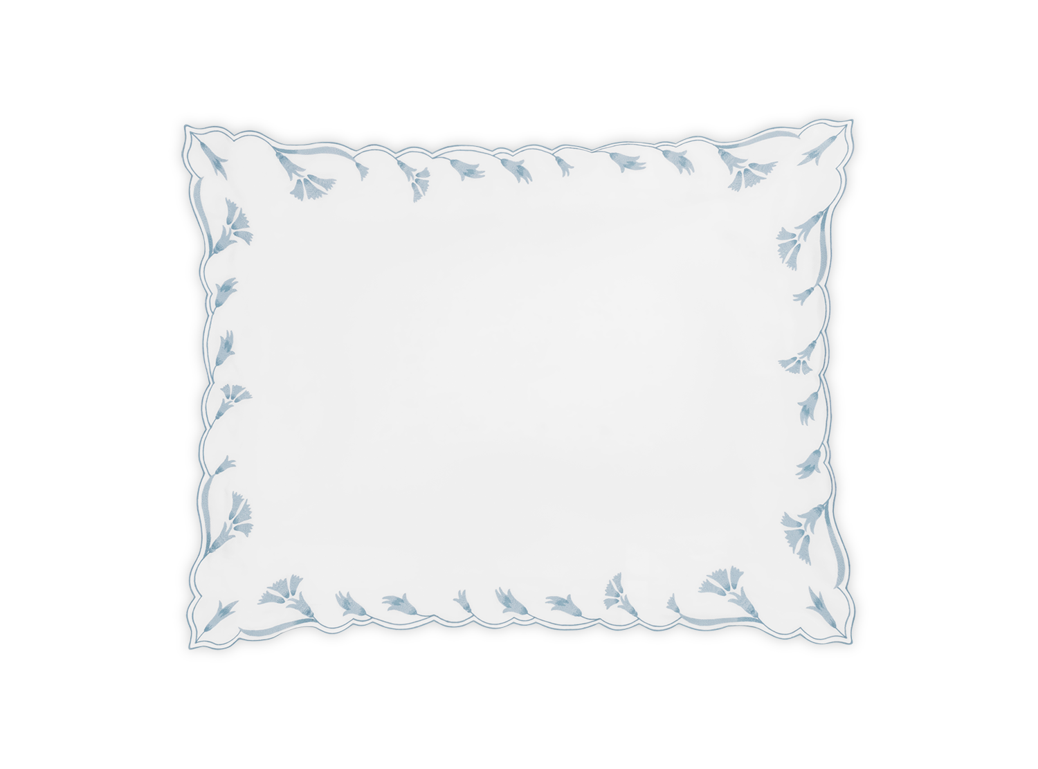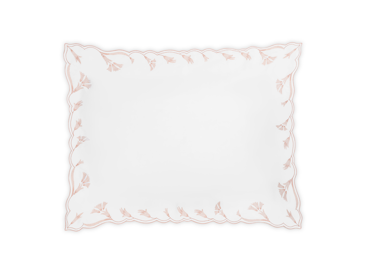 This delicate embroidered collection on luminous Nocturne sateen features elongated, scalloped florals whose tonal shifts lend depth and dimension to this classic look. Without any visible stitching, the trim drapes seamlessly—offering a sense of softness and sophistication to the bed.