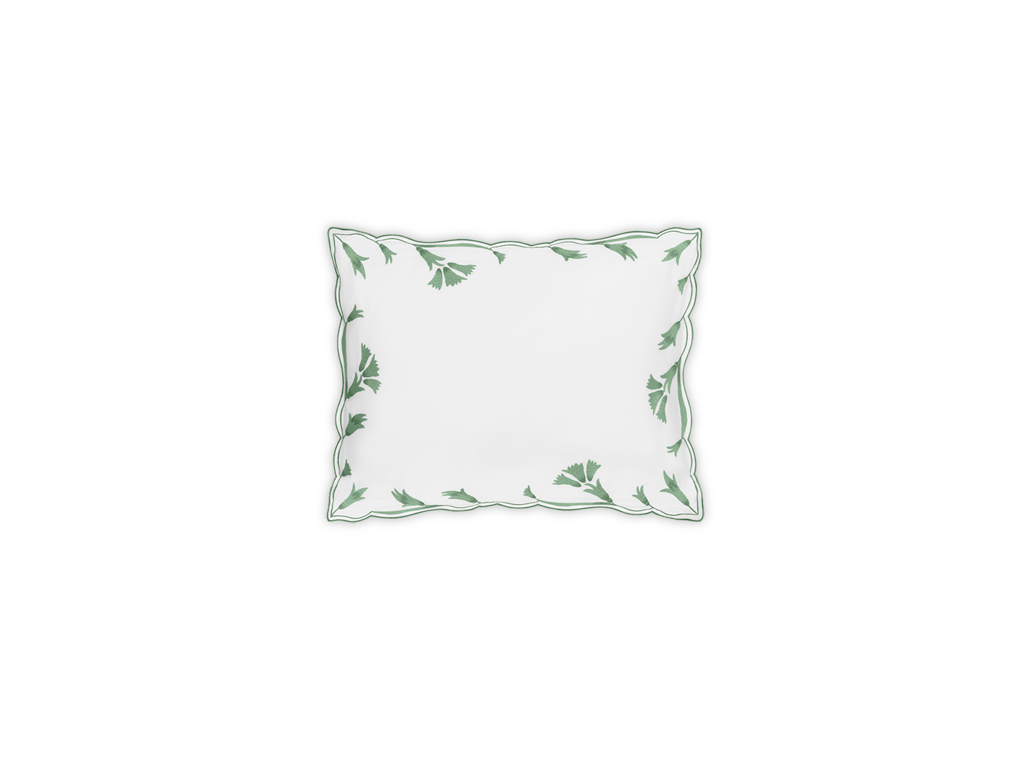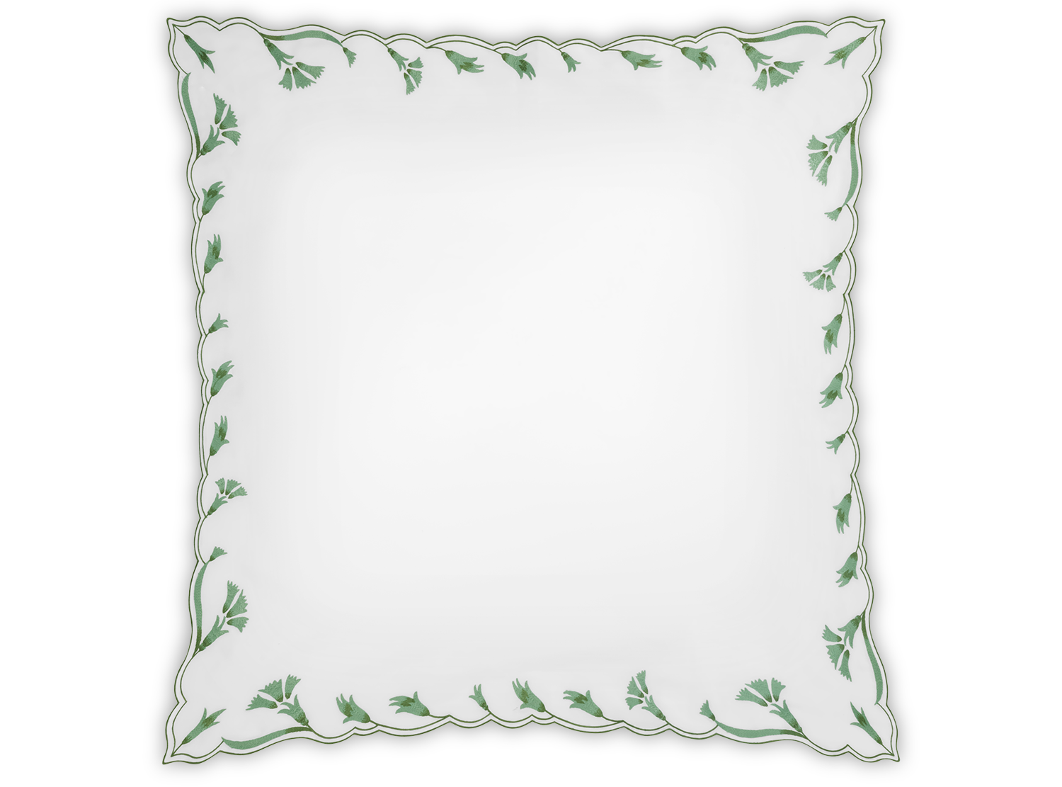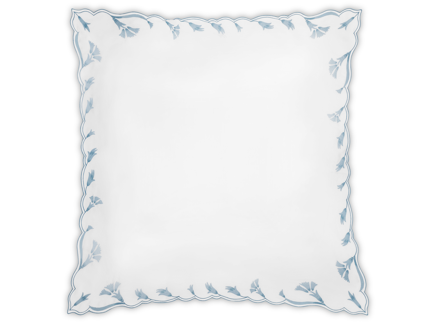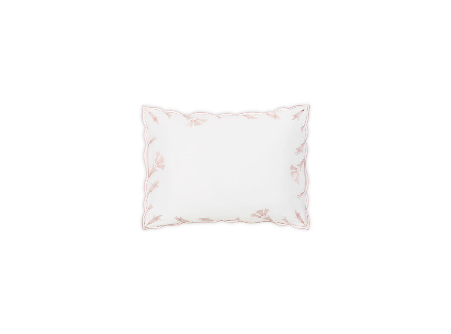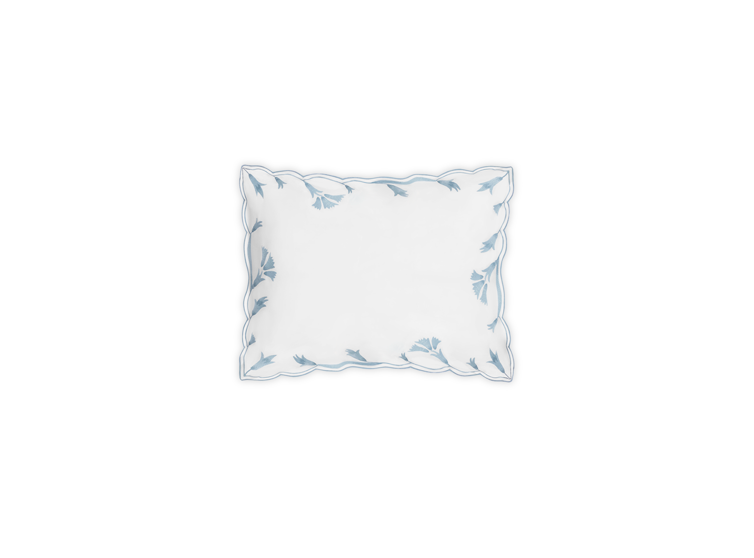 This delicate embroidered collection on luminous Nocturne sateen features elongated, scalloped florals whose tonal shifts lend depth and dimension to this classic look. Without any visible stitching, the trim drapes seamlessly—offering a sense of softness and sophistication to the bed.