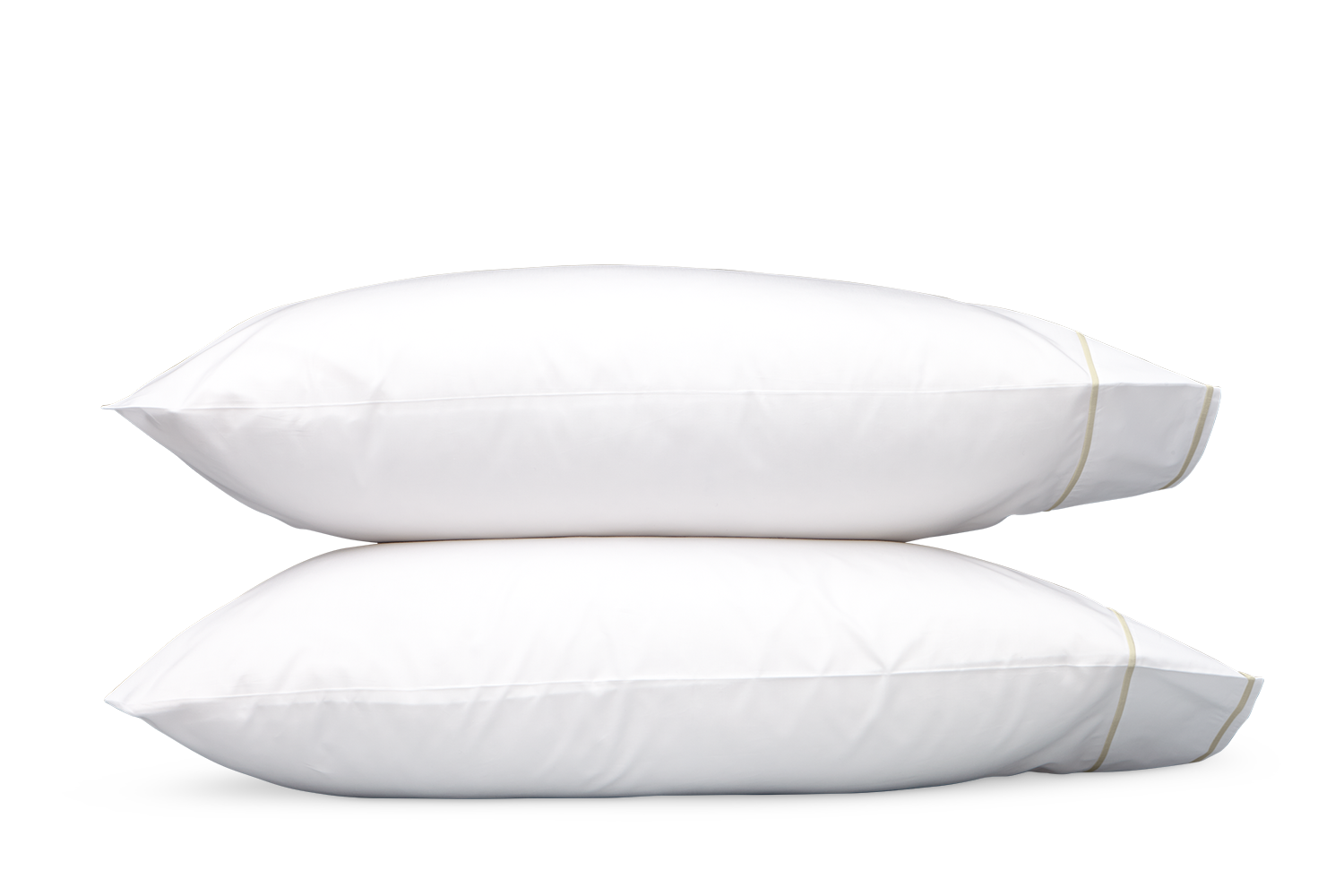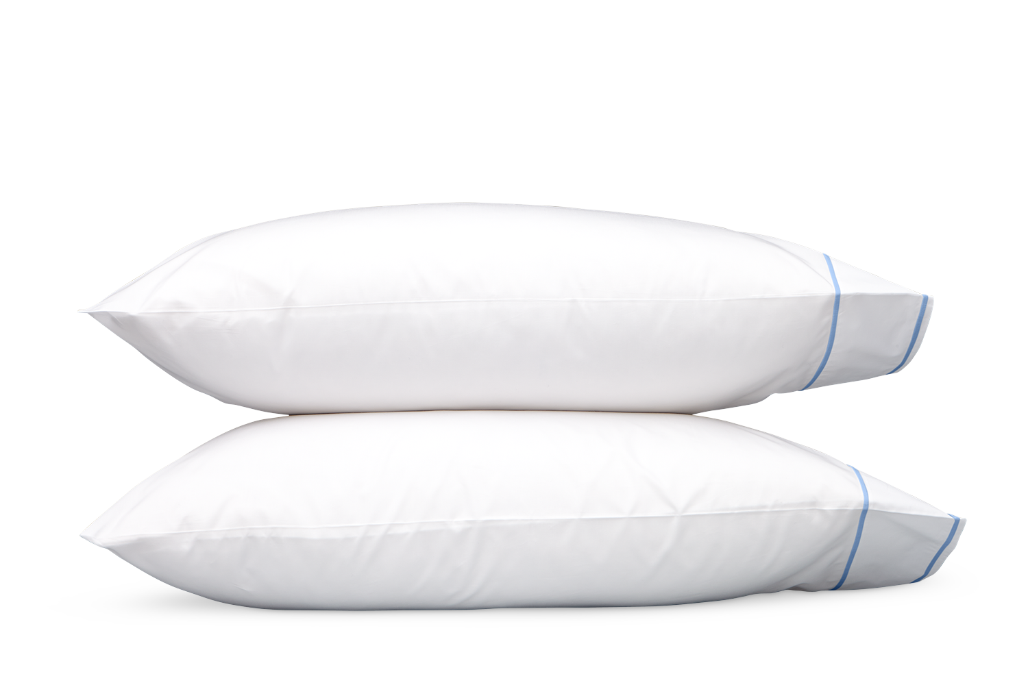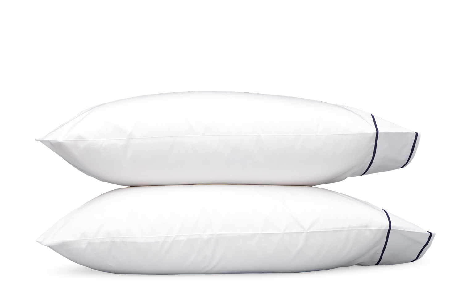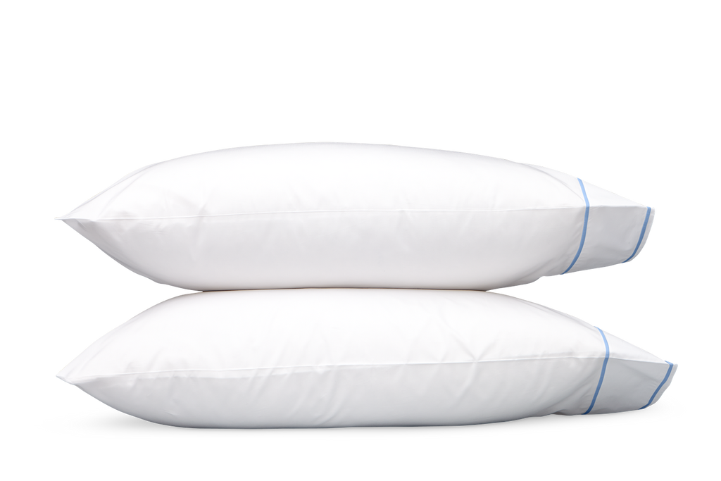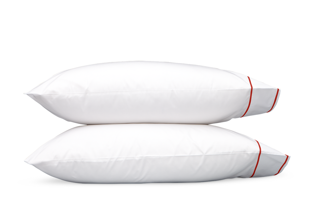 White Luca percale finished with two rows of satin stitch threads in choice of colors to complement your bed
