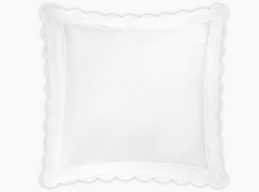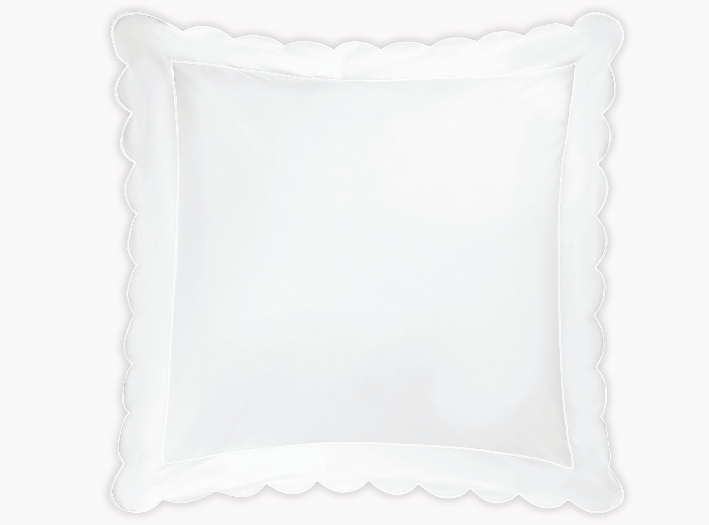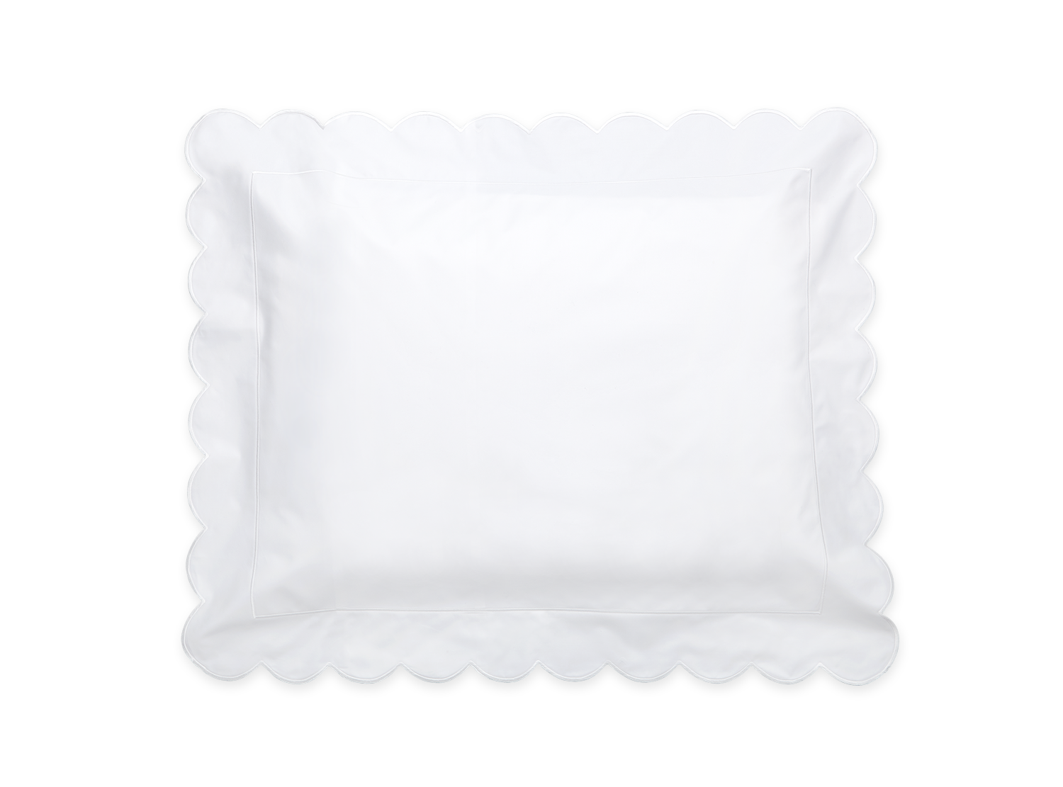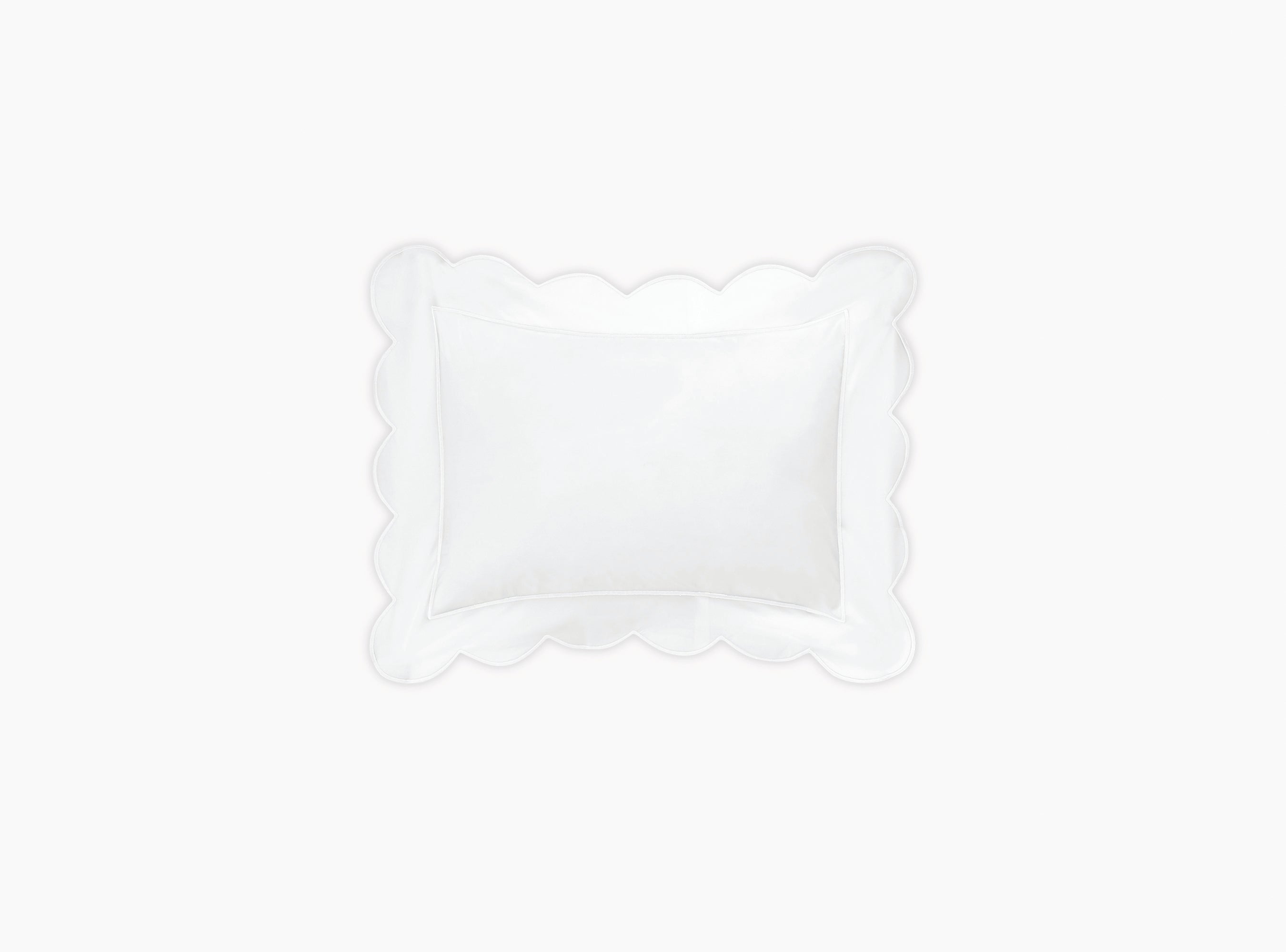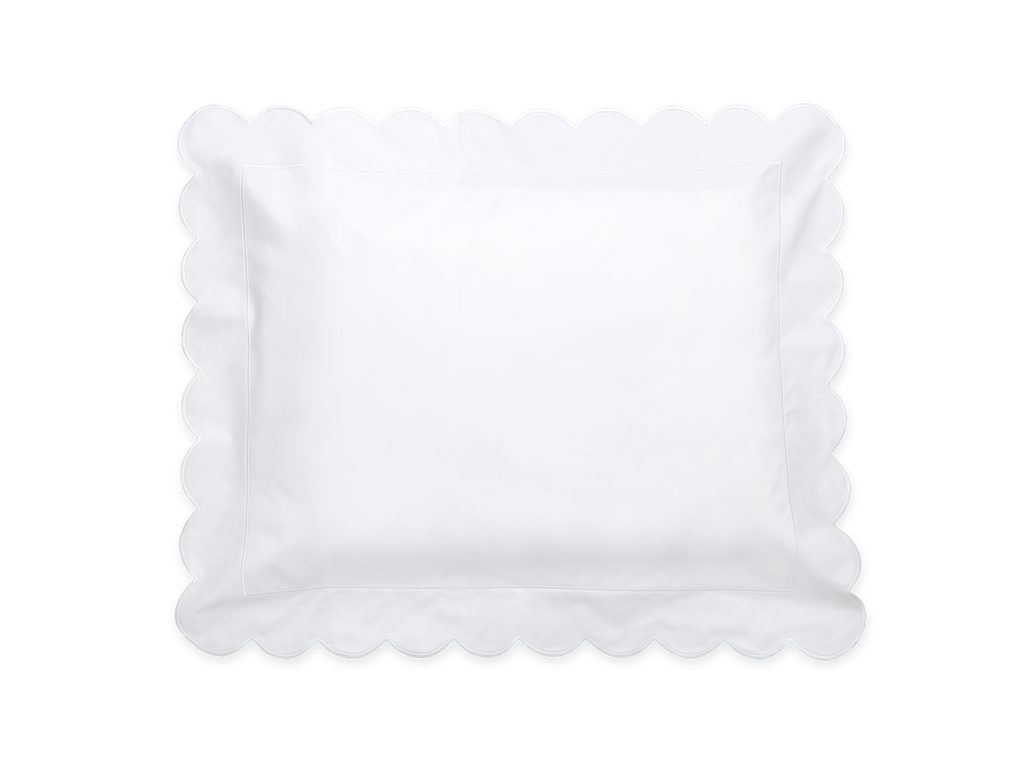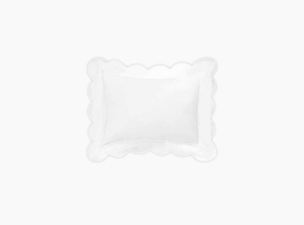 Equal parts feminine and tailored, crisp white Luca percale is adorned with an oversize scallop detail and subtle satin stitch
