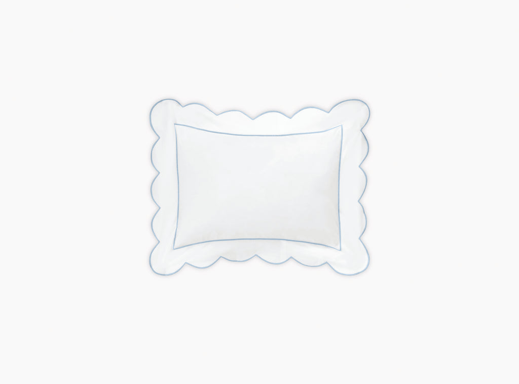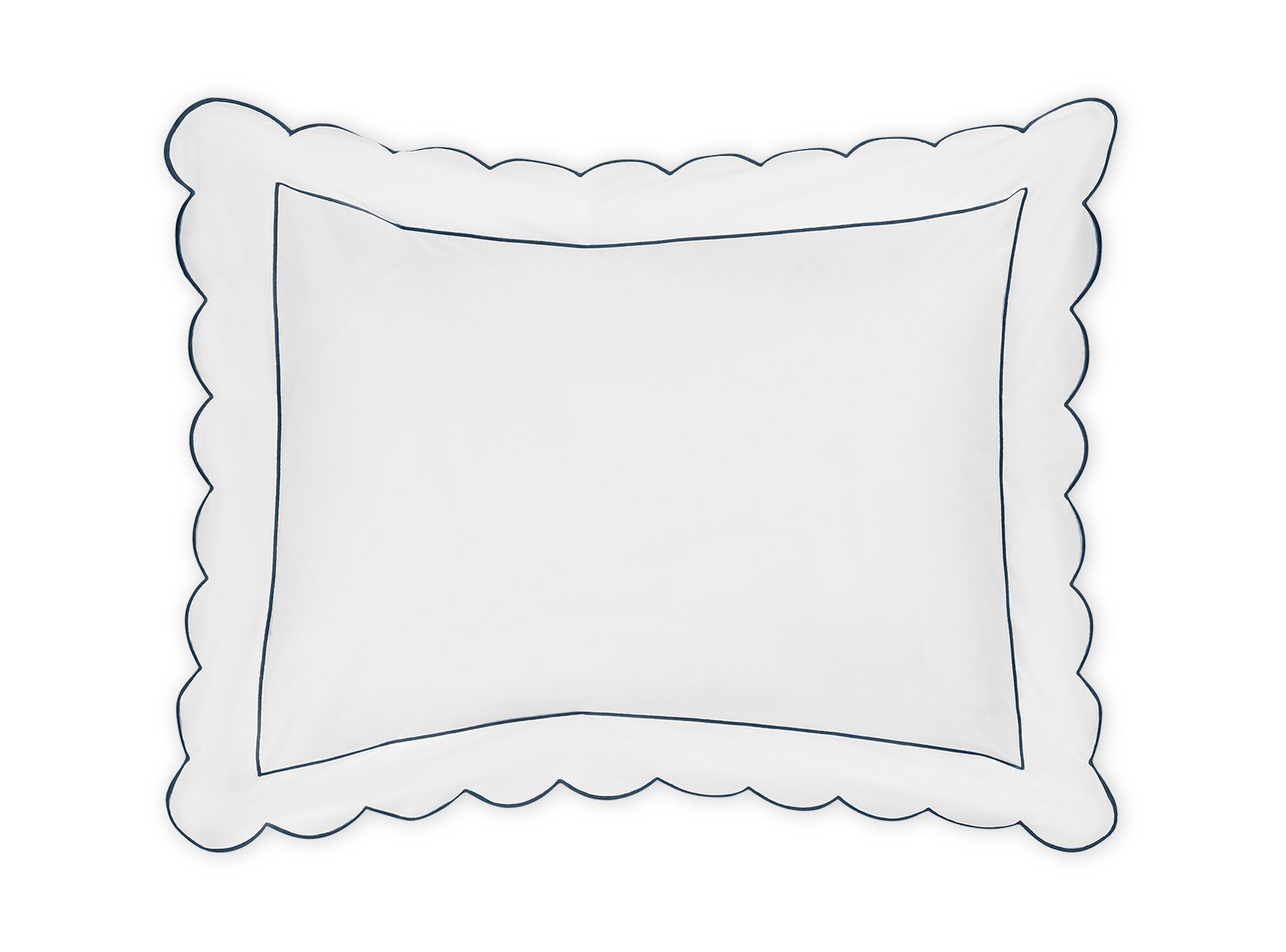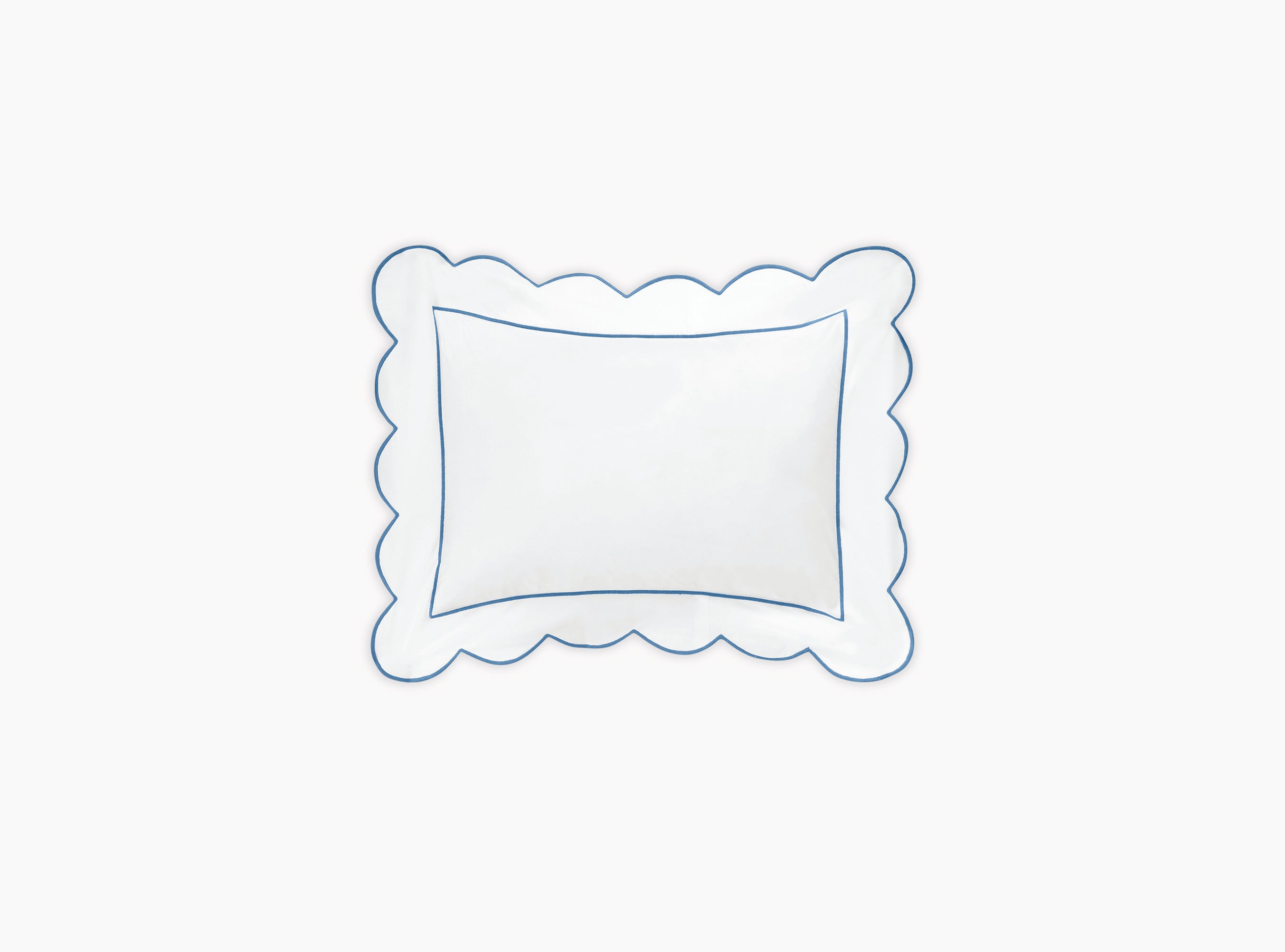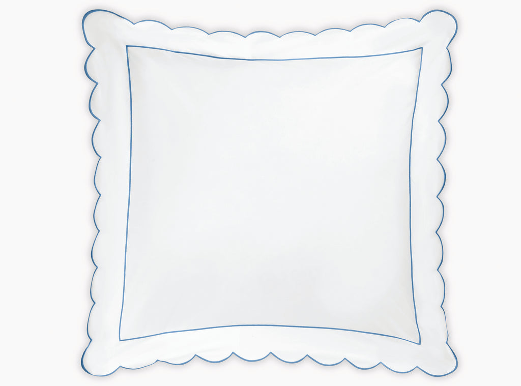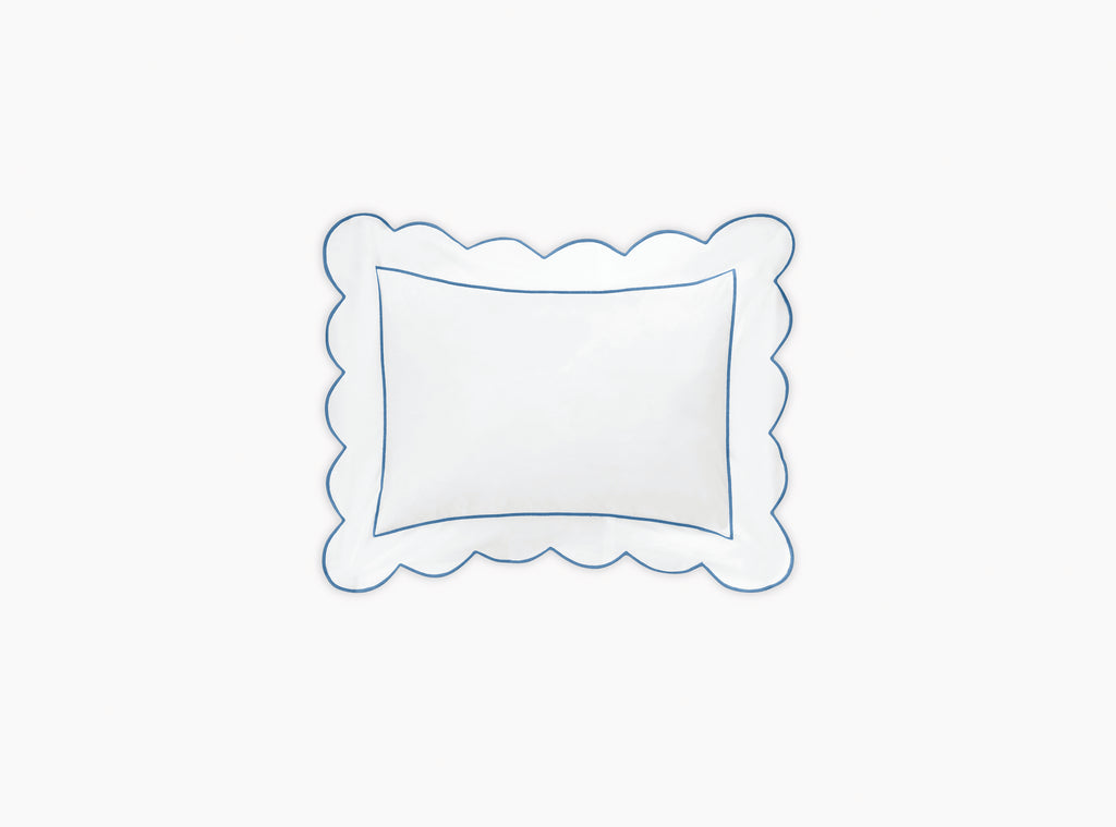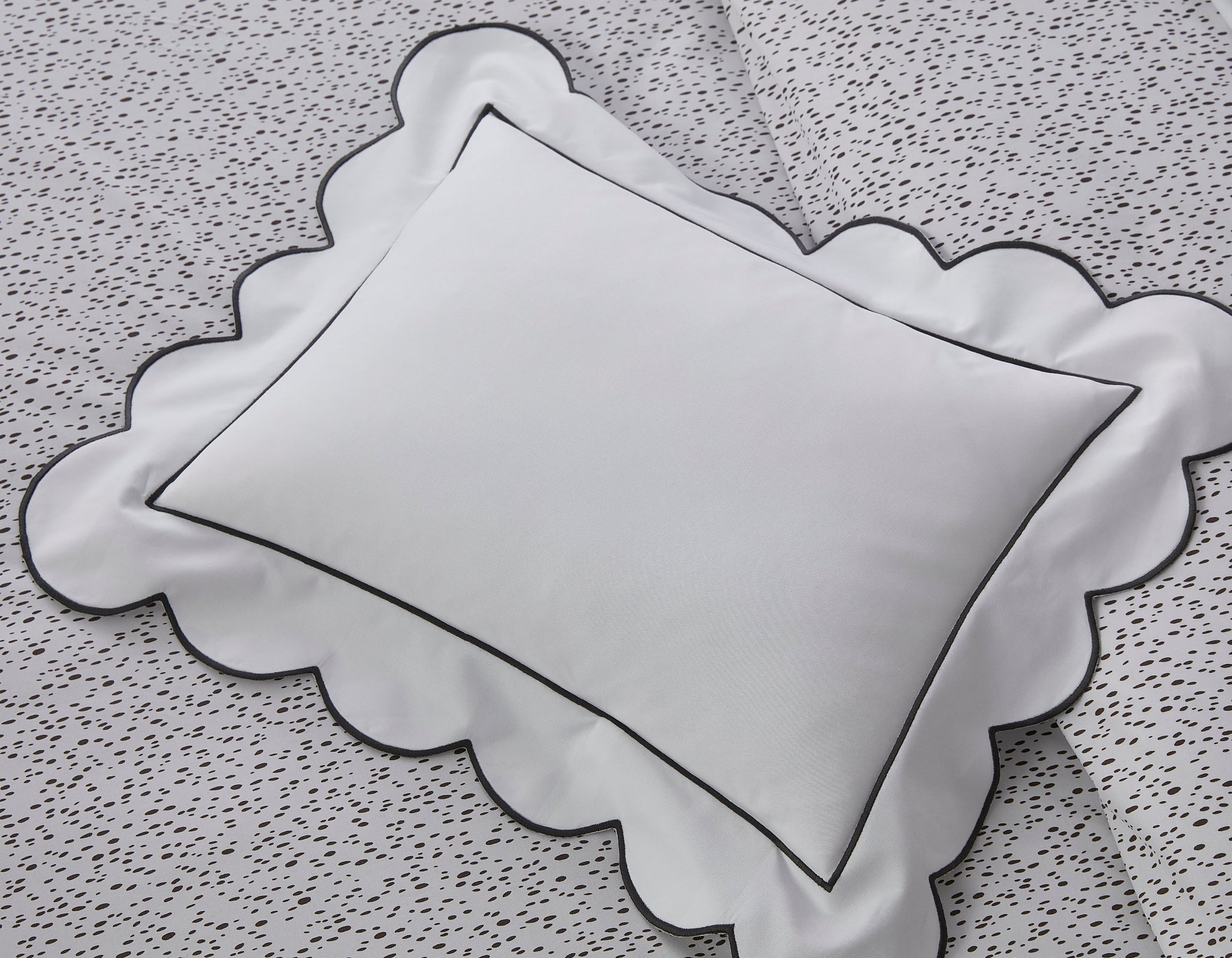 Equal parts feminine and tailored, crisp white Luca percale is adorned with an oversize scallop detail and subtle satin stitch