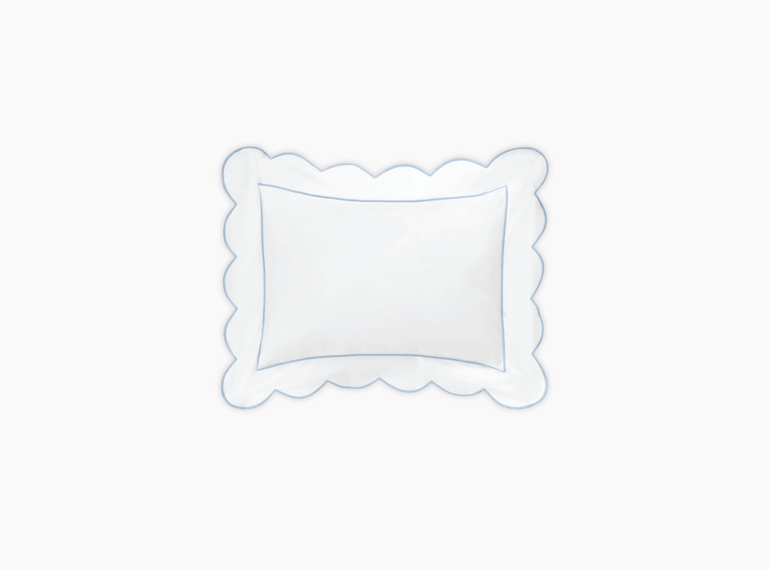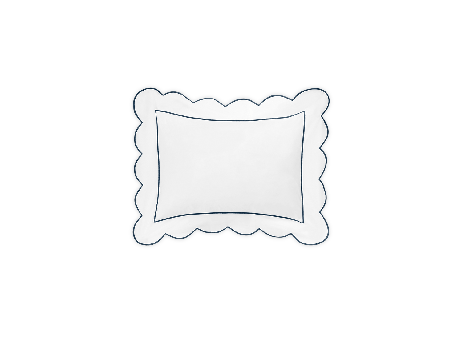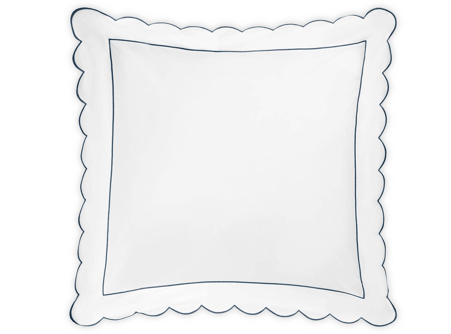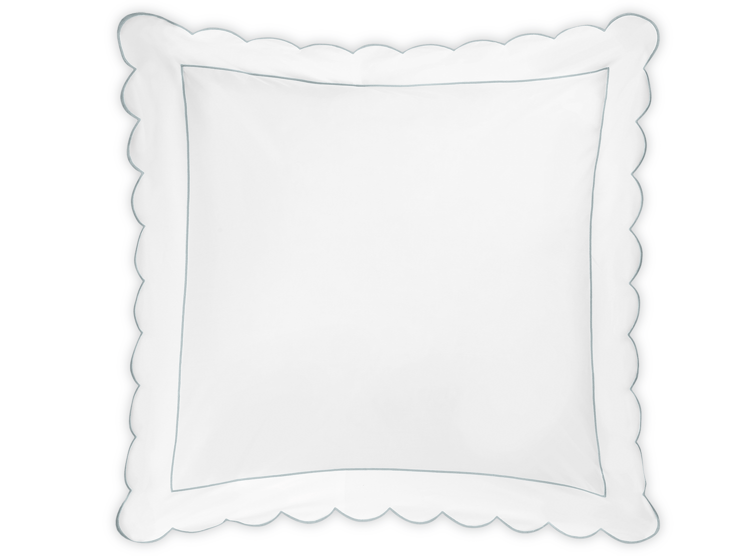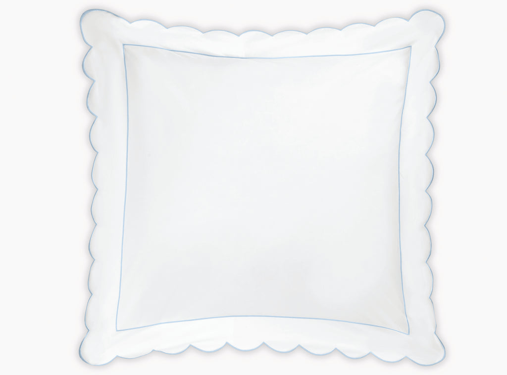 Equal parts feminine and tailored, crisp white Luca percale is adorned with an oversize scallop detail and subtle satin stitch