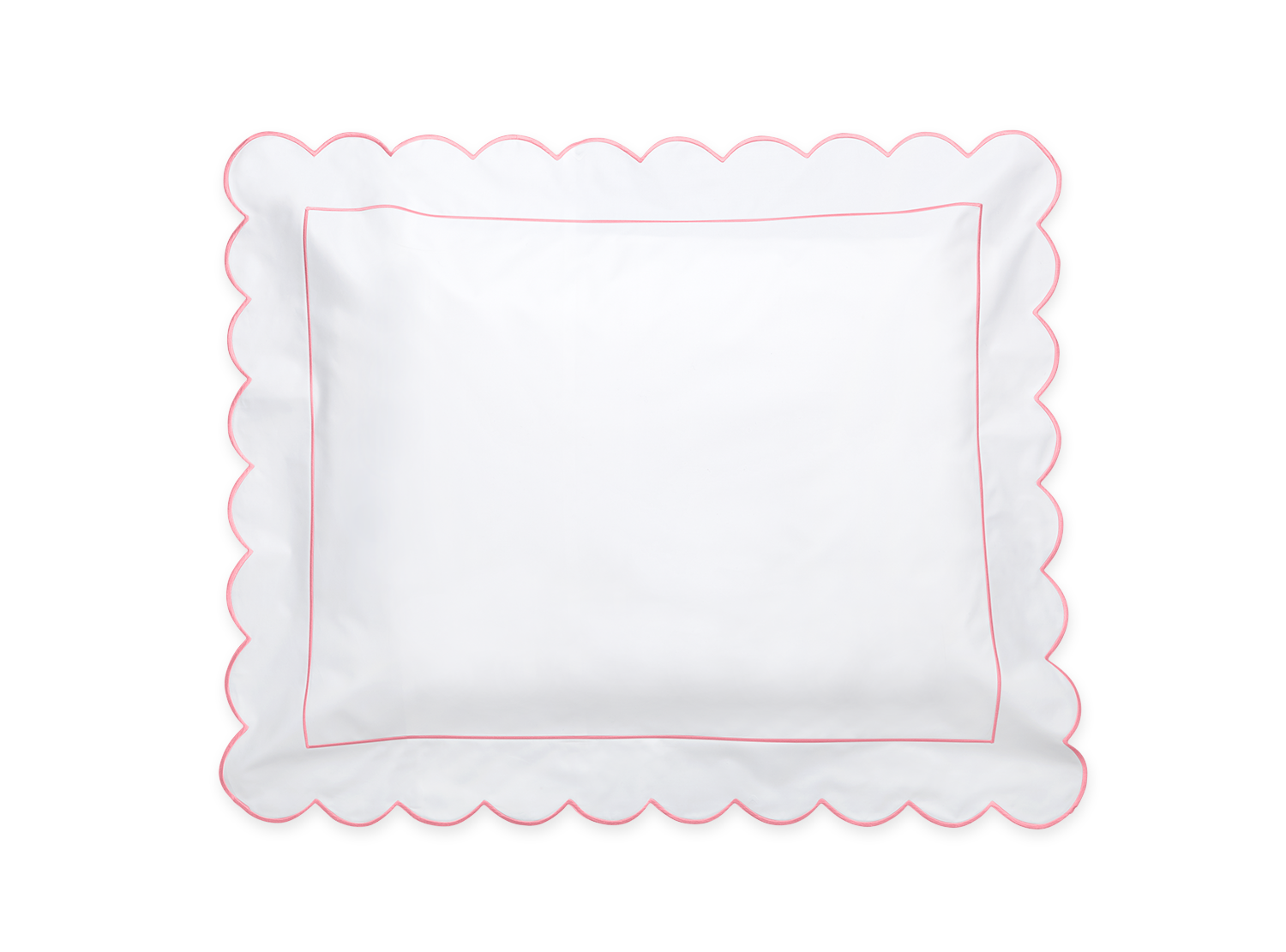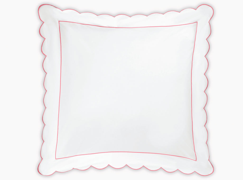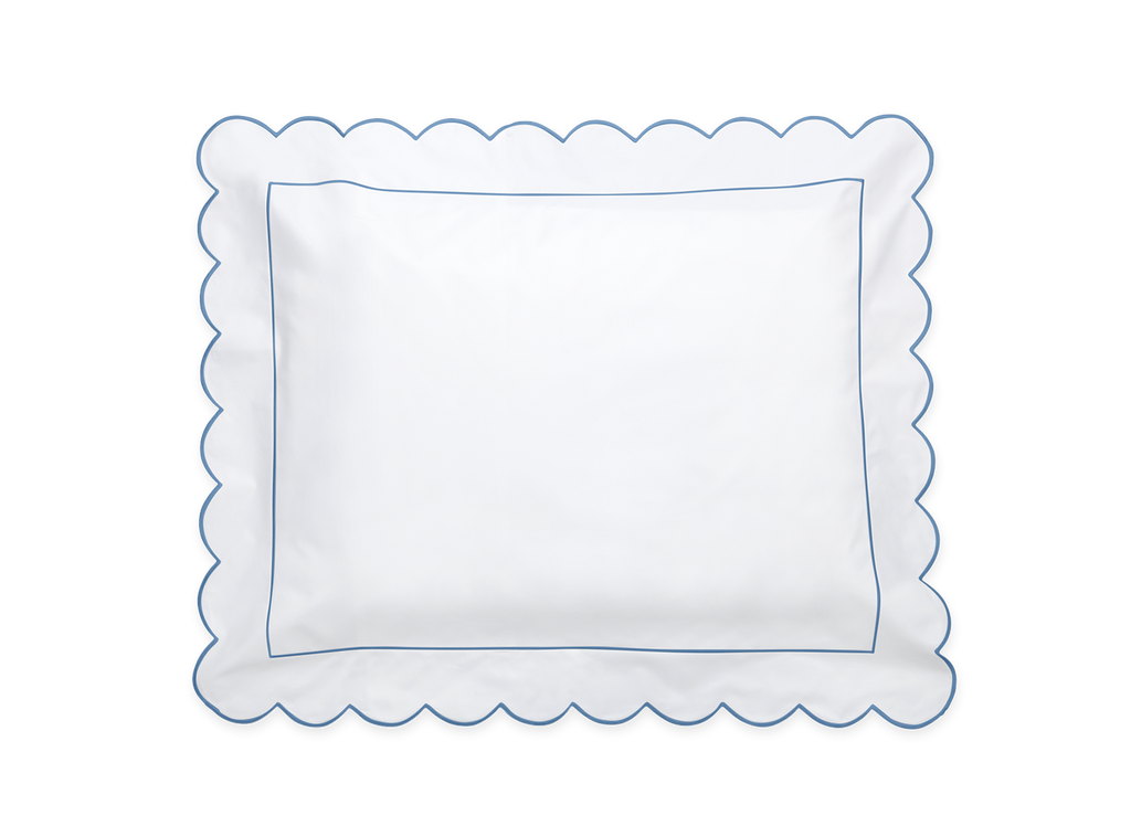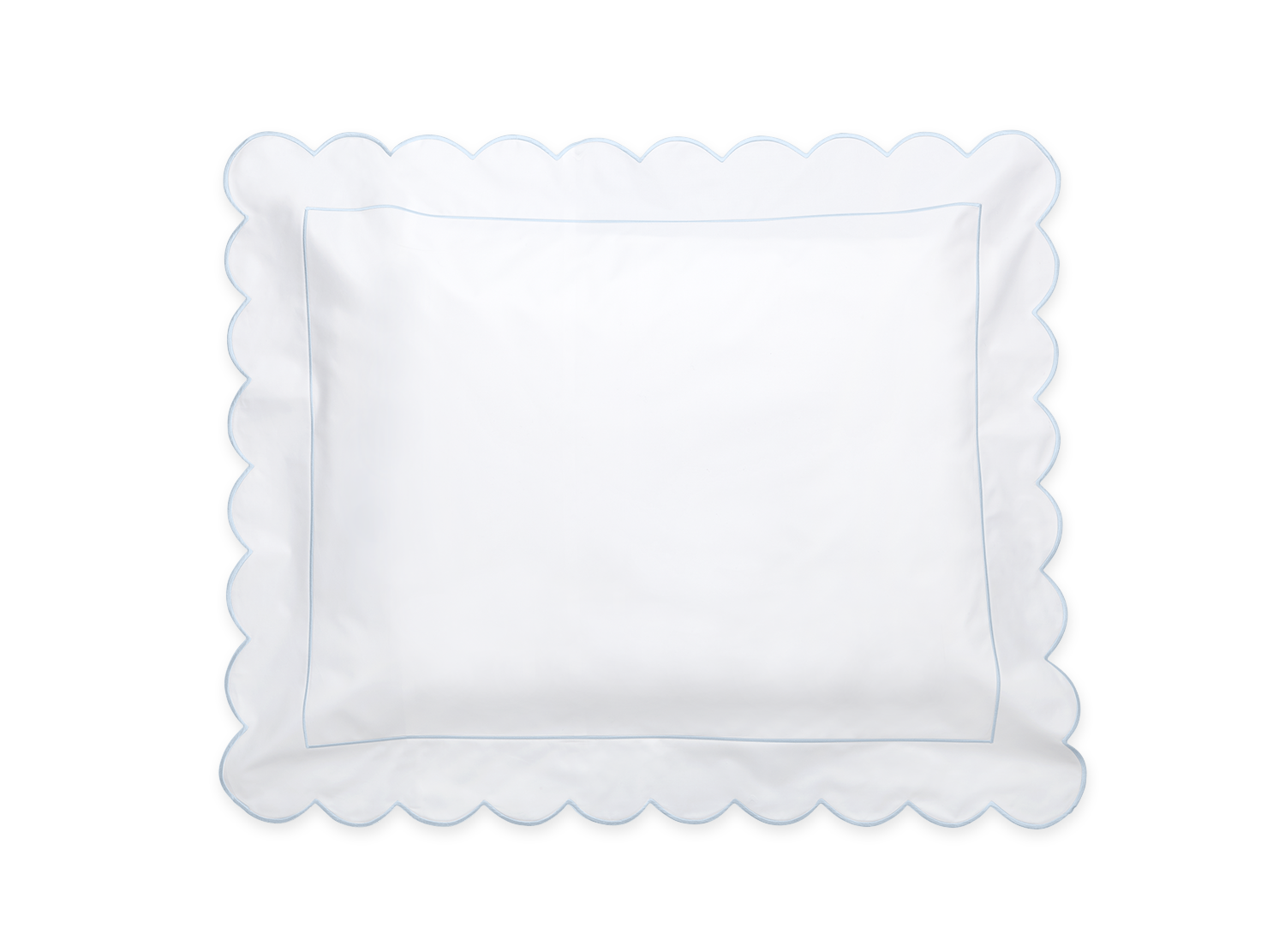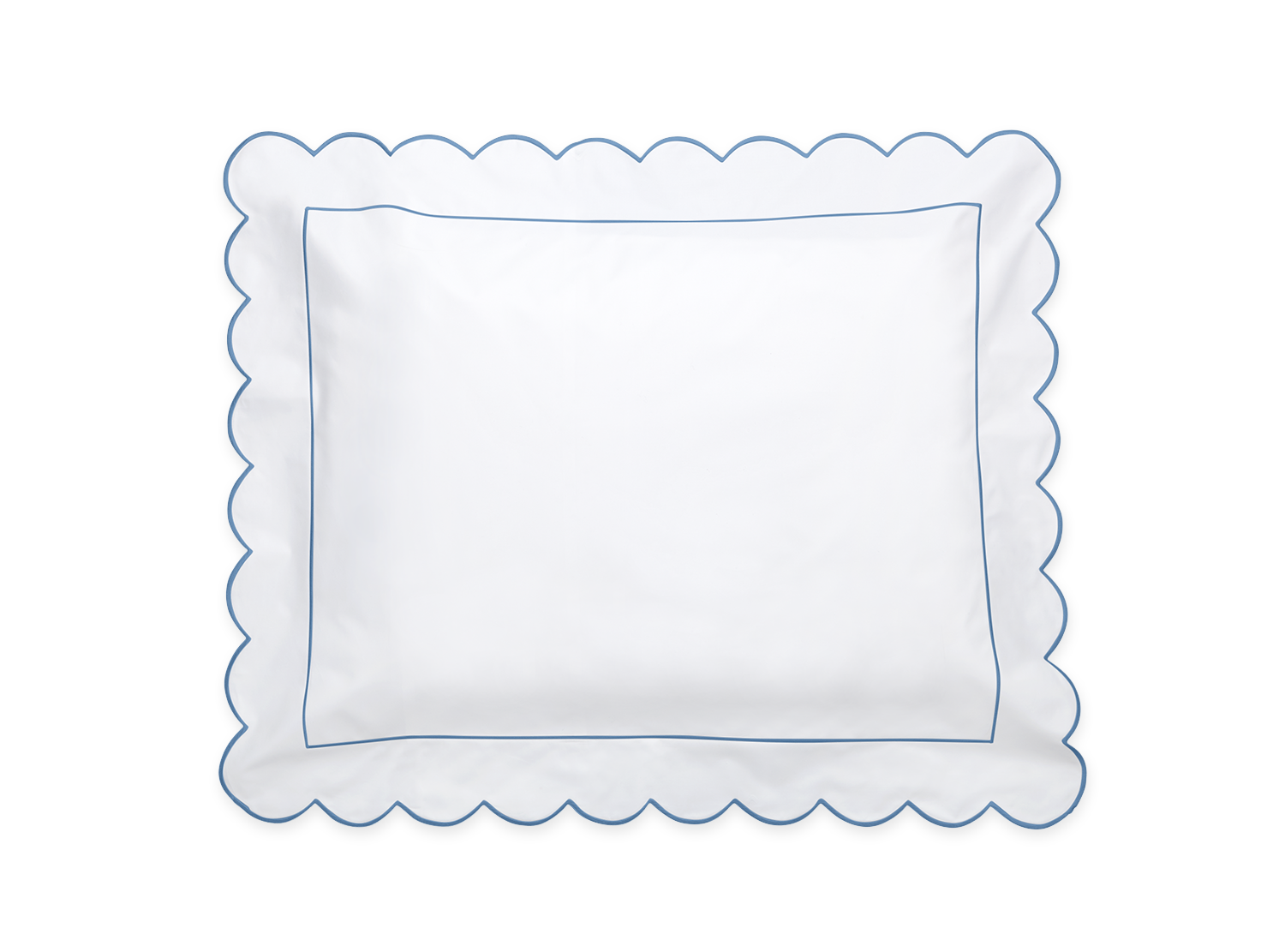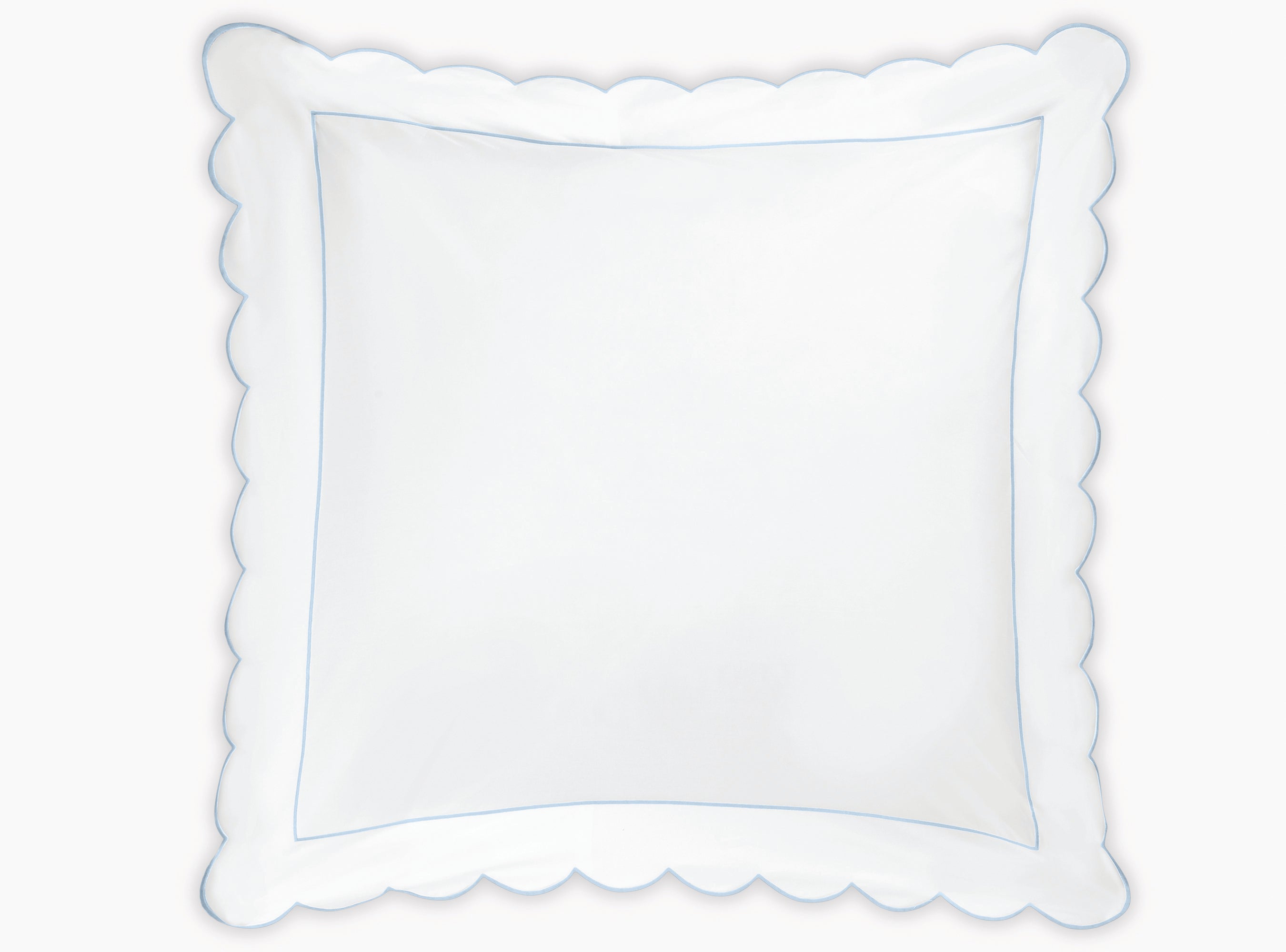 Equal parts feminine and tailored, crisp white Luca percale is adorned with an oversize scallop detail and subtle satin stitch
