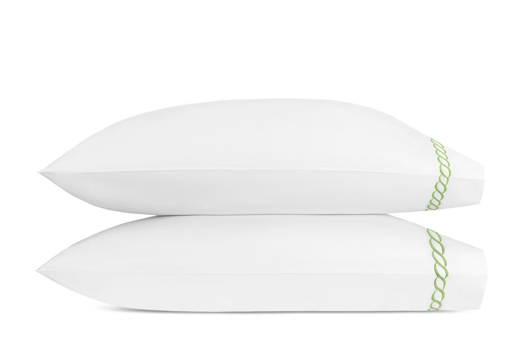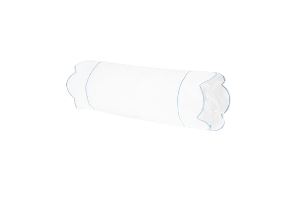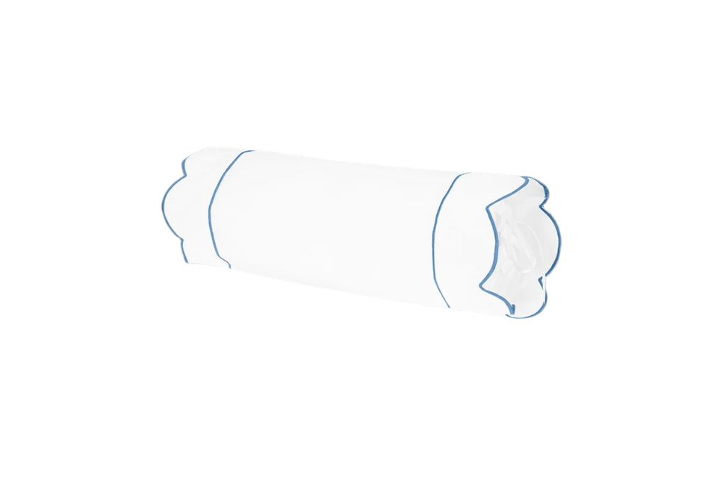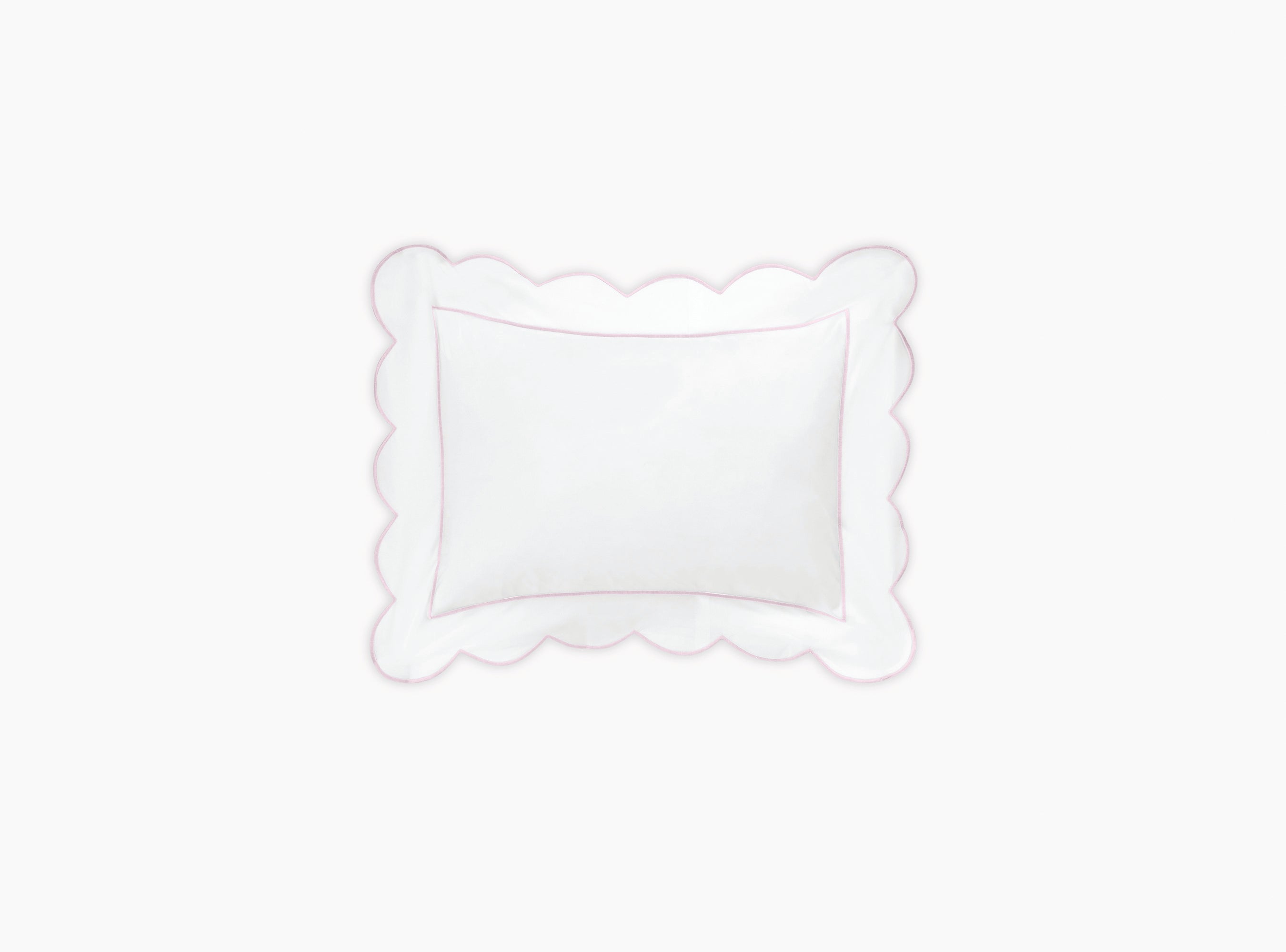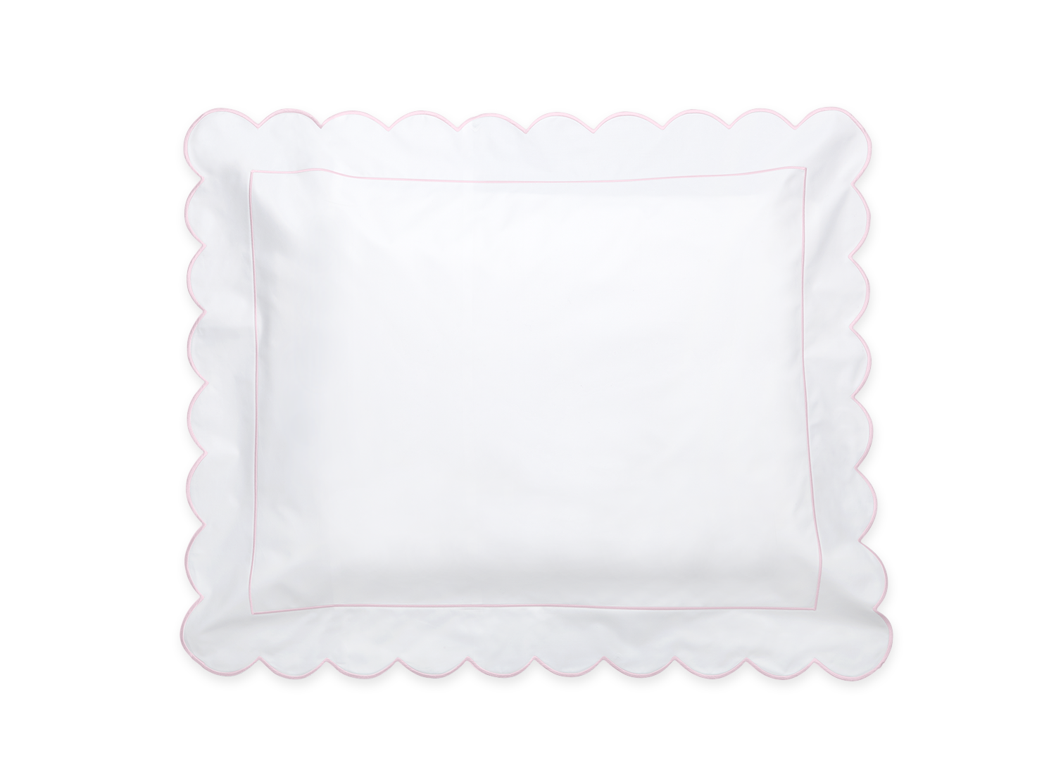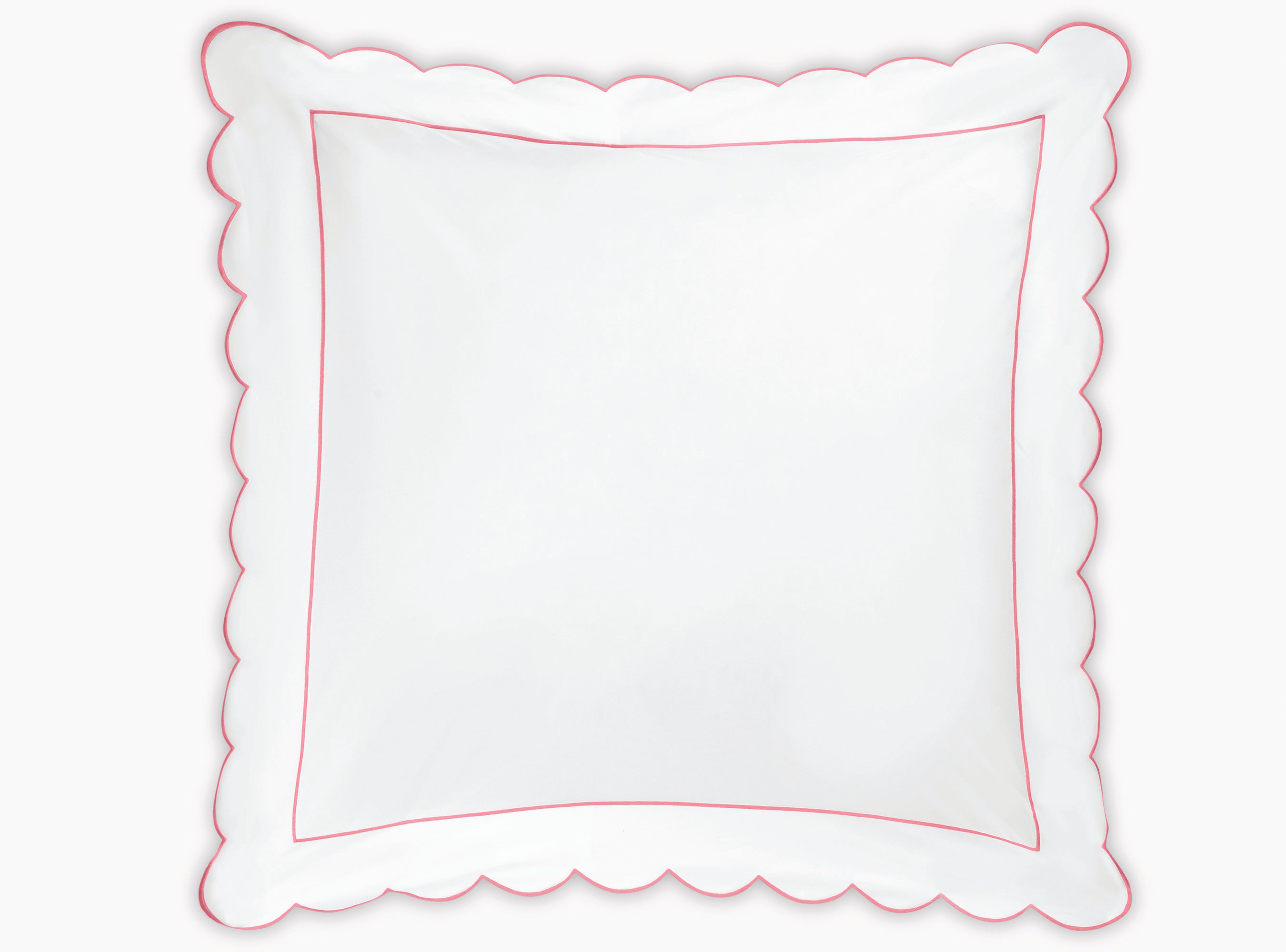 Equal parts feminine and tailored, crisp white Luca percale is adorned with an oversize scallop detail and subtle satin stitch