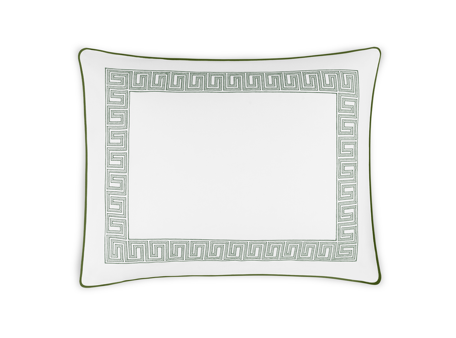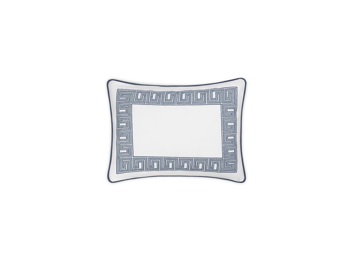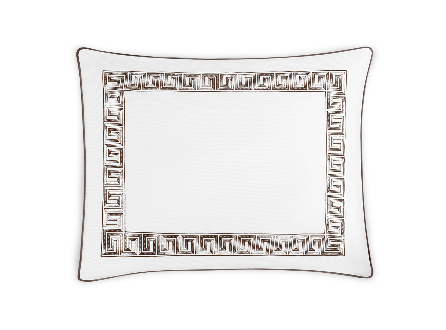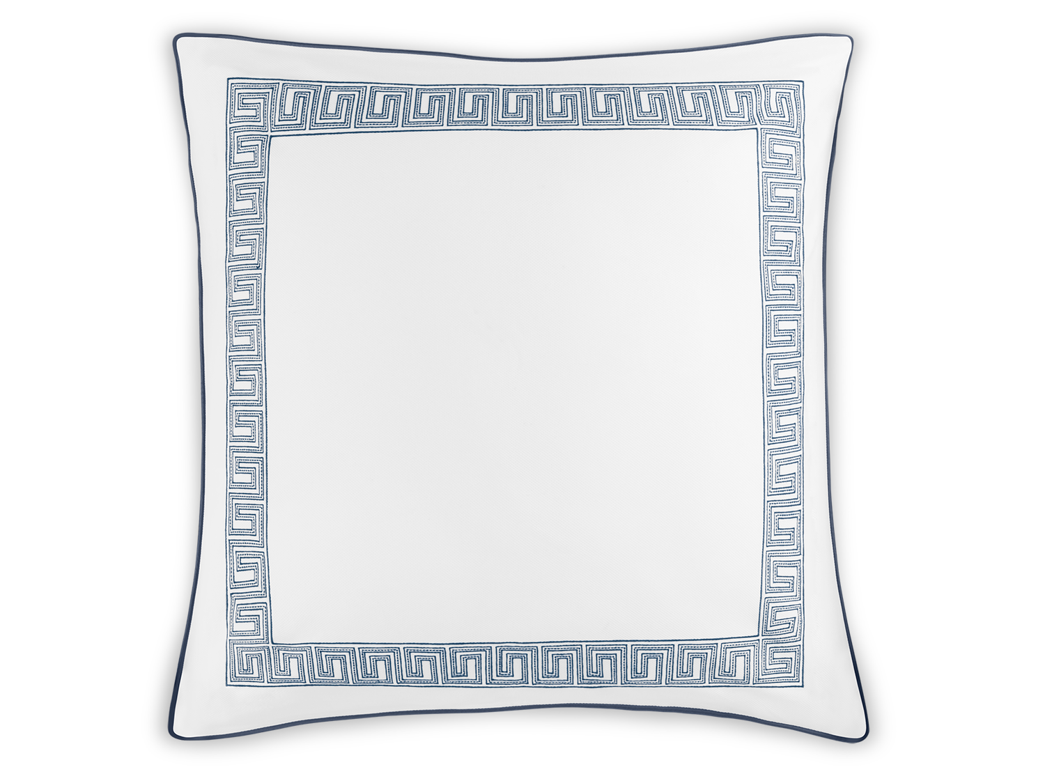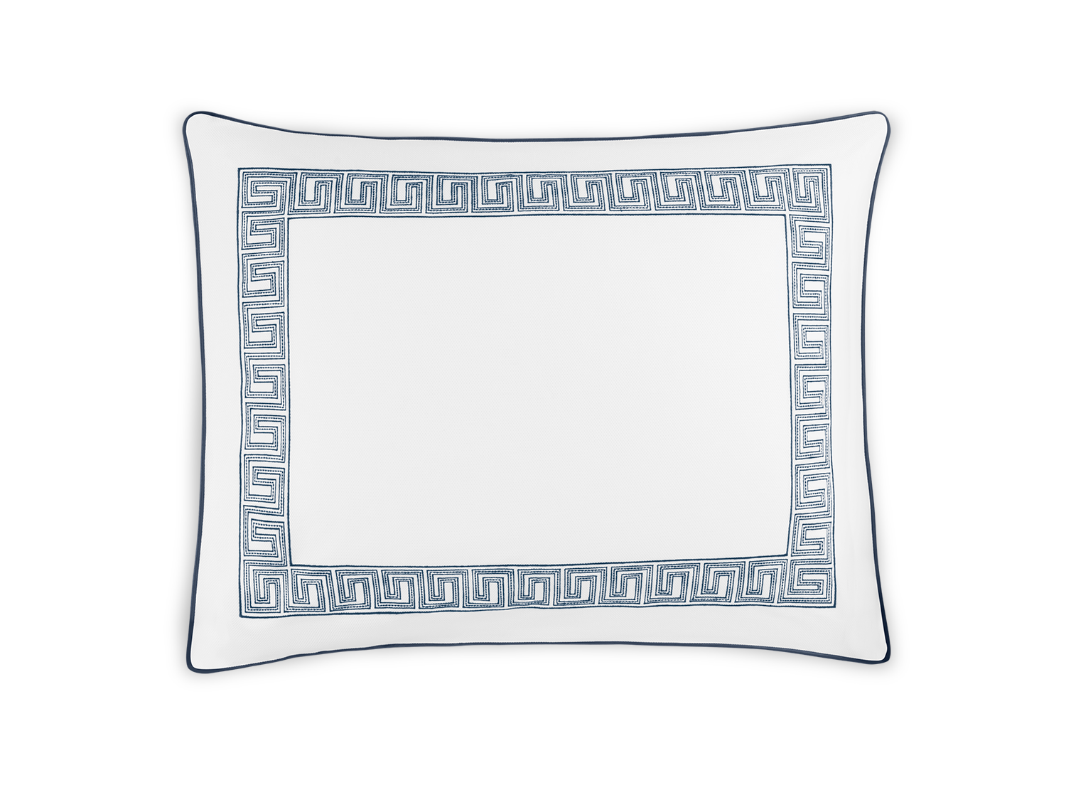 Inspired by an intricately beaded Schumacher tape, Matouk's boldly embroidered Ophelia collection embodies a traditional Greek key pattern with a bespoke sensibility. Now available on Matouk's signature Camilla Pique with a coordinating corded edge in Nocturne sateen, it’s a playful, exuberant take on a traditional motif.