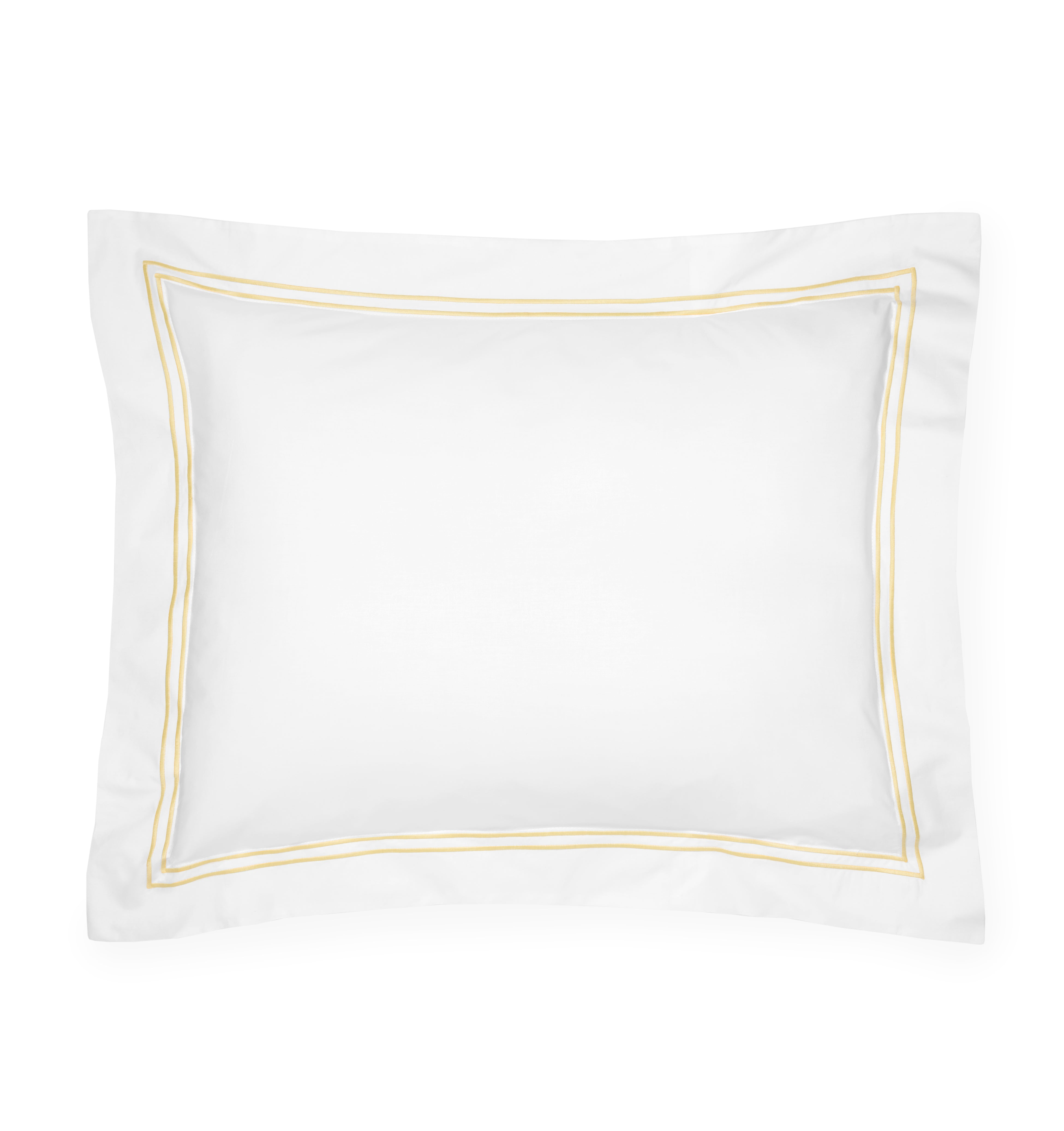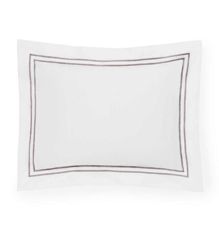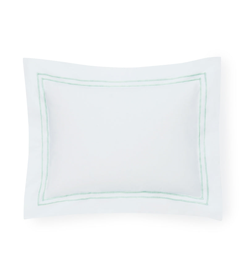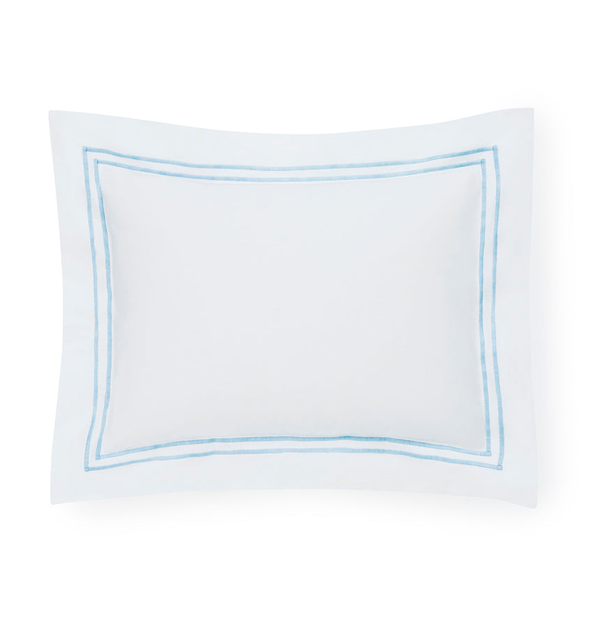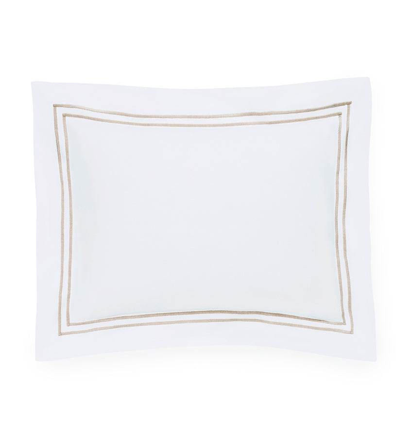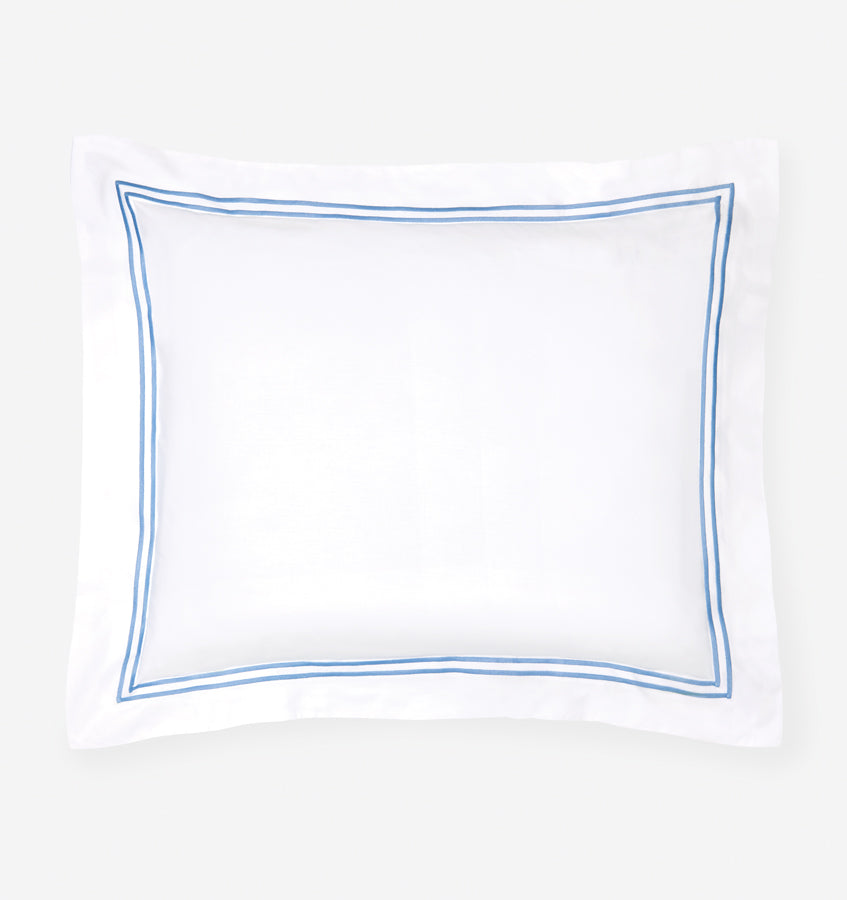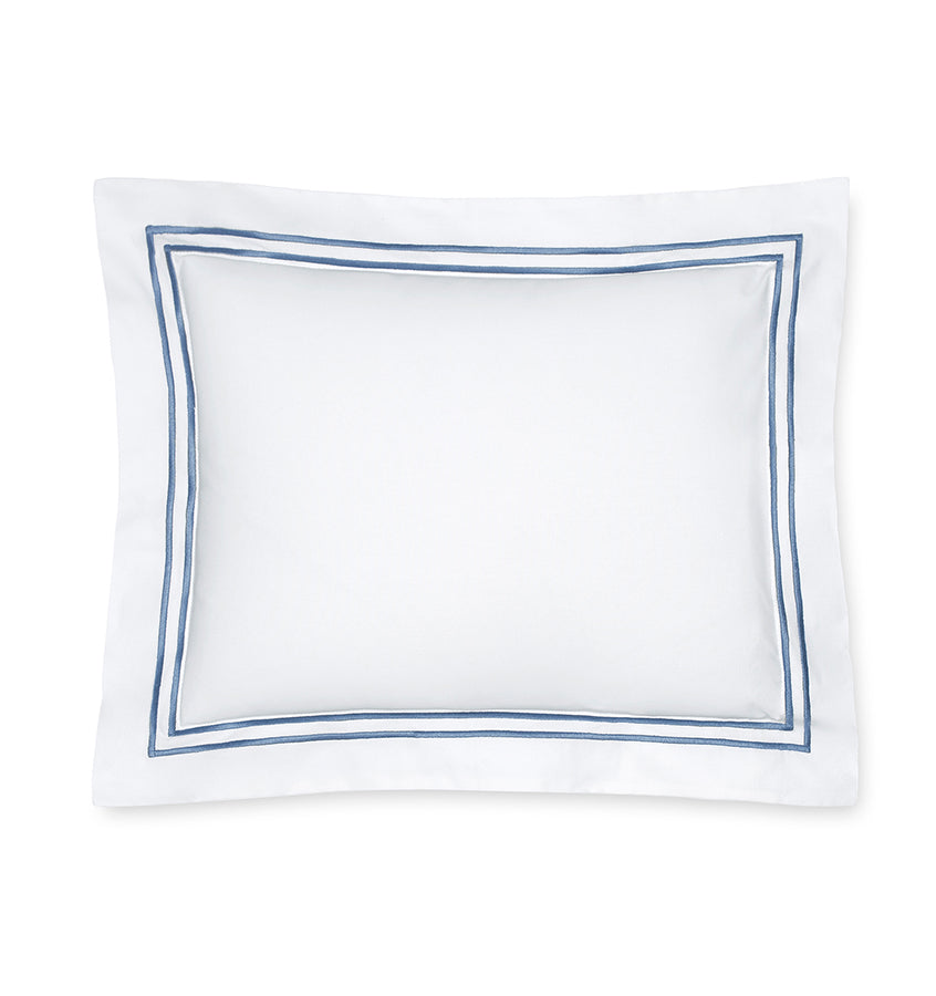 - Shams have double-row satin stitch embroidery on 4 sides of 3" flange. Boudoirs along 2" flange.