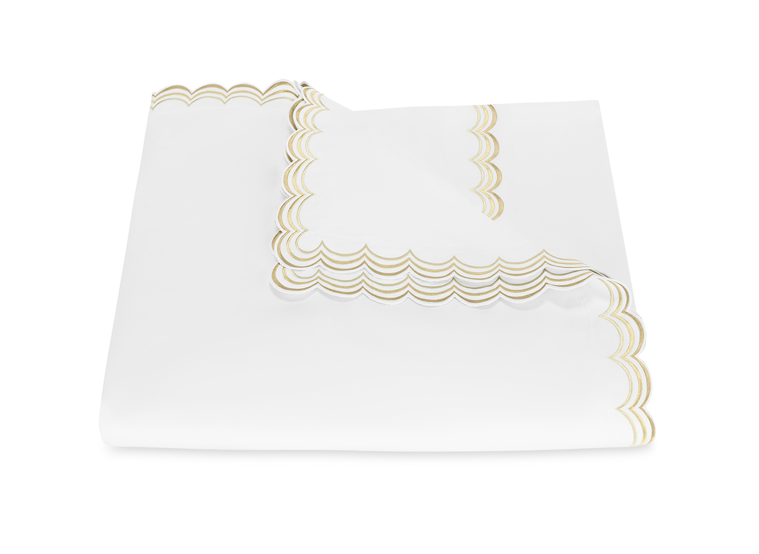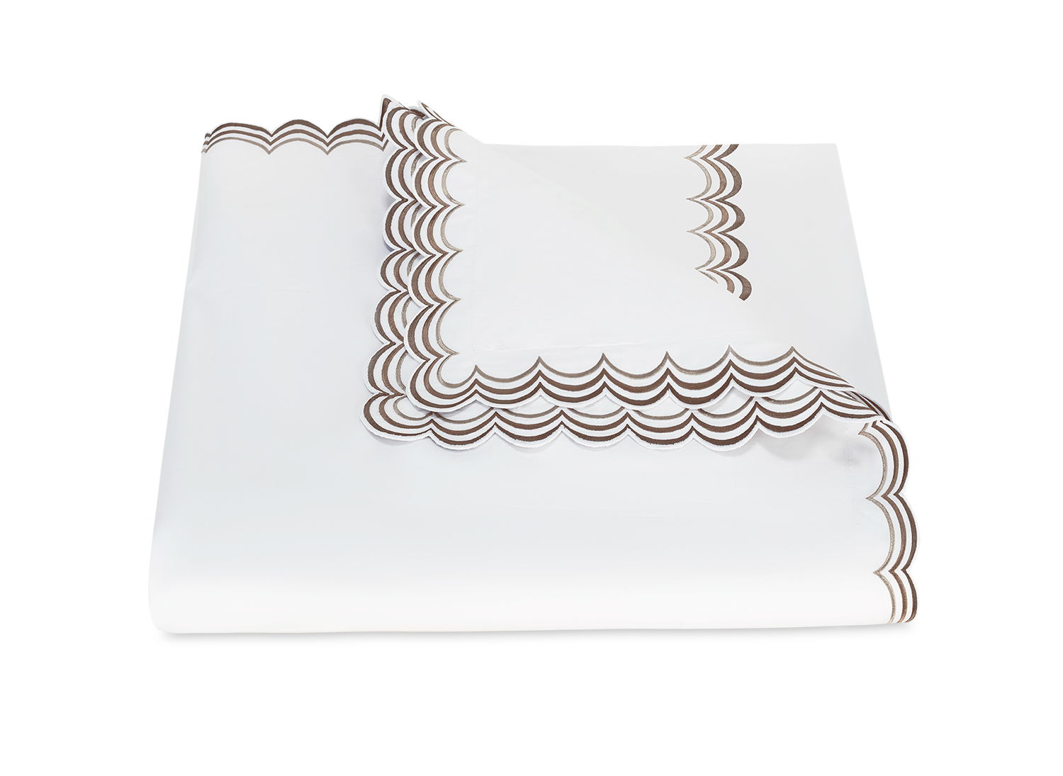 Stella is an embroidered collection of tonal scalloped edges on crisp Milano percale