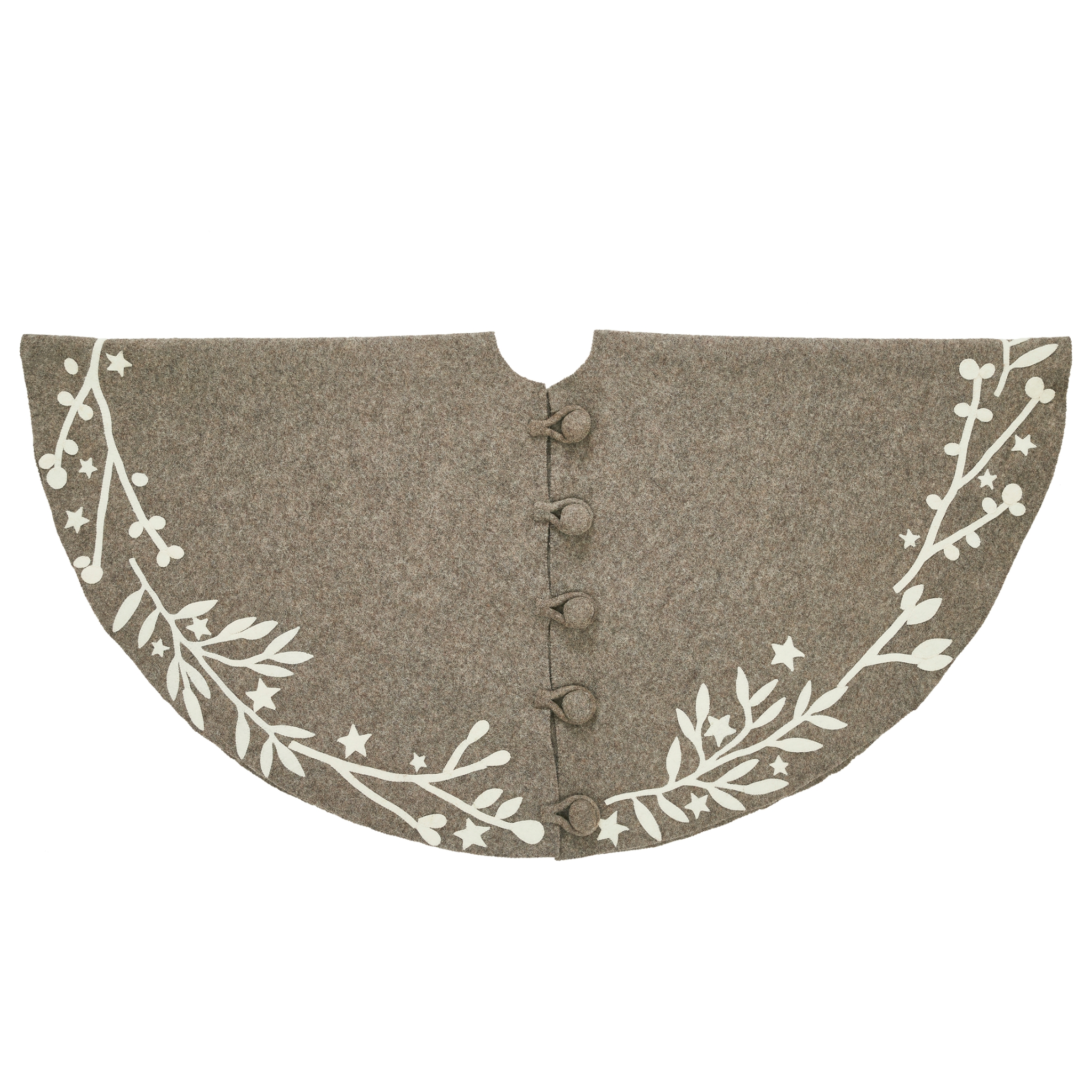 - Hand-felted and hand-appliquéd 100% sustainable wool tree skirt