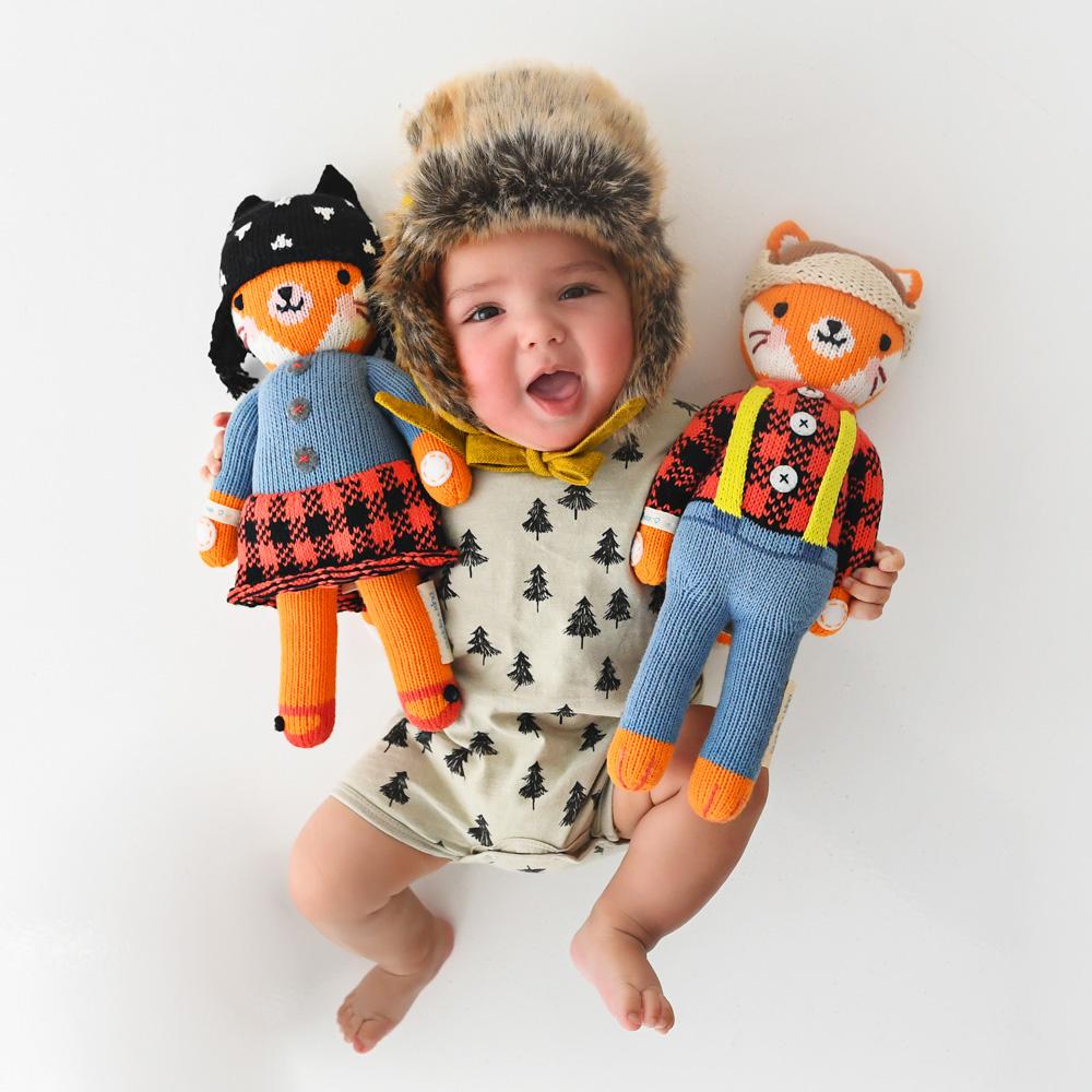 Every cuddle+kind doll is handmade, stitch by stitch with passion and pride in Peru. They are lovingly hand-knit, hand-loomed, embroidered and crocheted by artisans using knitting expertise that has been handed down for generations. We're delighted everyday by the skill and artistry of the knitters. Every beautifully crafted cuddle+kind doll is knit with such a high level of quality and care, they’re suitable to be heirlooms handed down from one lucky baby to the next.
